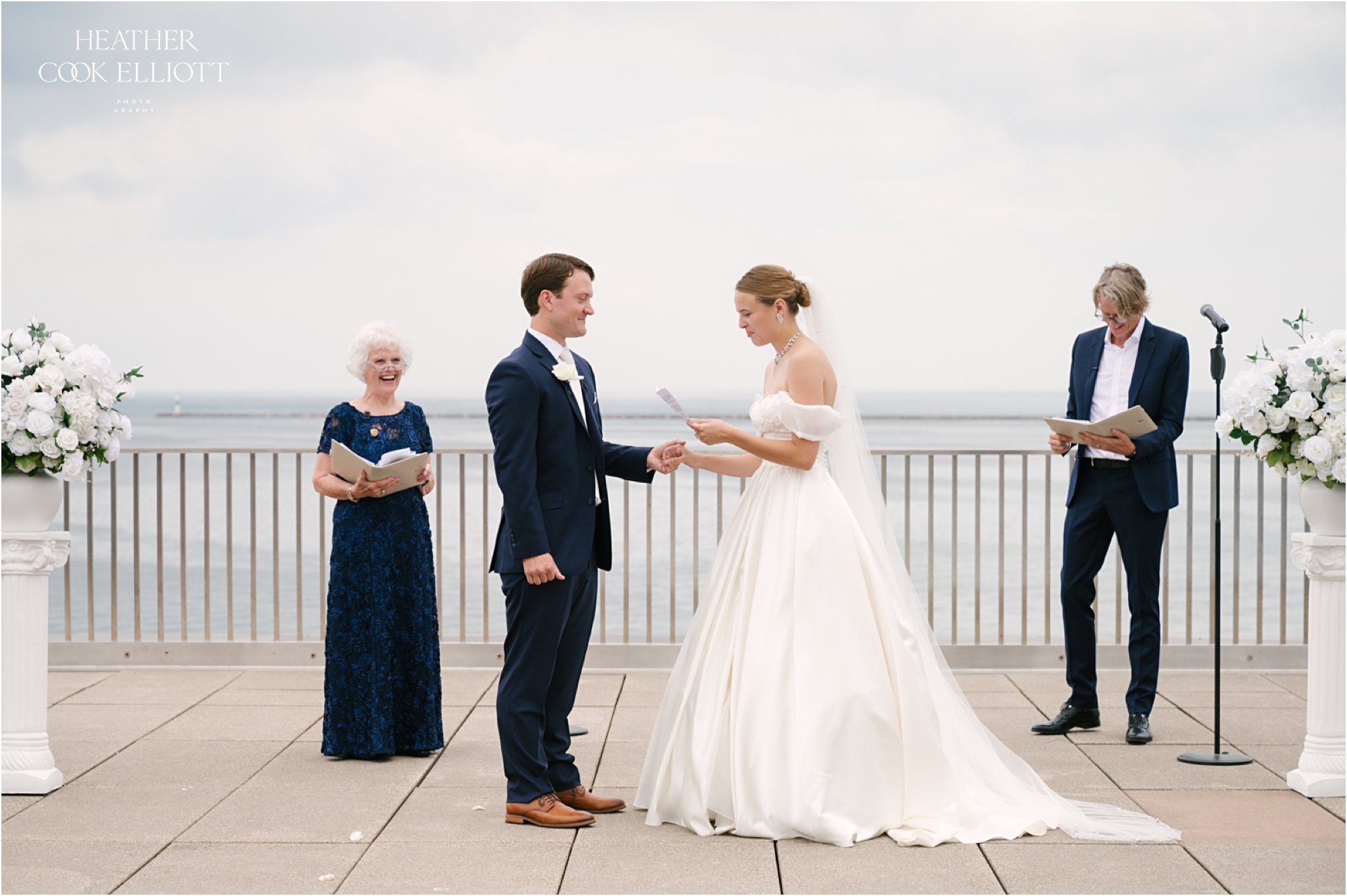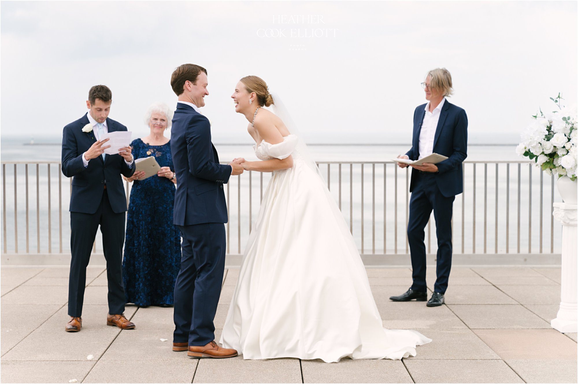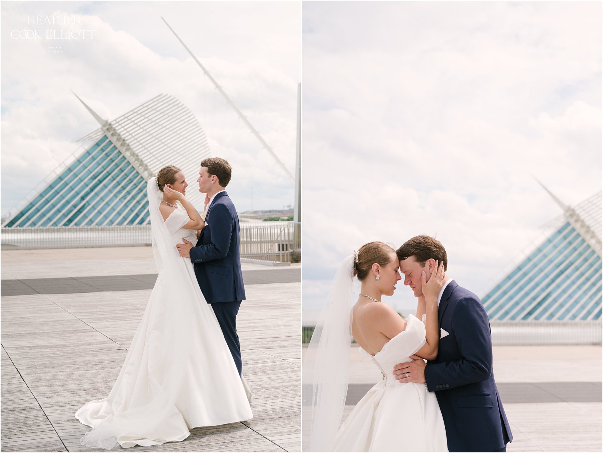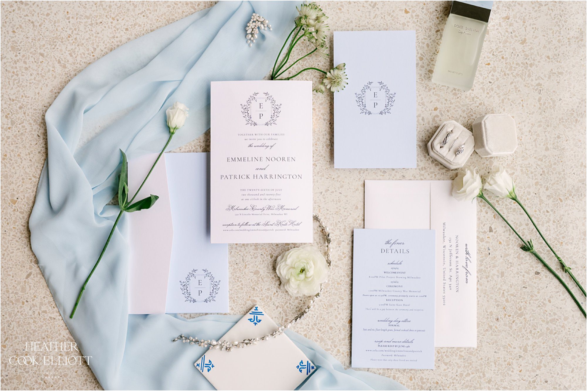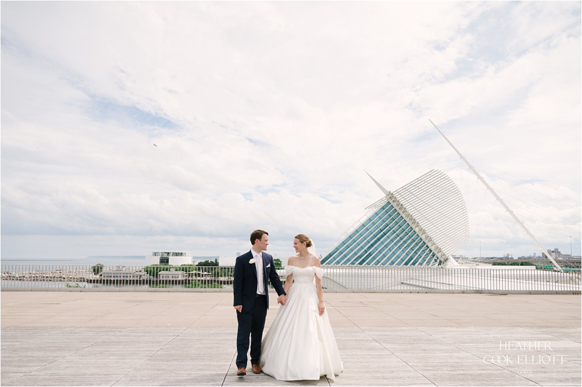 Emmeline & Patrick’s summer wedding day was set against the backdrop of Lake Michigan and the city of Milwaukee. They were married overlooking the water from the large terrace at The War Memorial and they celebrated their marriage at the artist haven that is the Saint Kate Arts Hotel. We loved their personal details and all the palpable space they held for missing loved ones, most importantly for Patrick’s beloved mom. With her blessing and the extended blessing of all those in attendance they said I Do to easy times and hard ones, to joyful days and Dutch dancing, to growing together and of course, to Forever. Theirs was a sweet day made even sweeter by the toasts of their friends, the love of their parents, and the fact that they got to marry their favorite person on the planet.