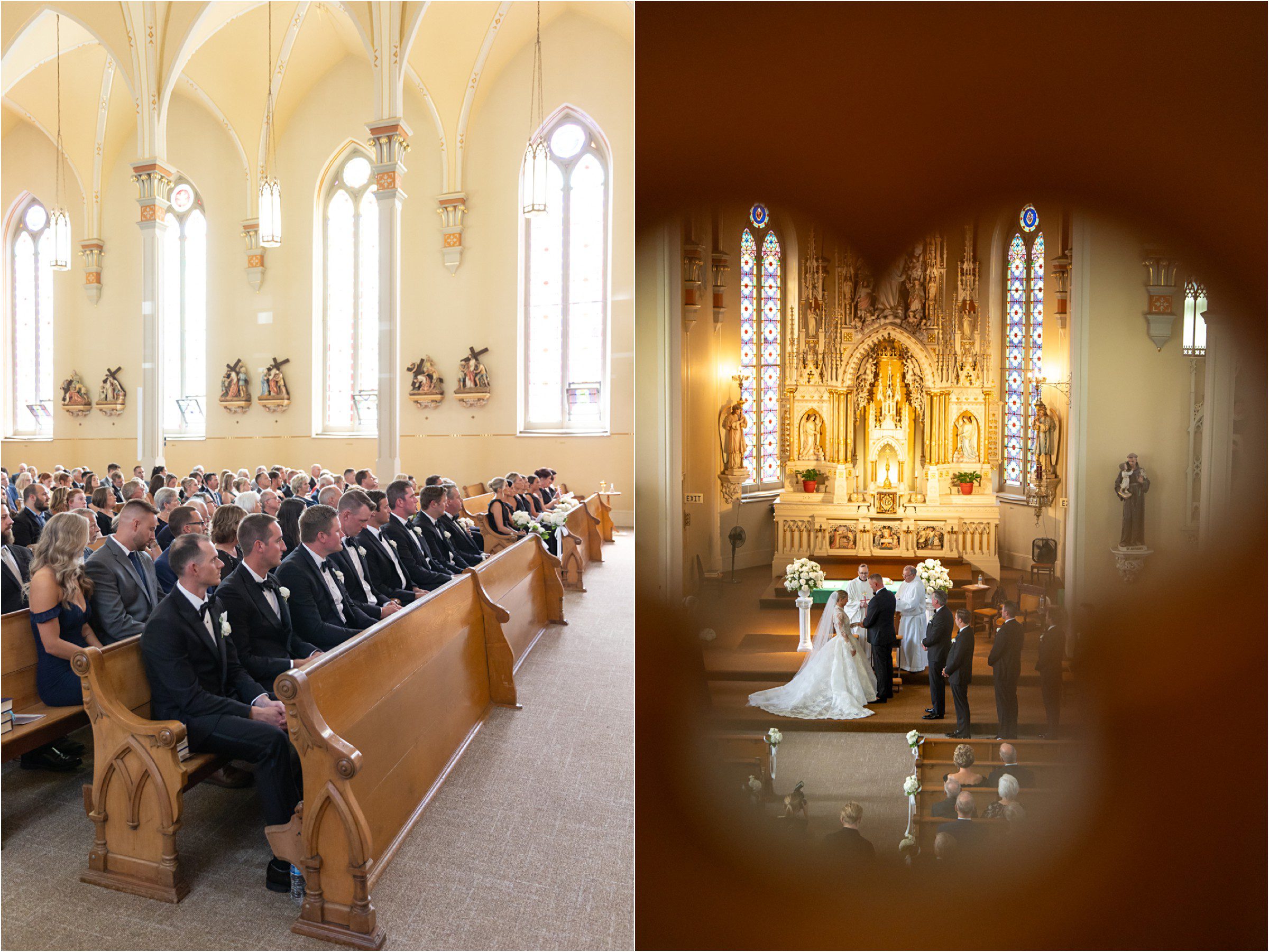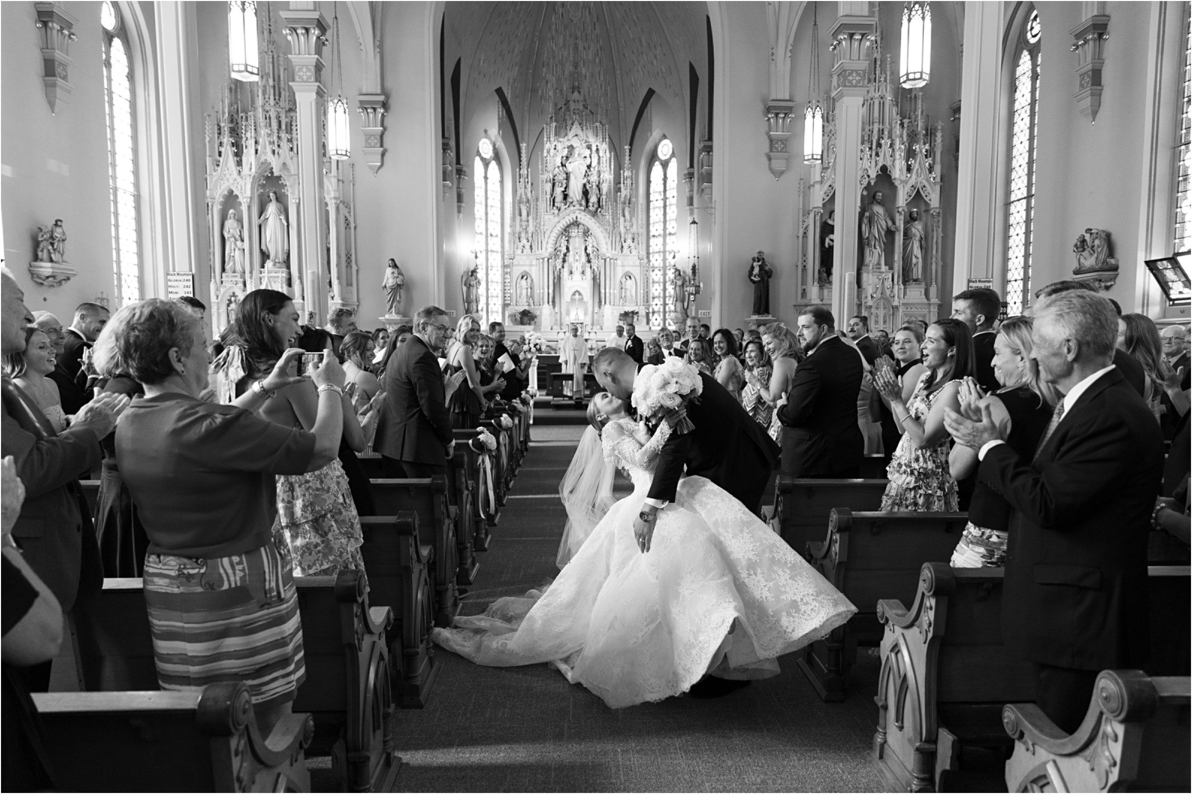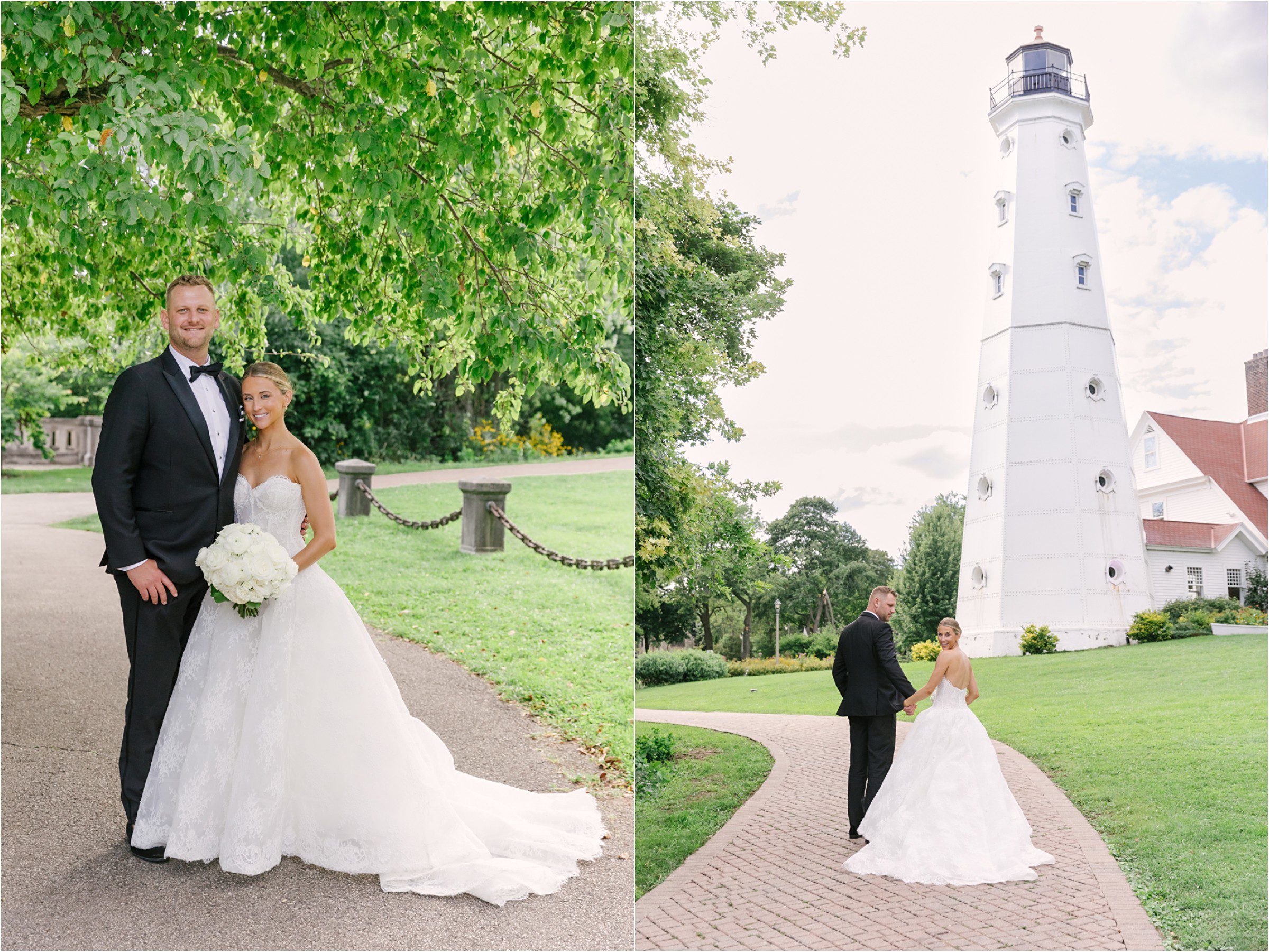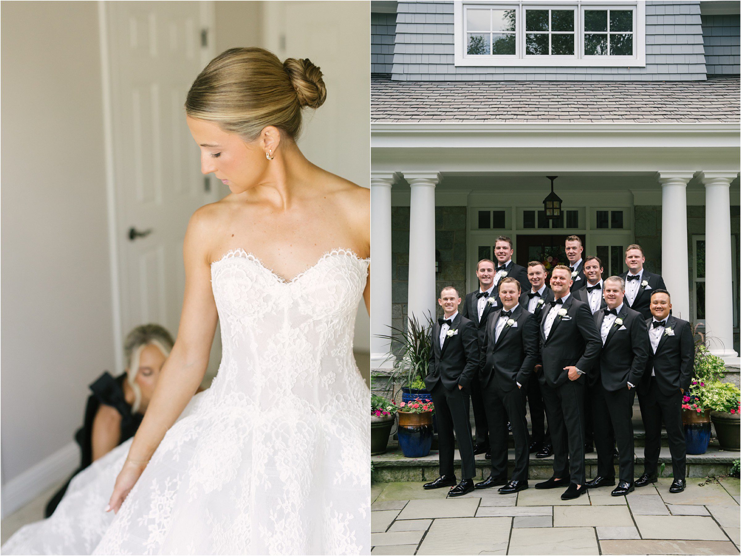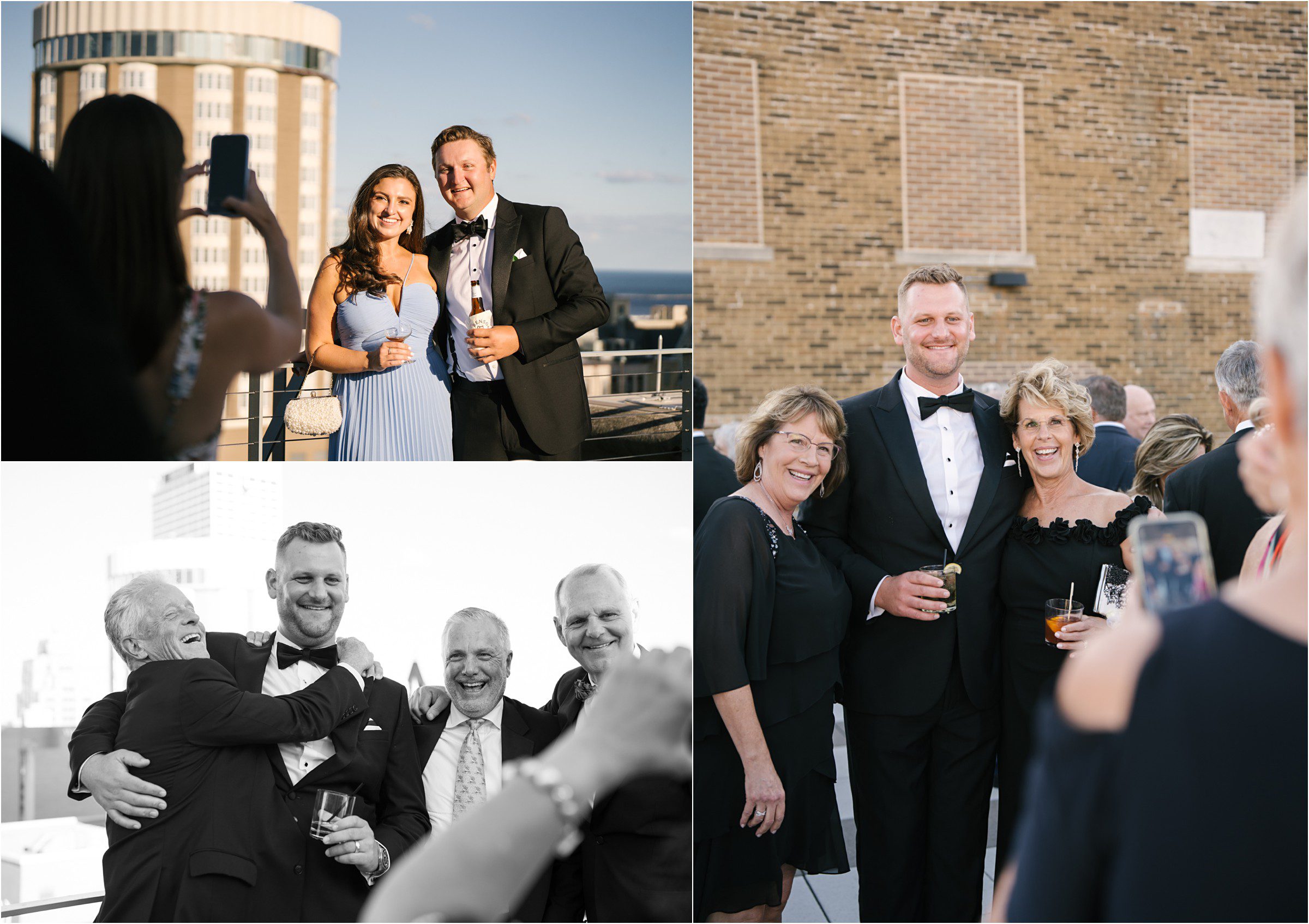 Blair & Danny’s stylish wedding day was split between Port Washington & Milwaukee and was 100% elegance. A black & white styled wedding is always a favorite for us but there was something extra special about the soft, romantic details Blair & Danny brought to the day: lace sleeves, classic suspenders, ranunculus petals, and a PUPPY! Simba joined them just after their wedding mass and spread his furry puppy cheer to all before a classic wedding trolly sped the party to Lake Park. While guests got a head start enjoying the lake and cityscape views from the rooftop of the Milwaukee Athletic Club, Blair & Danny spent a few moments in the city’s most beautiful landscape with their favorite people. From there it was all toasts & tears, hugs and happiness as they dined and danced, again surrounded by their favorite people. It was a day (and night) for the ages, just like the love Danny & Blair share.