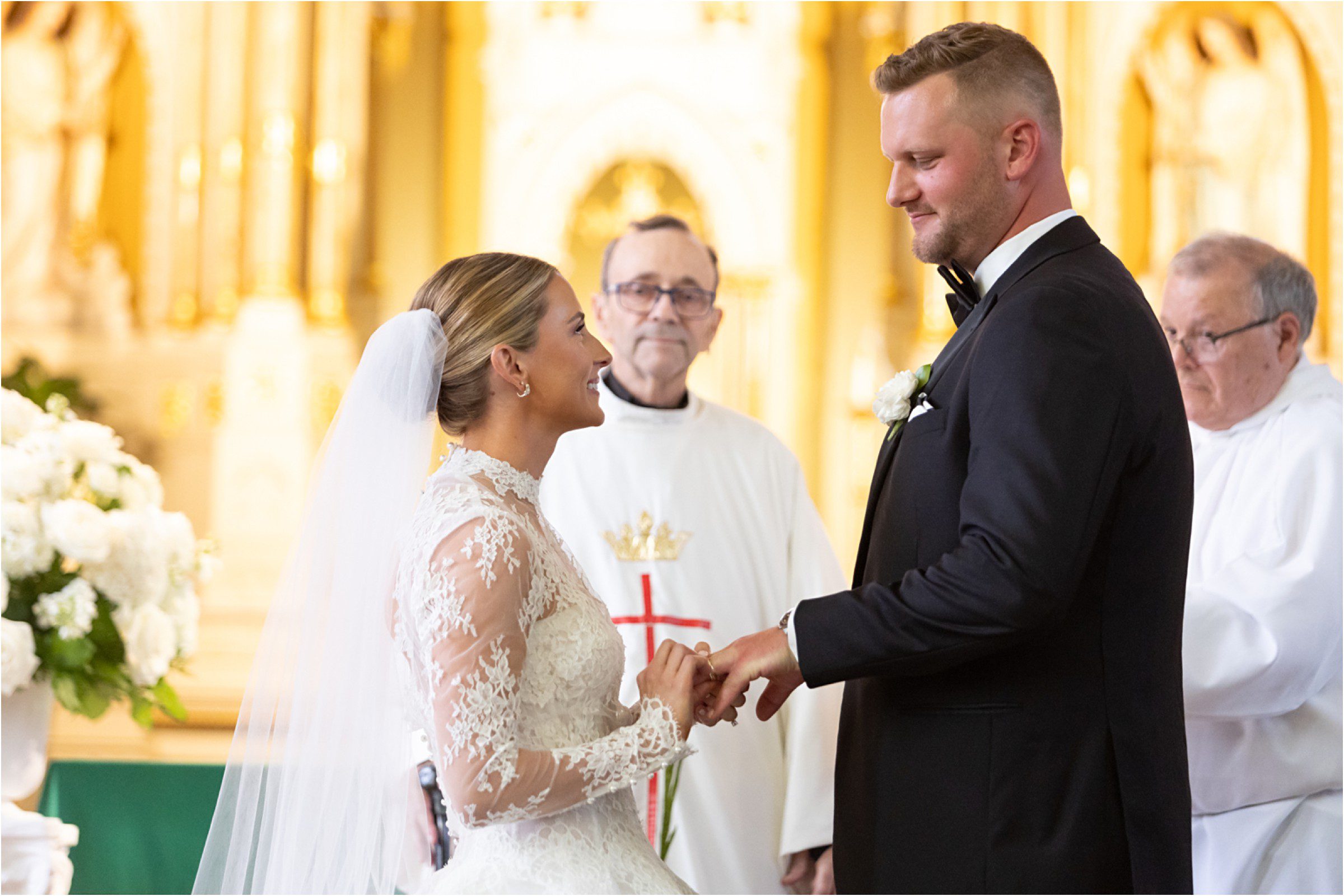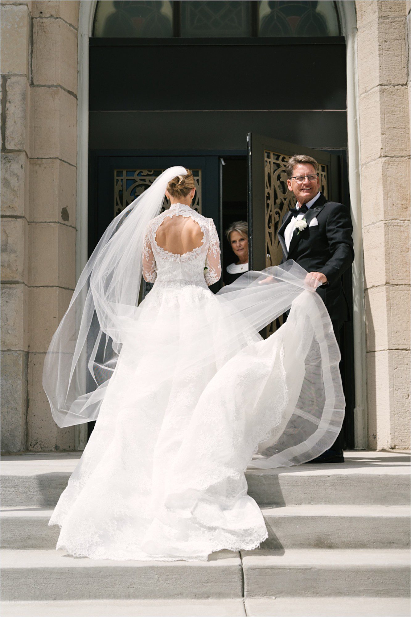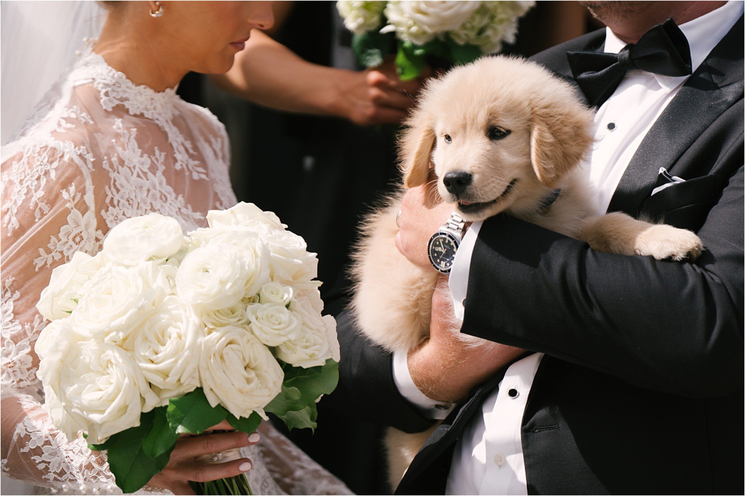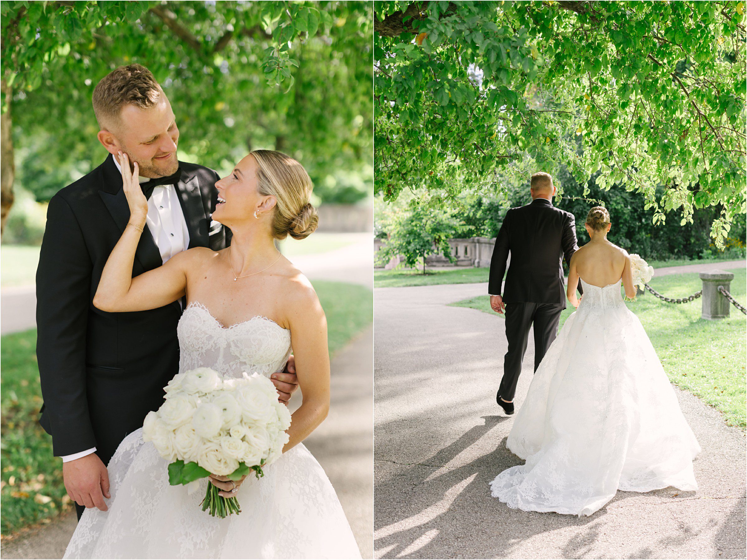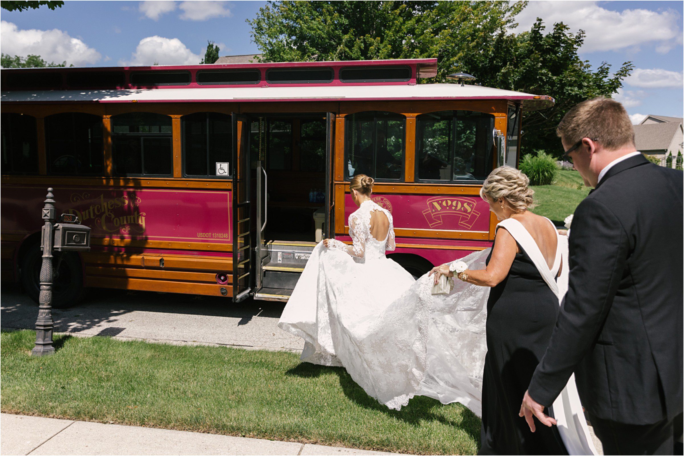 Blair & Danny’s stylish wedding day was split between Port Washington & Milwaukee and was 100% elegance. A black & white styled wedding is always a favorite for us but there was something extra special about the soft, romantic details Blair & Danny brought to the day: lace sleeves, classic suspenders, ranunculus petals, and a PUPPY! Simba joined them just after their wedding mass and spread his furry puppy cheer to all before a classic wedding trolly sped the party to Lake Park. While guests got a head start enjoying the lake and cityscape views from the rooftop of the Milwaukee Athletic Club, Blair & Danny spent a few moments in the city’s most beautiful landscape with their favorite people. From there it was all toasts & tears, hugs and happiness as they dined and danced, again surrounded by their favorite people. It was a day (and night) for the ages, just like the love Danny & Blair share.