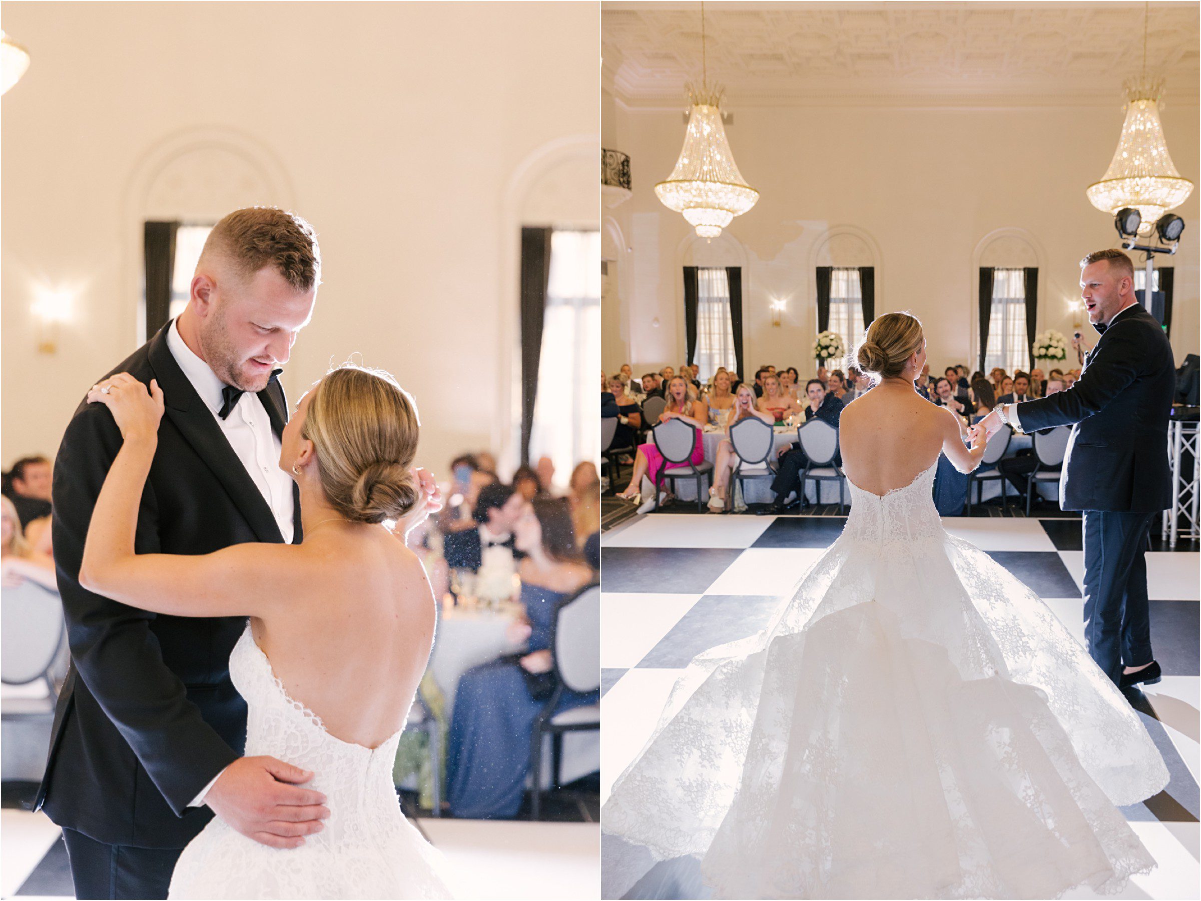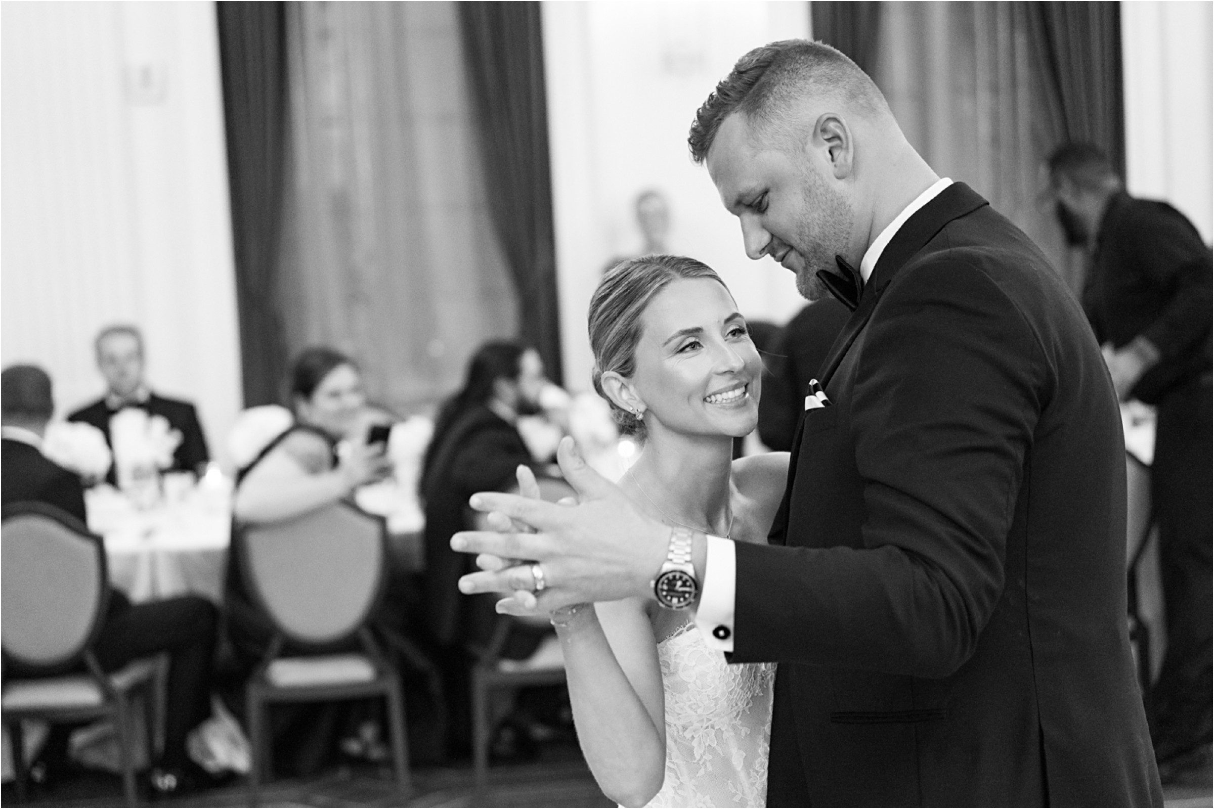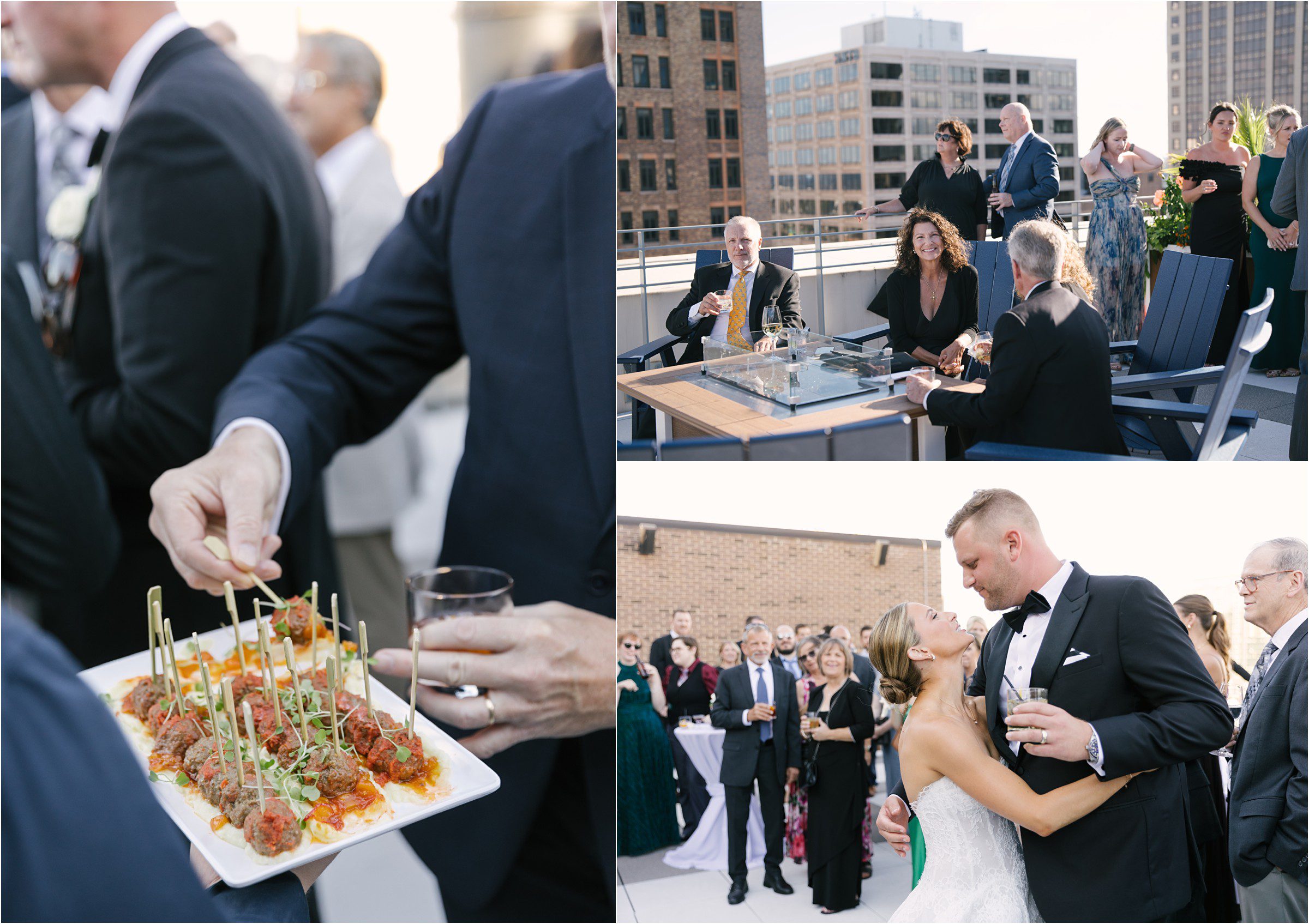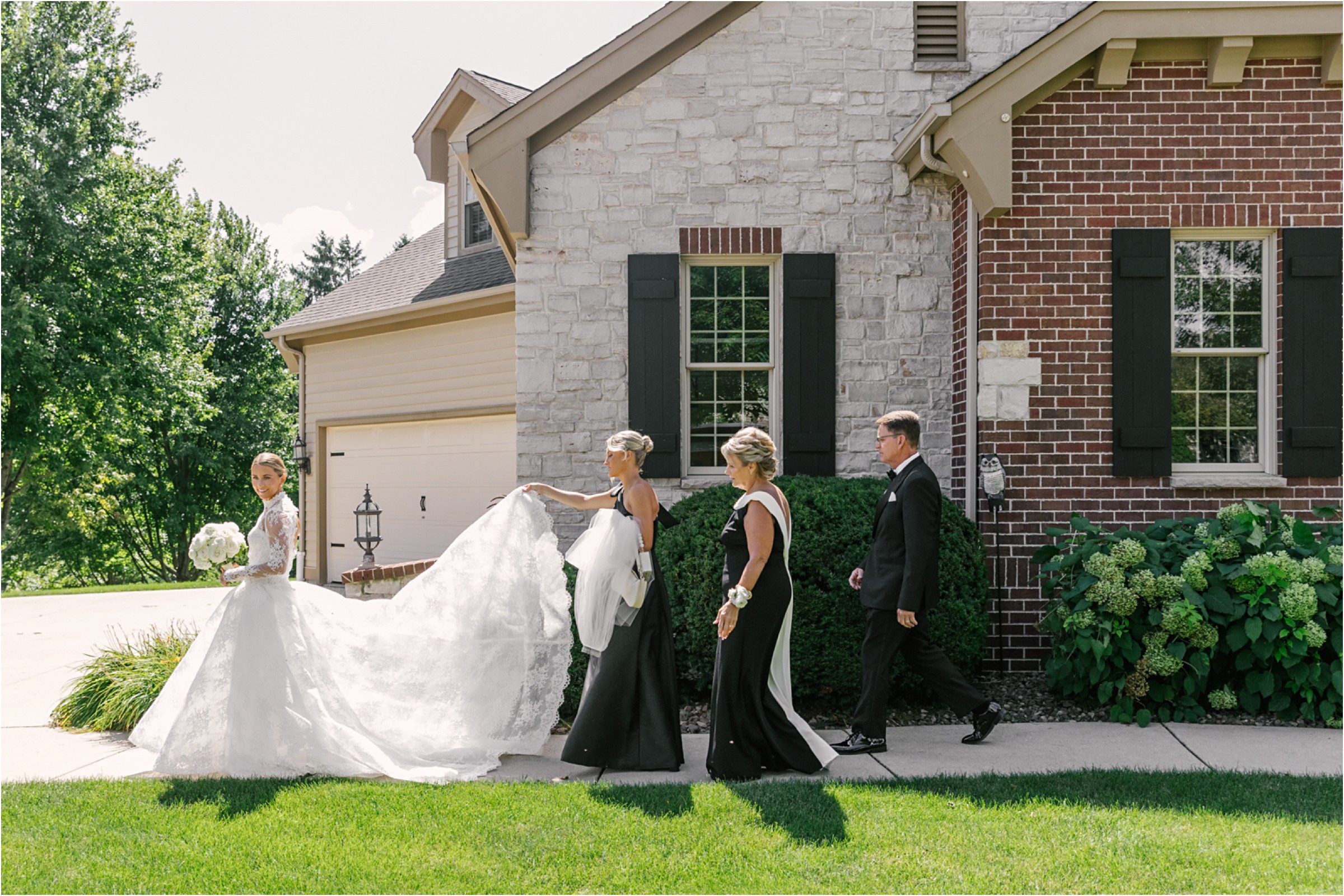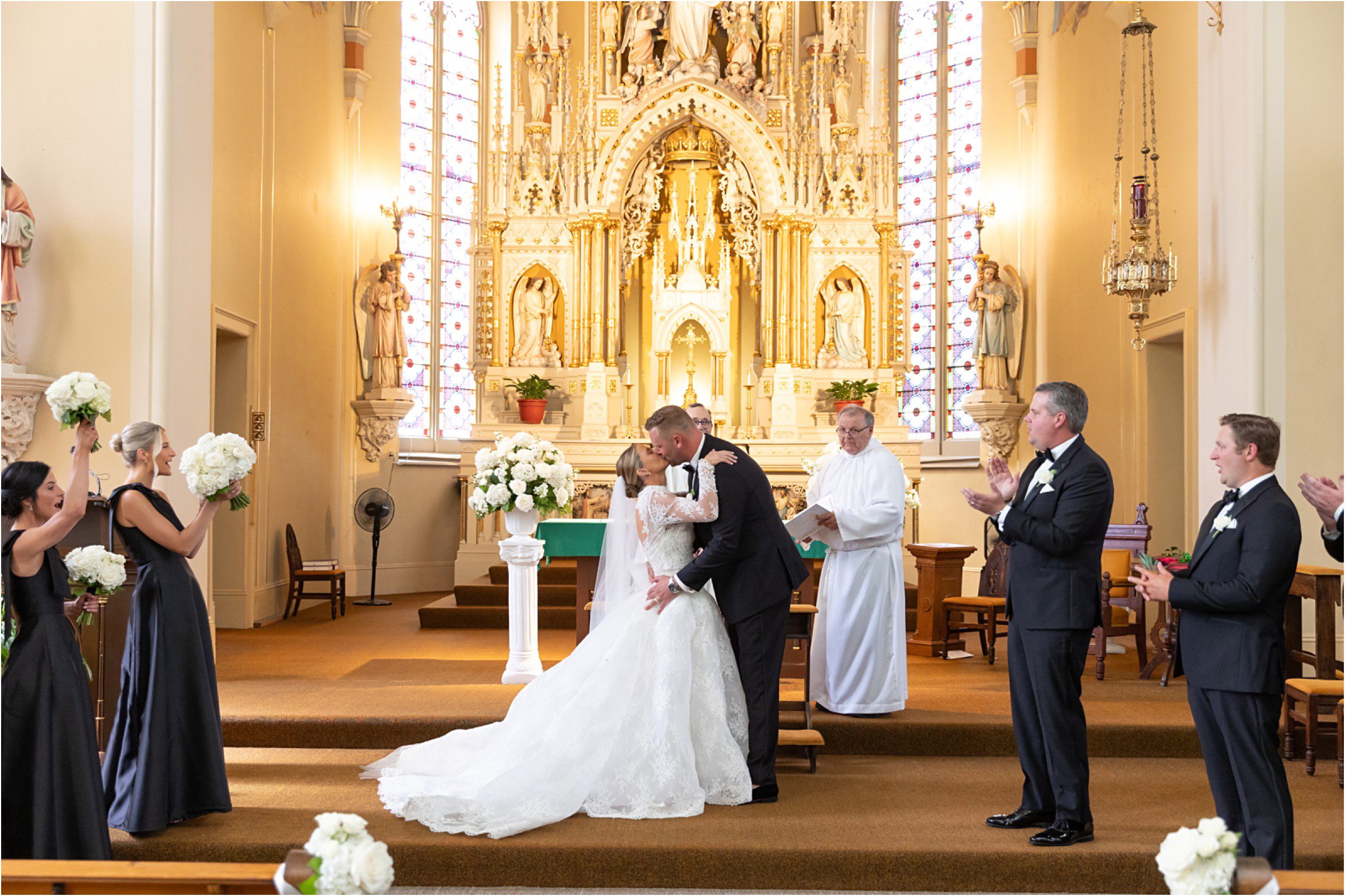 Blair & Danny’s stylish wedding day was split between Port Washington & Milwaukee and was 100% elegance. A black & white styled wedding is always a favorite for us but there was something extra special about the soft, romantic details Blair & Danny brought to the day: lace sleeves, classic suspenders, ranunculus petals, and a PUPPY! Simba joined them just after their wedding mass and spread his furry puppy cheer to all before a classic wedding trolly sped the party to Lake Park. While guests got a head start enjoying the lake and cityscape views from the rooftop of the Milwaukee Athletic Club, Blair & Danny spent a few moments in the city’s most beautiful landscape with their favorite people. From there it was all toasts & tears, hugs and happiness as they dined and danced, again surrounded by their favorite people. It was a day (and night) for the ages, just like the love Danny & Blair share.