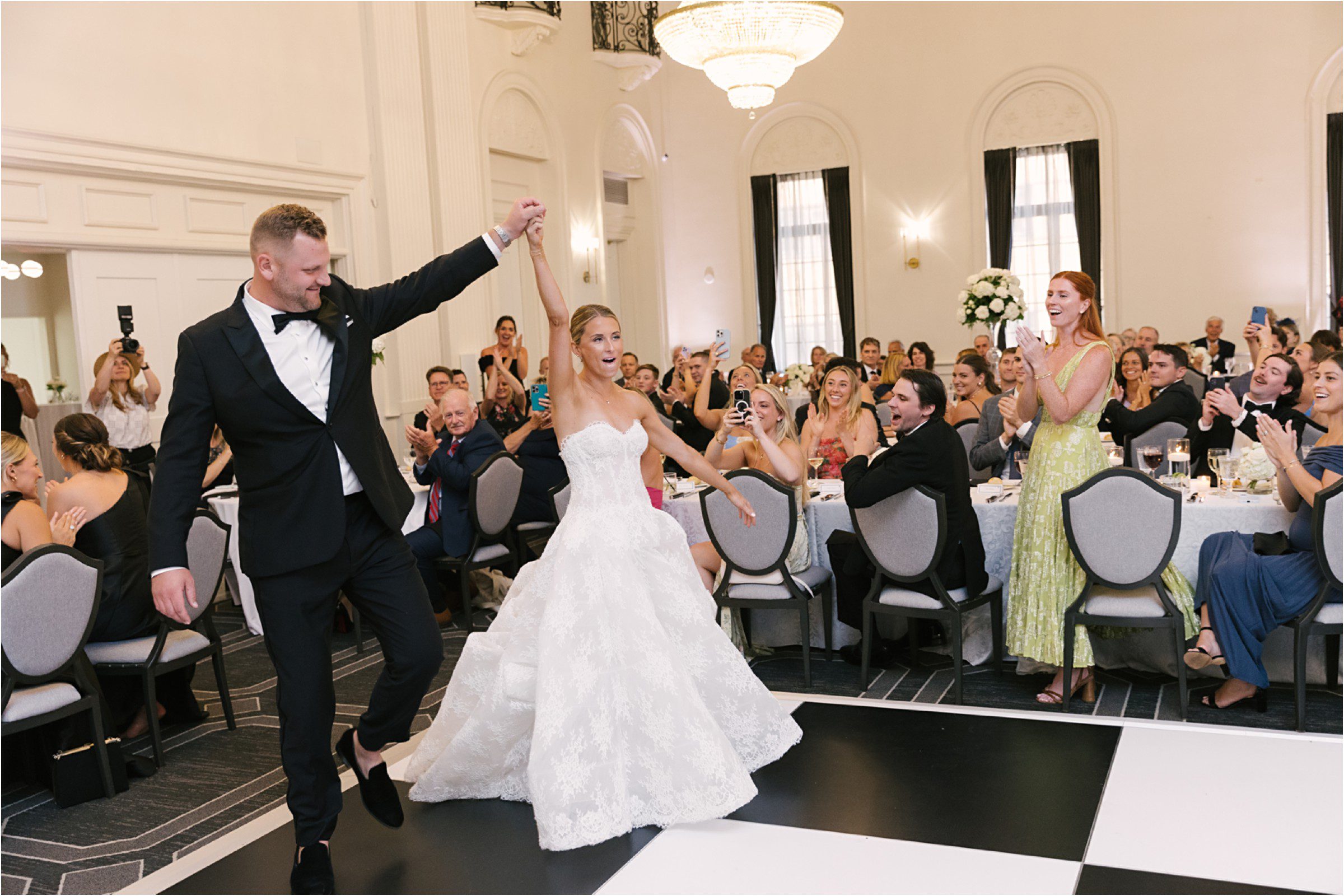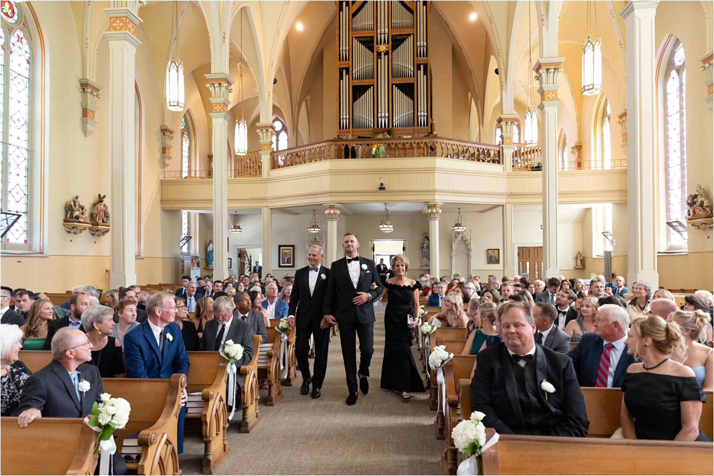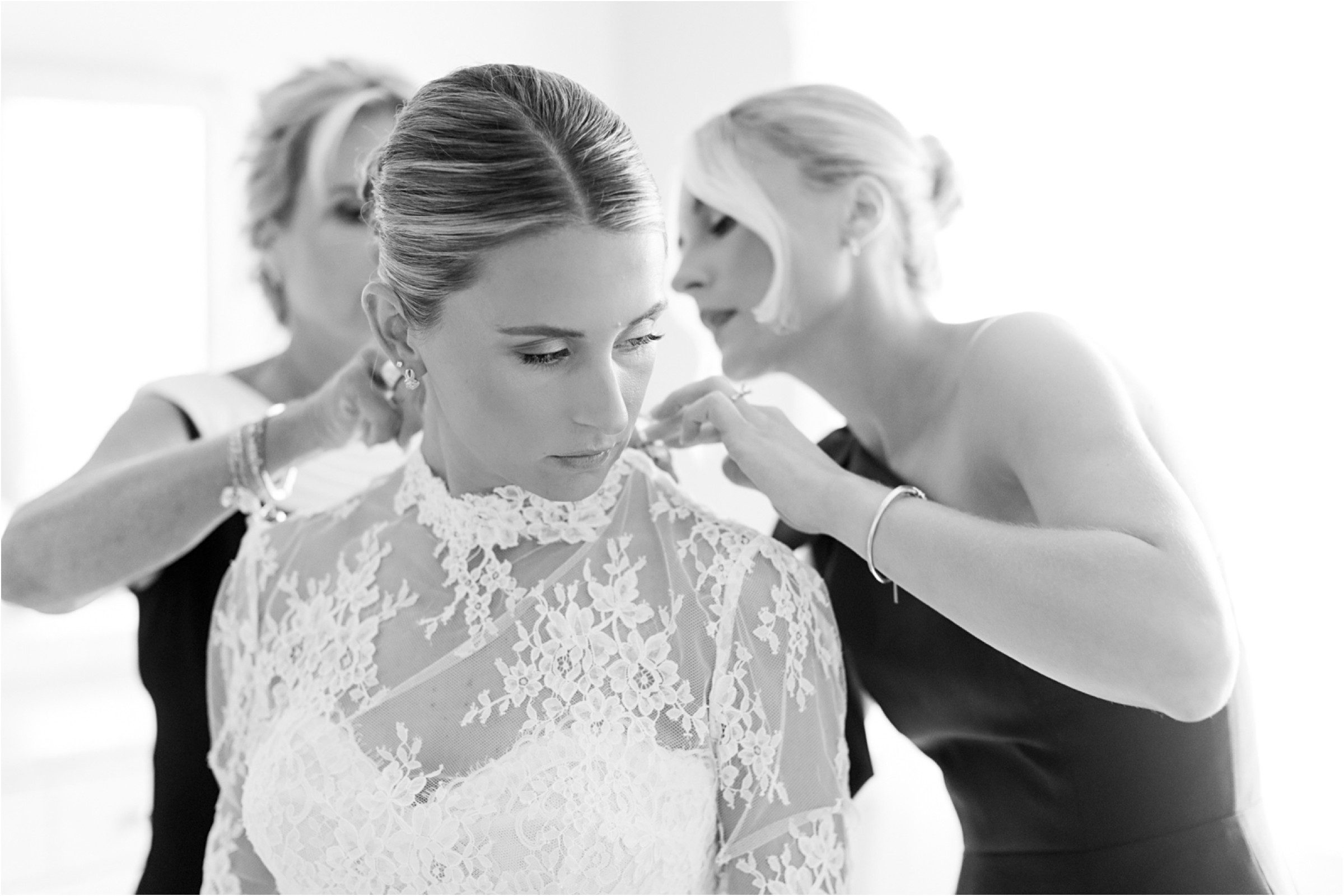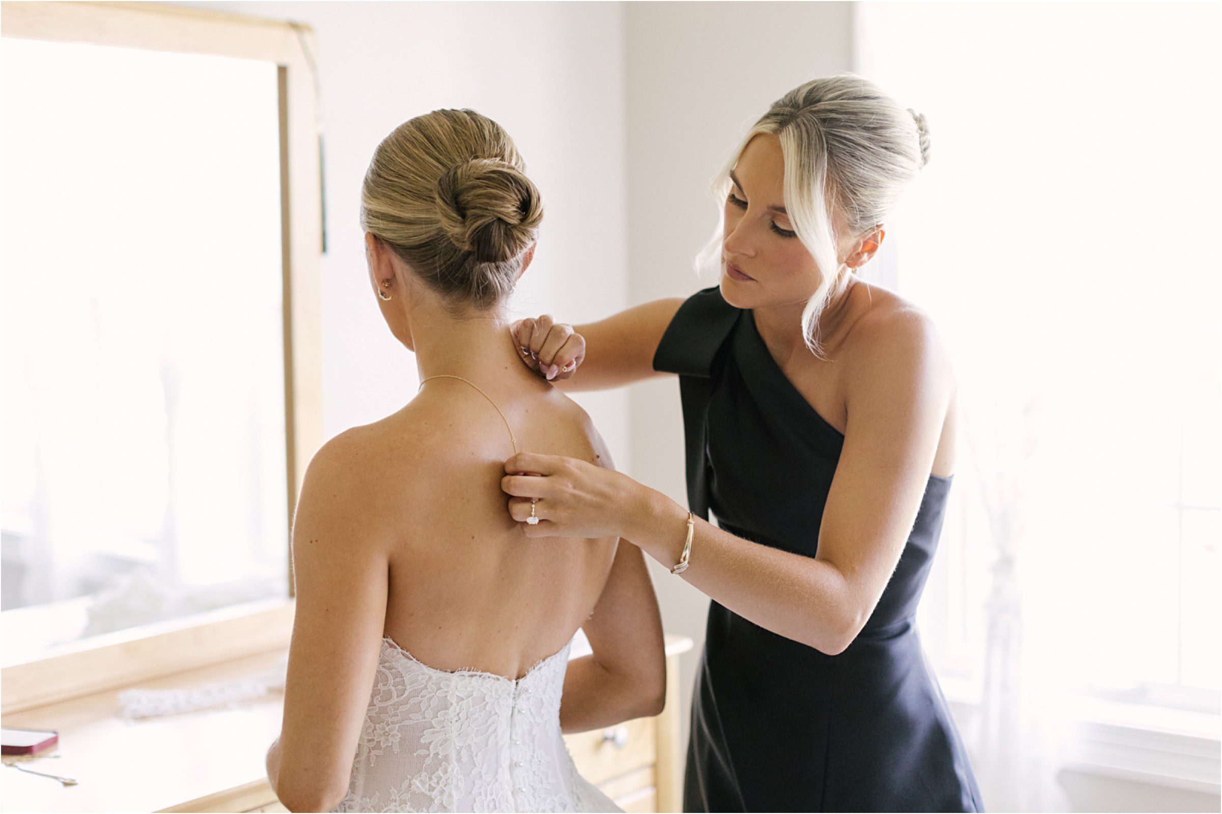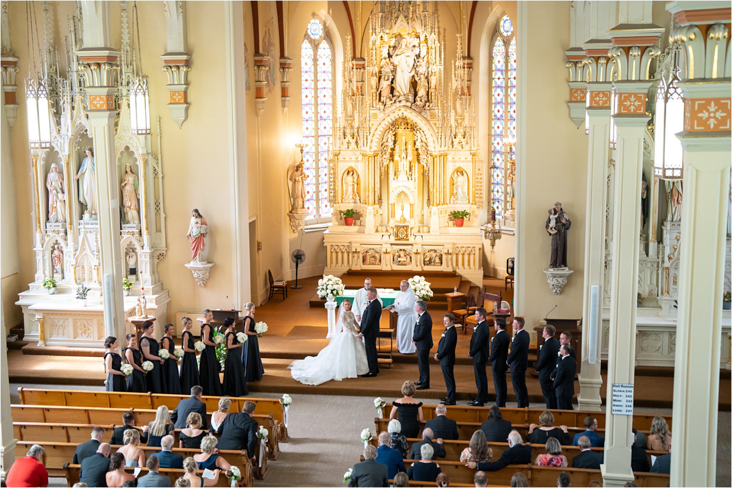 Blair & Danny’s stylish wedding day was split between Port Washington & Milwaukee and was 100% elegance. A black & white styled wedding is always a favorite for us but there was something extra special about the soft, romantic details Blair & Danny brought to the day: lace sleeves, classic suspenders, ranunculus petals, and a PUPPY! Simba joined them just after their wedding mass and spread his furry puppy cheer to all before a classic wedding trolly sped the party to Lake Park. While guests got a head start enjoying the lake and cityscape views from the rooftop of the Milwaukee Athletic Club, Blair & Danny spent a few moments in the city’s most beautiful landscape with their favorite people. From there it was all toasts & tears, hugs and happiness as they dined and danced, again surrounded by their favorite people. It was a day (and night) for the ages, just like the love Danny & Blair share.
