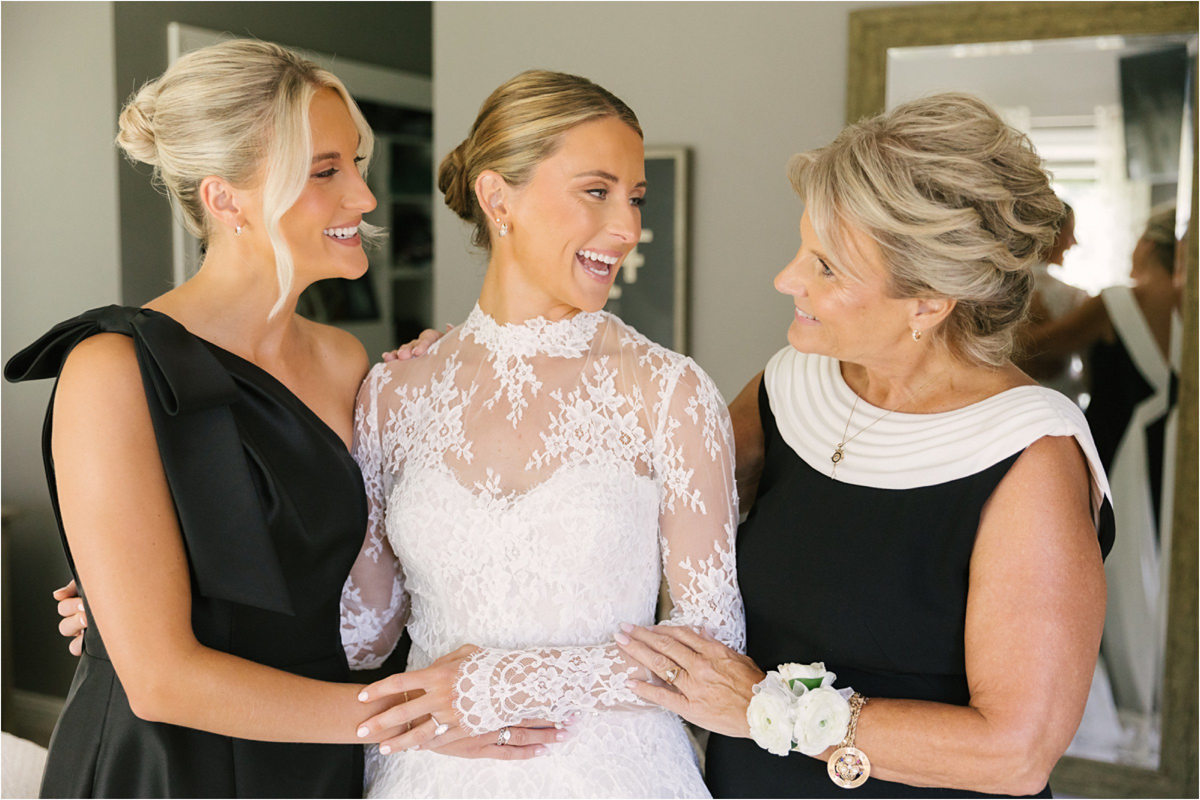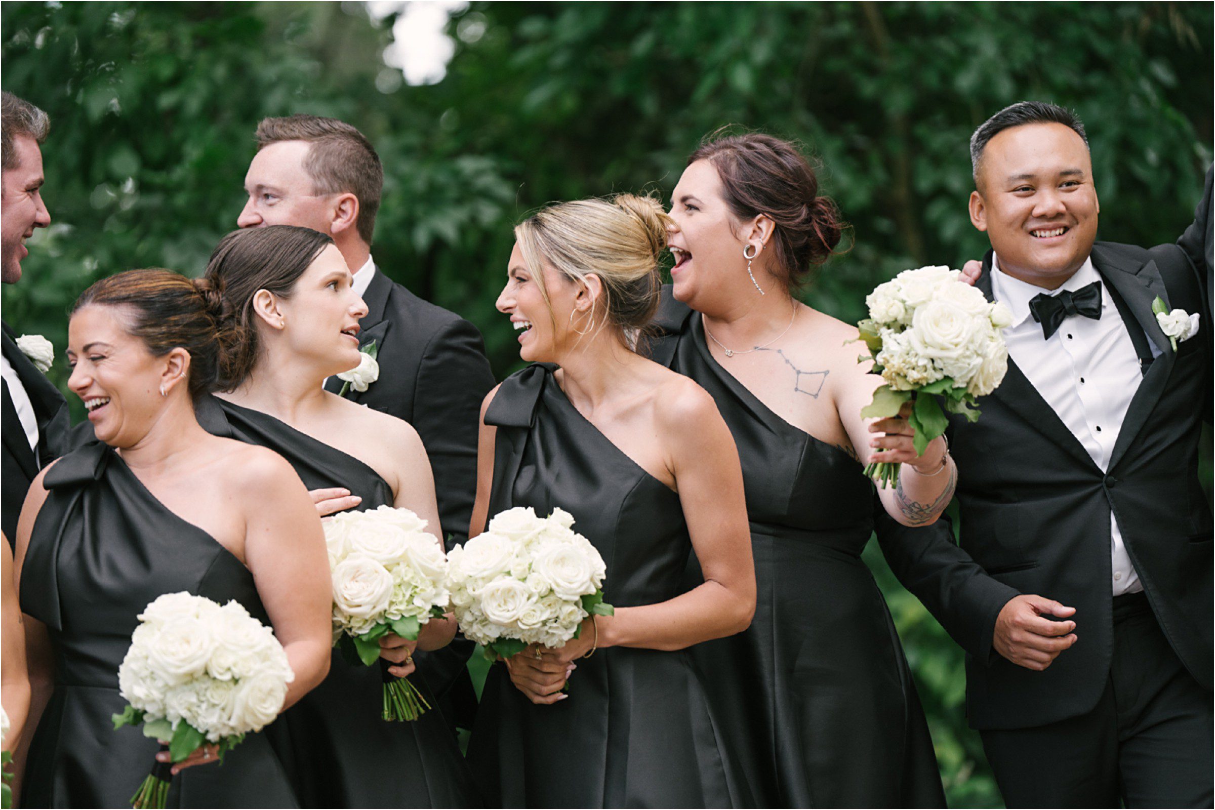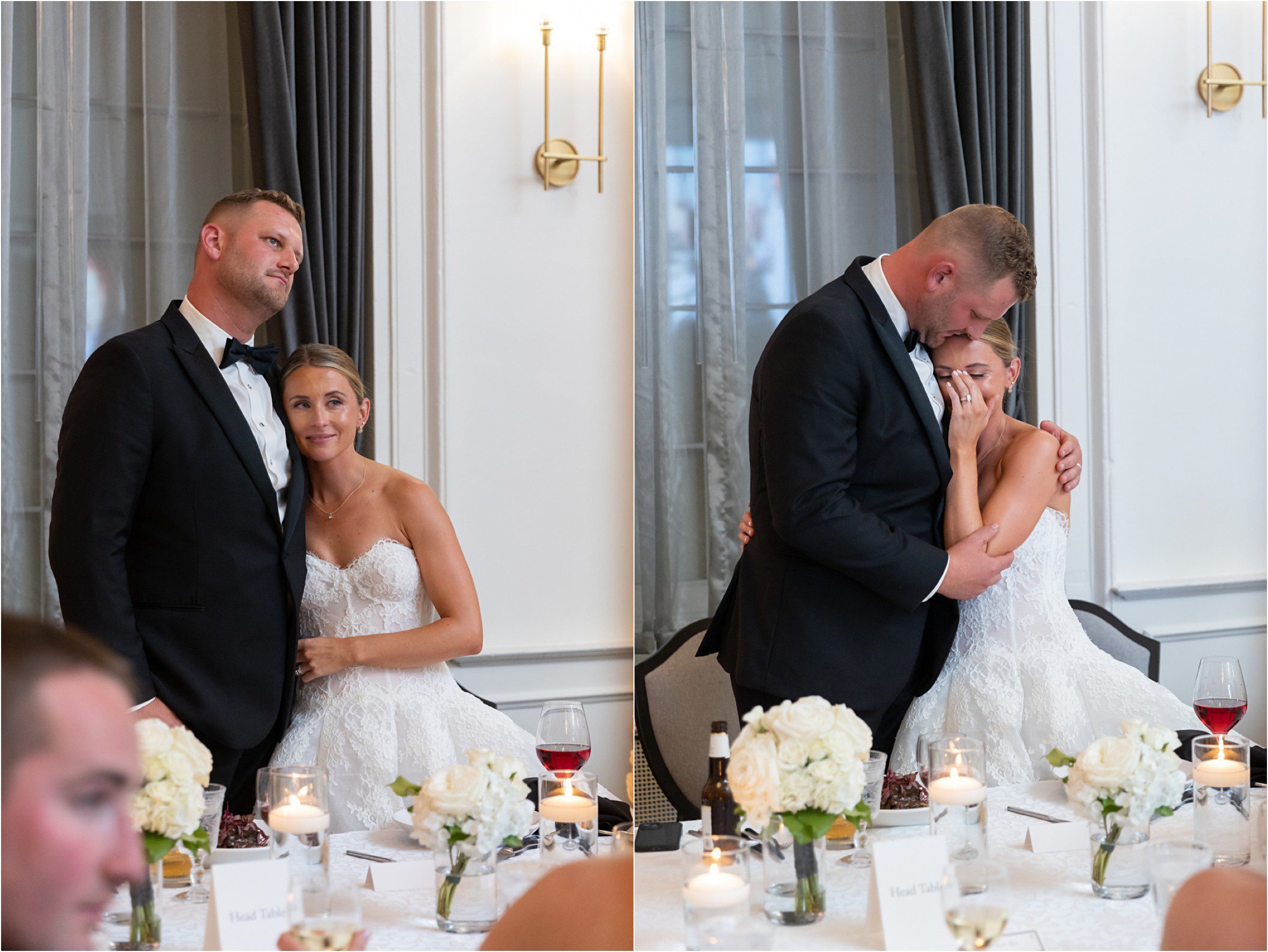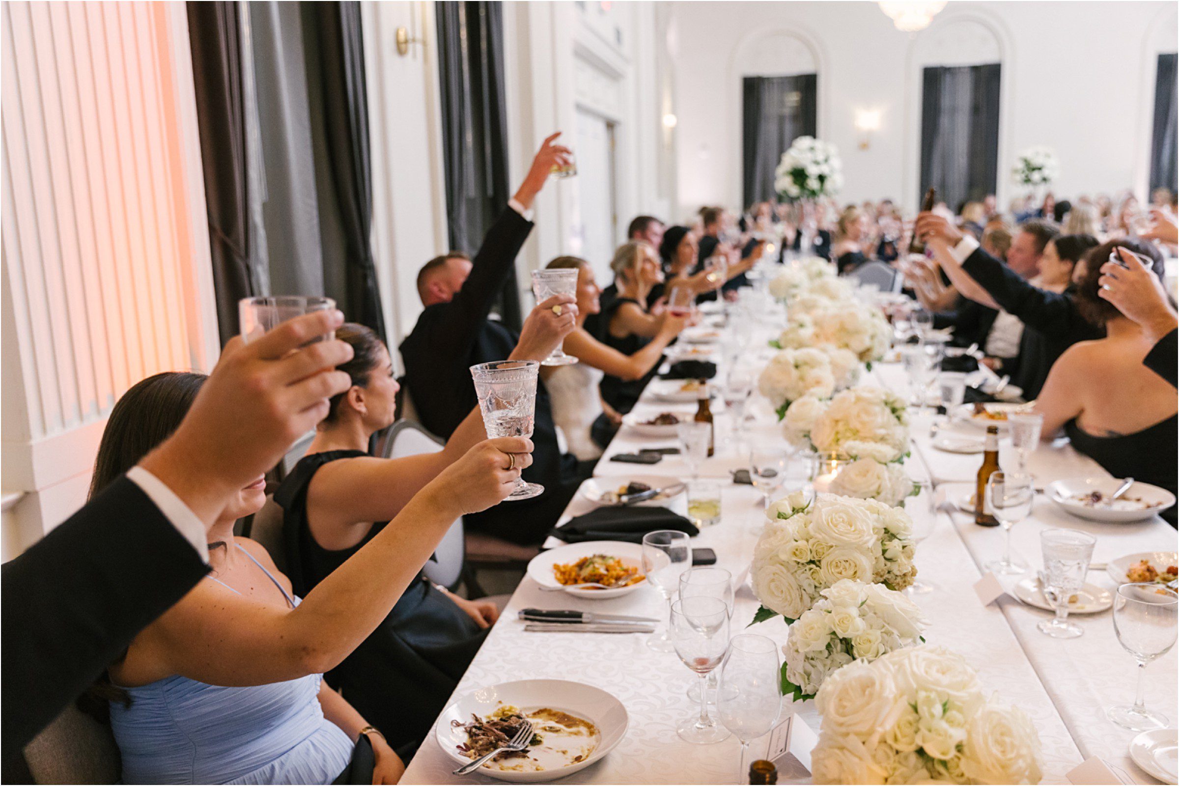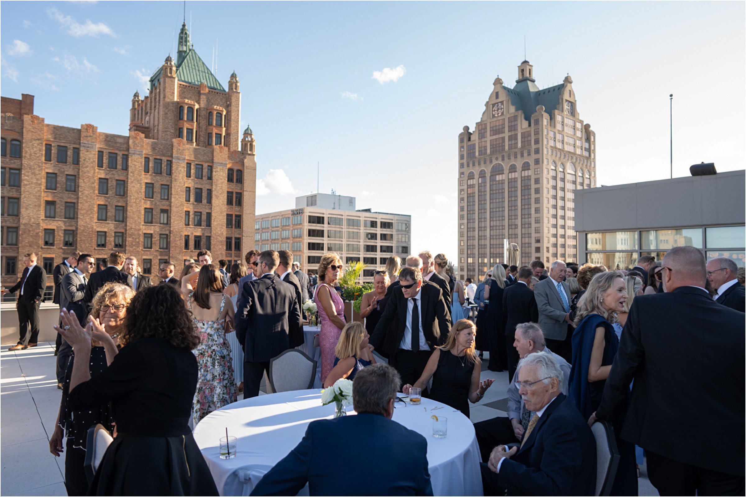Blair & Danny’s stylish wedding day was split between Port Washington & Milwaukee and was 100% elegance. A black & white styled wedding is always a favorite for us but there was something extra special about the soft, romantic details Blair & Danny brought to the day: lace sleeves, classic suspenders, ranunculus petals, and a PUPPY! Simba joined them just after their wedding mass and spread his furry puppy cheer to all before a classic wedding trolly sped the party to Lake Park. While guests got a head start enjoying the lake and cityscape views from the rooftop of the Milwaukee Athletic Club, Blair & Danny spent a few moments in the city’s most beautiful landscape with their favorite people. From there it was all toasts & tears, hugs and happiness as they dined and danced, again surrounded by their favorite people. It was a day (and night) for the ages, just like the love Danny & Blair share.