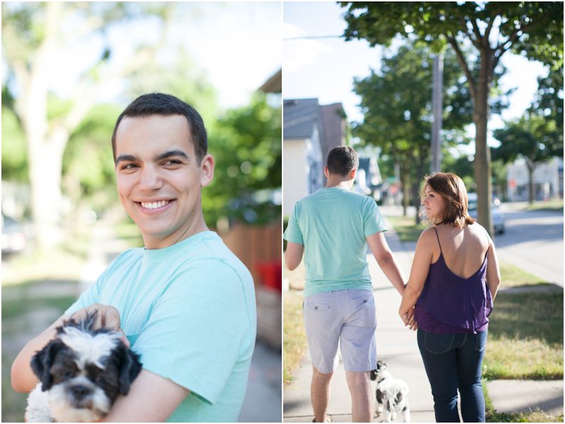 Kathleen & Ricardo are passionate about the things they do, where they live, what matters to them, and, of course about one another. Kathleen is a community organizer and she spends long days working to make communities and neighborhoods better and Ricardo is like minded, caring deeply about workaday neighbors and the places that make a neighborhood feel like home. They live and will tie the knot in Milwaukee’s eclectic Bay View and they wanted to do their engagement session at some of their favorite local haunts, ending the session at Puddler’s Hall where we all got a little education on the history of the labor movement in Milwaukee. Except maybe little, furry Felix – he mostly ate popcorn and accepted pets from anyone who offered. Kathleen & Ricardo have a special relationship with Bay View and I can’t wait to capture their wedding this coming weekend and see their neighborhood through their eyes again.