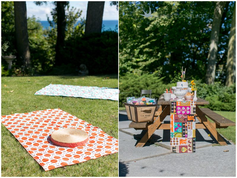 Picnic blankets: Made by me using fabrics from Fabric.com. Patterned fabrics are all by Michael Miller and backed with oilcloth sewn together simply using a zig zag stitch. I used these: Chevron, Norwegian Woods, On the Grill, Botanika (birds)