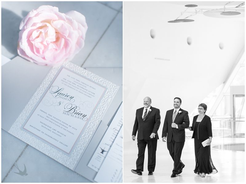 Looking back at Lauren & Brian’s wedding day makes me feel warm and happy and like I need to get some girl friends together to go dancing. It was that kind of day – heartfelt and intimate, beautiful and simple but somehow over-the-top gorgeous all at the same time. It was about laughing and dancing and going for a walk in Milwaukee’s prettiest gardens with your favorite person in the world; about looking and feeling handsome, loved and special, and really about feeling giddy with happiness but also calm with promise. They started their day apart in rooms at the new Marriott but soon met under the delicate arches of Villa Terrace and from there they were blessed to spend the day in total bliss. Brian’s family is active in the German community in Milwaukee and their wedding coincided with GermanFest, a fact not lost on the family and guests of German heritage, but also enjoyed by all as the GermanFest air show and fireworks entertained those present throughout the day and night. The crowd came ready to dance and dance they did, but first they were treated to a day of sweet treats – witnessing Brian and Lauren’s I Dos under the soaring wings of Windhover Hall, enjoying cocktails by the lake and finally capping off a delicious dinner with Kopps custard and La Reve macaroons before fireworks and dancing. Not a bad way to spend a summer day, yes? And, as the days turn cool here in the upper midwest I imagine I’ll return to this post over and over again for a dose of sunshine and warmth. Enjoy ~