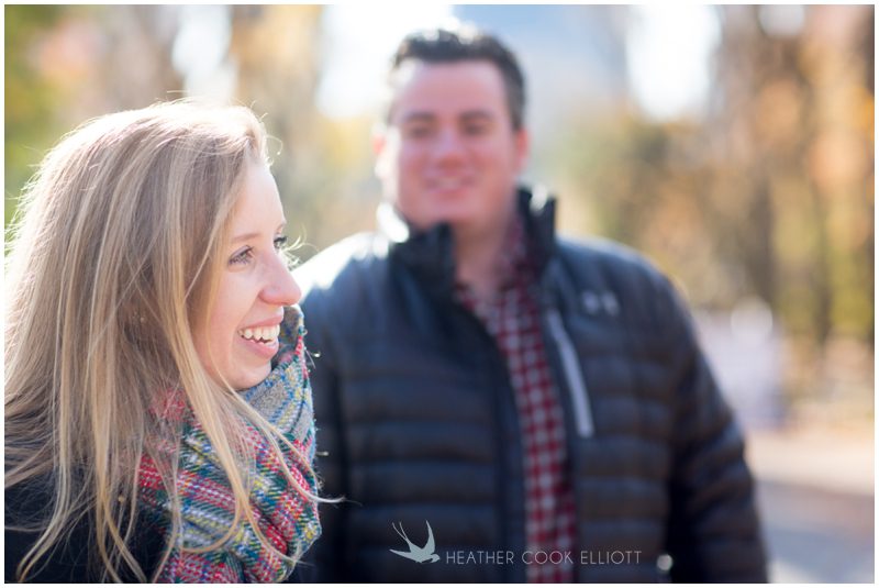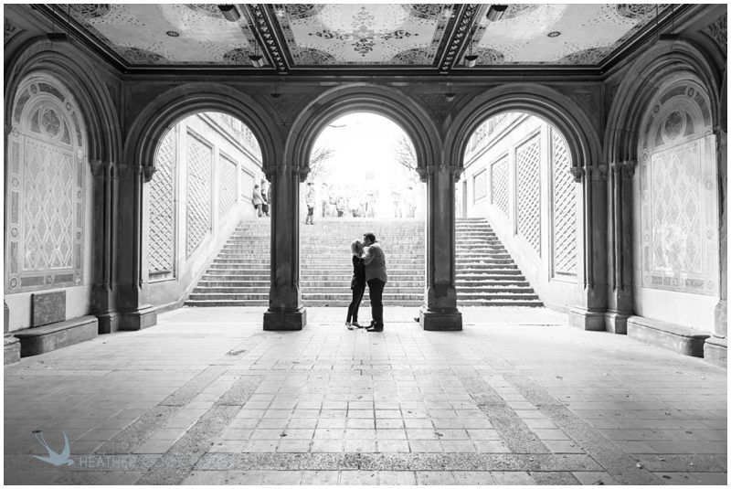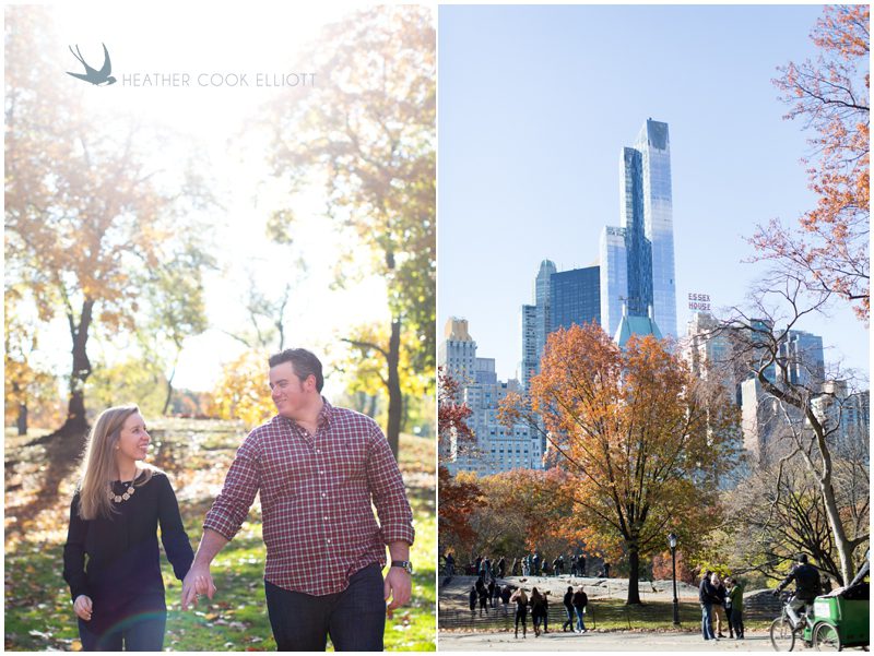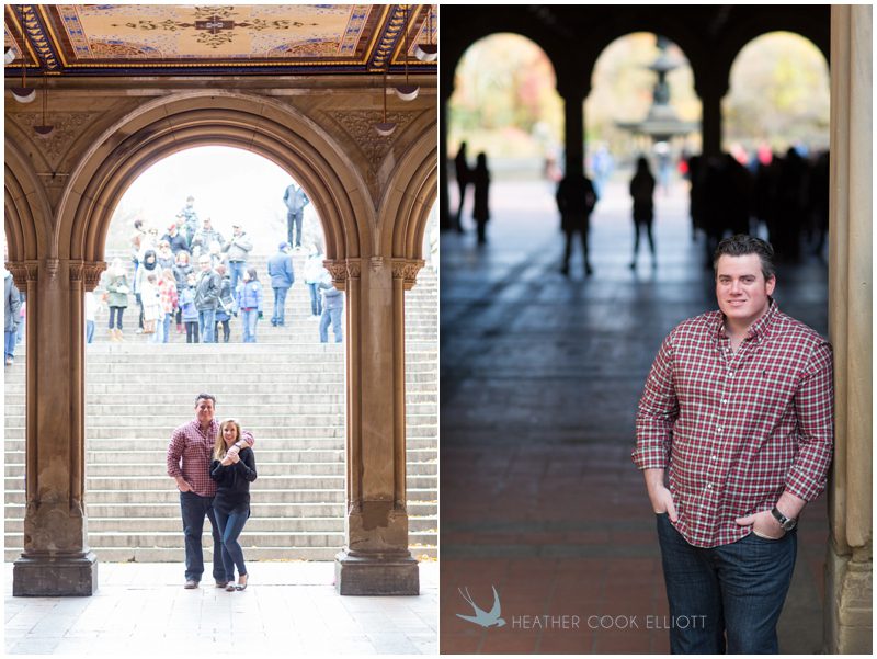 Meg is from Wisconsin – the house where she grew up is less than a mile from my own – and Garrett is from all over. With a love for football and barbecue, please and thank you I can tell he’s got a little Texas in him, but Vermont and New England show up in his speech and stories, too. The mid-Atlantic and a city here and there across the middle of the country have ties to Garrett, but in reality his home now is wherever Meg is and she’s in New York. They met in college and became best friends, their love revealing itself slowly over many trips and laughs and, ultimately, years. It was still fall in in New York when they invited me to photograph them in their city, in their neighborhood and among the spaces and places that have newly taken on great meaning, like the steps of Jean Georges where Garrett took Meg to dinner after he proposed, or the tiny bench in front of their favorite hidden neighborhood bakery. I photographed them wandering about Central Park, listening to carols echo under the vaults of Bethesda Terrace and taking in the stunning skyline of Mid-town that borders the park’s southern end. I photographed them just being them, talking about their past and their hopes for the future and I was left with this observation: Meg & Garrett are generous and genuinely interested in others, the kind of people who take their photographer to dinner and want to get to know her because they want the people in their lives to be friends, not just people they know. Simply put, Meg & Garrett are my favorite kind of people.