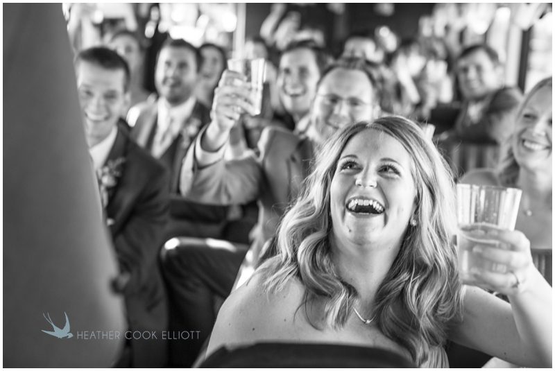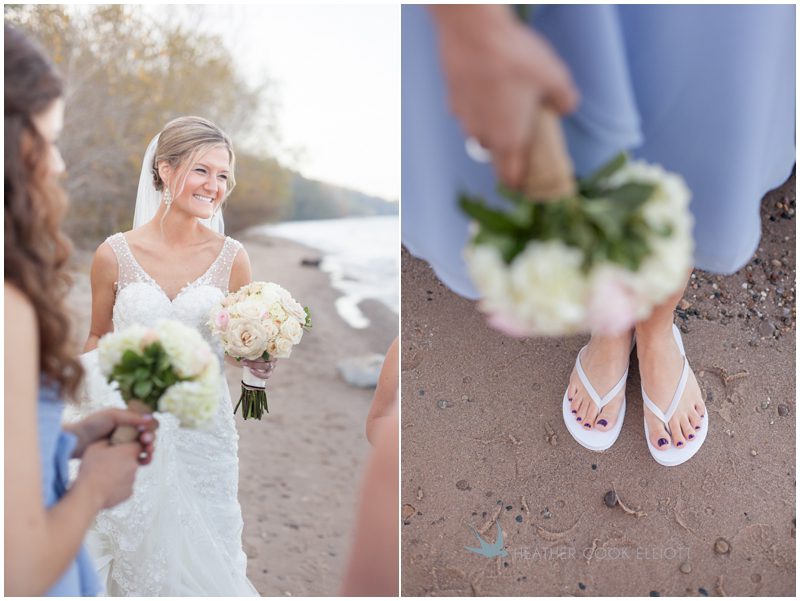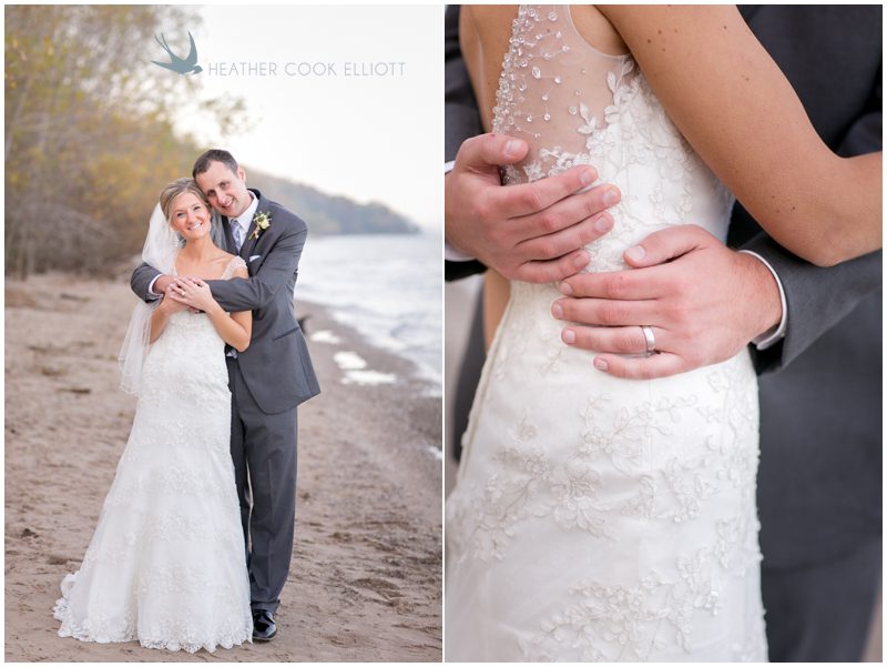 Megan & Chris were married on a late fall day that offered sunshine and golden light. Their bright north shore church hosted their I Dos beautifully, and set the stage for an intimate and beautiful reception at the ever-engaging Schlitz Audubon nature center. Rustic details like burlap wrapped flower stems made total sense for the Great Hall at Schlitz but Megan made sure it all stayed very bridal – adding silver chiavari chairs and enough candle light to make one want to slow dance all night. But before they welcomed their guests under the porch at Schlitz they had to get some sand on their toes, making the most of the almost-secret beach at Schlitz. I love how the periwinkle blue of the bridesmaids’ dresses suggested a lakeside day all along and the guys made sure the day never got too serious – clad in grey suits and big smiles they were a wonderfully rowdy bunch that Carolina and Sara tamed just long enough to capture a few handsome beach shots. As the bridal party headed back up the hill from the beach, through the woods to the Great Hall, Megan and Chris stayed behind for some quiet moments together. The setting sun painted the sky and they held one another – thrilled to have fun with their guests in a bit but also just calmed by the fact that they were finally Mr. & Mrs. Later that night the revelry would be interrupted by a medical emergency as Chris’ dad ended up making a trip to the hospital. It was scary and intense, but Chris and Megan made it back to the reception – relieved to report that Dad was doing okay and that he had clear instructions for everyone: Get the party started and everyone dance. So they did, first Megan and Chris alone under the soaring vault and then Megan with her dad. By the time their dance dissolved into something with more of a beat the entirety of the dance floor was filled. Just as Dad had directed – they got the party started and celebrated all night long.