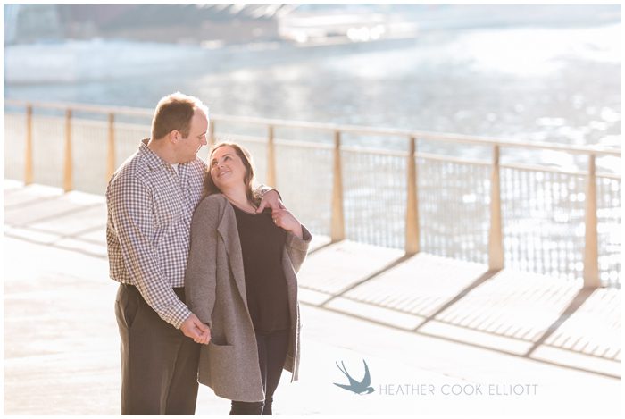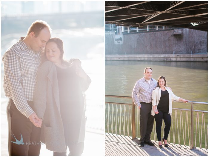 Callie & John have sweet ties to the city of Chicago. Although they don’t live downtown, it’s the place where they love to wander and entertain themselves, a place to discover and explore, and perhaps best of all, a place that holds the memory of their engagement. John proposed to Callie close to Trump tower, by the river in the middle of the hustle and bustle of the city, his words making everything fade away except for him, her and her swooning yes. They’ll be married in early fall a bit further north, in Wisconsin at the lovely Big Foot Country Club, and I can’t wait to photograph what promises to be an elegant and intimate wedding surrounded by a more green setting. But for now I’m content just looking at these photos where spring sunshine surprised us all and kissed their skin warmly as they walked about the place where he asked and she said yes.