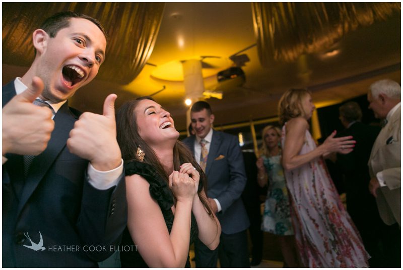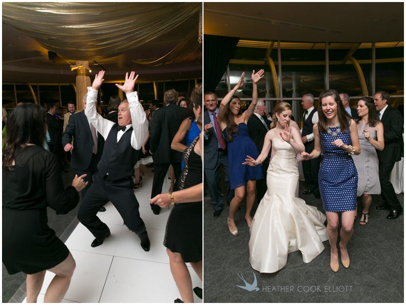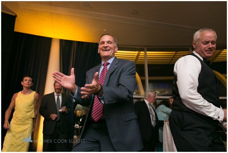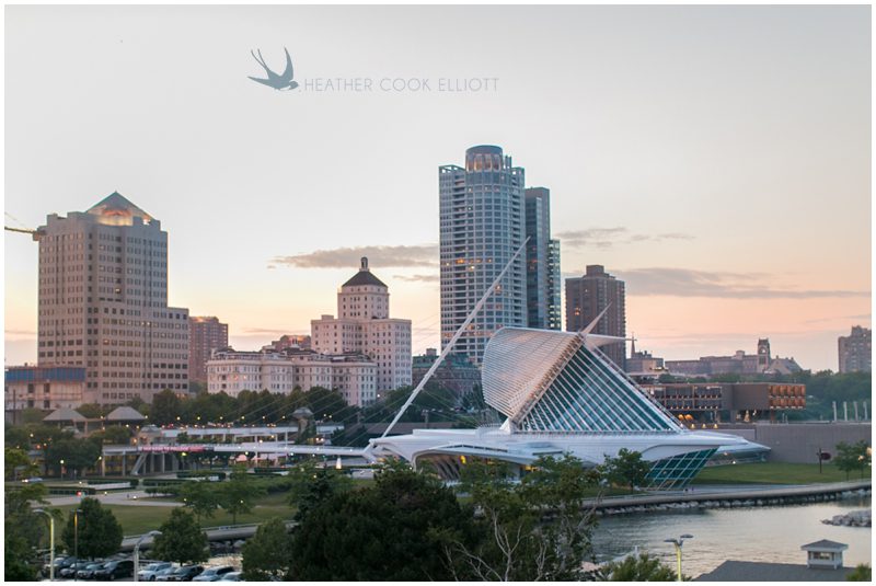 Last November I visited Meg & Garrett in New York where they live now and came to know them just a bit. They treated me to a delicious dinner and a great walking tour of Central Park West, to stories about college when they met and became best friends, and ultimately, to time with them, which was by far the biggest treat of all. And I’m pretty sure that’s how their adoring families feel about them, too, as both their moms and dads live states away making time together the most precious thing of all. So on their wedding day Meg & Garrett made sure they slowed things down as much as possible. Meg dressed at her childhood home and Garrett’s family visited the hotel suite where he spent the morning. They shared a full mass with Father Tim, a priest who’s known her family for ages and meandered through the city in a trolley with their bridal party. They greeted guests at their lakeside cocktail hour and shared in the surprise of Meg’s dad singing to them a capella as part of his welcome toast. Champagne popped and fizzed while glasses clinked, tears fell and laughter was never ending and then just when it seemed it couldn’t get any better the guests and family were invited up from the tent at Pier Wisconsin for dancing in the Pilot House. The decor was spectacular, the mood electric, and I’ve never seen a crowd dance so happily for so long in my life. In an atmosphere like no other I’ve photographed the band brought the house down as Garrett held Meg in his arms, thinking that time with her was all that could ever matter in the world.