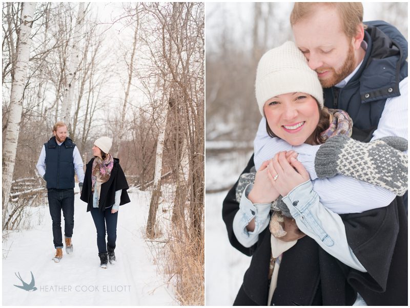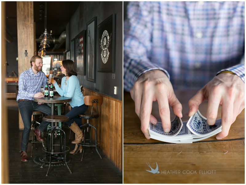 Lindsay and Sam are, in a word, Adorable. The kind of adorable that makes you want to pull up a chair and join in the game they are inevitably playing, that makes you want to go out for beers, or for a hike, or just hang out with them and talk. They are easy to smile and open about their love of Star Wars (Sam) and Harry Potter (Lindsay), games like Ticket to Ride (thank you Sam’s family) and gin rummy, life in Chicago and getaways up north to enjoy a slower pace of life (both of them.) So for their engagement session it was our pleasure to capture them in their reality where a snowy hike pairs well with reading and board gaming, card playing and Spotted Cow. I love how these images are not filled with props, but rather with laughter and their personalities, their favorites books and games and well-worn boots, their love and happiness the centerpiece of it all.