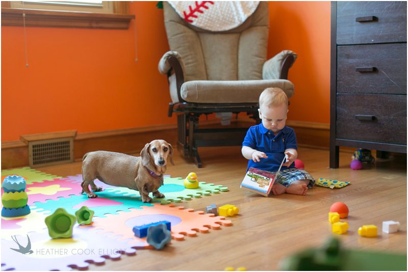 There are blue eyes and then there are Rhys’ blue eyes. There are chubby cheeks and then there are Rhys’ chubby cheeks. There are cute dogs and then there is Rhys’ cute dog. Basically, Rhys has it all, in superlatives. My first sight of this little man was him belly/army crawling across his home’s shiny wood floors, in search of Chloe the dog and a toy to play with. Once he noticed me he switched focus, to finding a book and playing with his trucks. I hung out, played with Chloe and played with him, catching his attention with soft drink cans and plastic kitchen-ware (kids like the darnedest things!) And I witnessed love, the deep kind a mom has for her son, a husband for his wife, and family for itself. It was a sweet, simple, sun-filled session for Rhys. It was, simply the best.