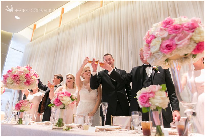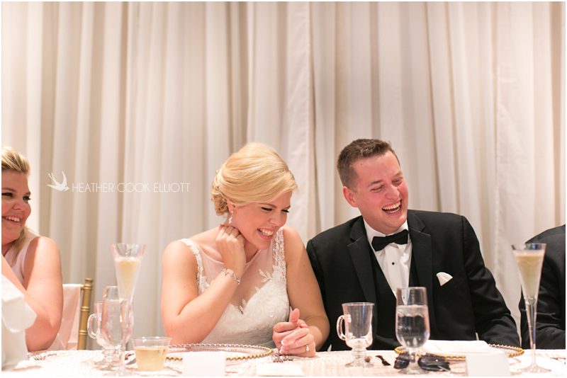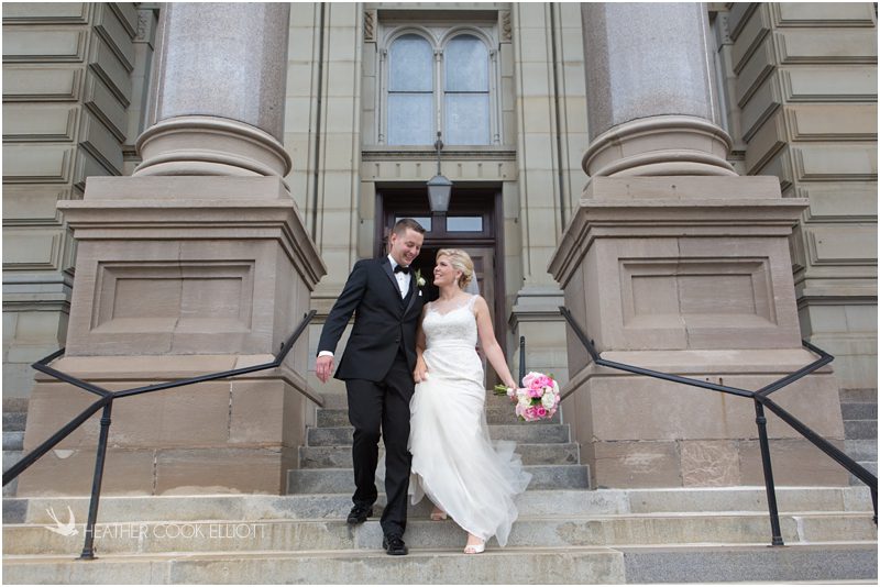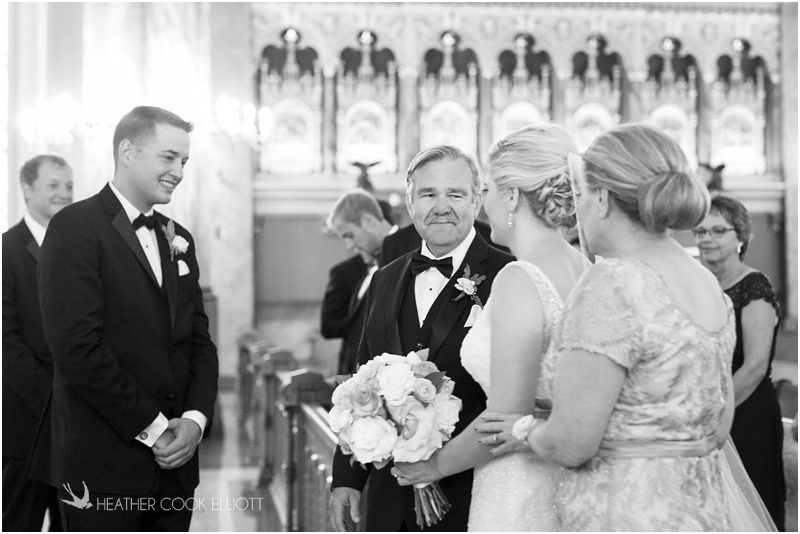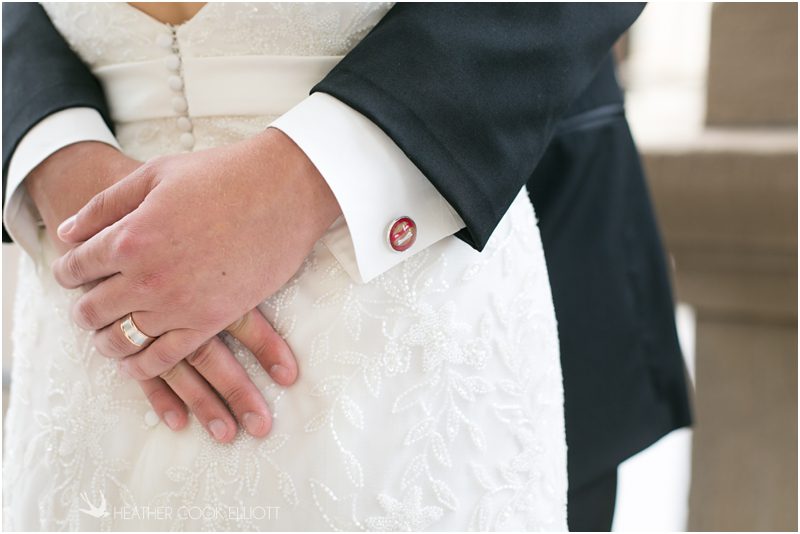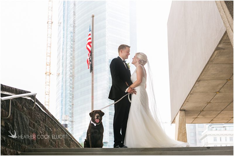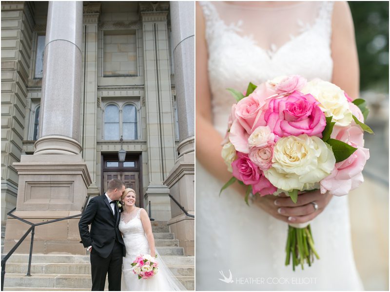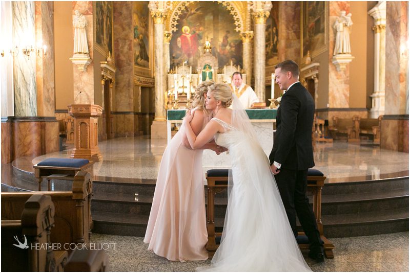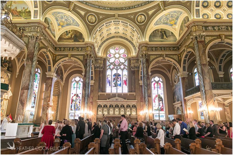 Laura & Kyle are intriguing to me. They are nice and cute and sweet and all that jazz, but if one chats with them long enough little tidbits about their lives come up in conversation and it’s as if the real them sort of emerges from the easy, pretty picture. And, I must say, knowing that he a veteran and she rides horses and they were long distance loves for years makes the picture seem just that much more beautiful. But as surprising as they they are to me it was no surprise that their wedding day was fresh and bright, a little sparkly and a lot romantic, the perfect compliment to their personalities and an exquisite blend of the two of them. I loved the contrasts between their gilded Basilica wedding and their modern War Memorial reception; how their beloved dog Moose joined them on the patio while guests gazed at the lake; how they were surrounded by hundreds but only saw each other.