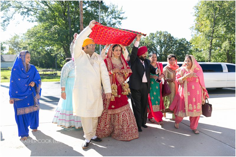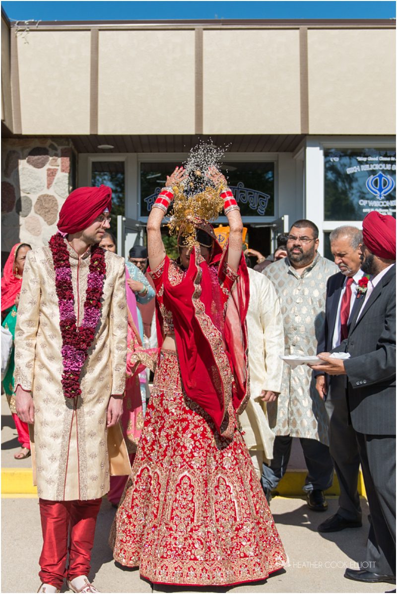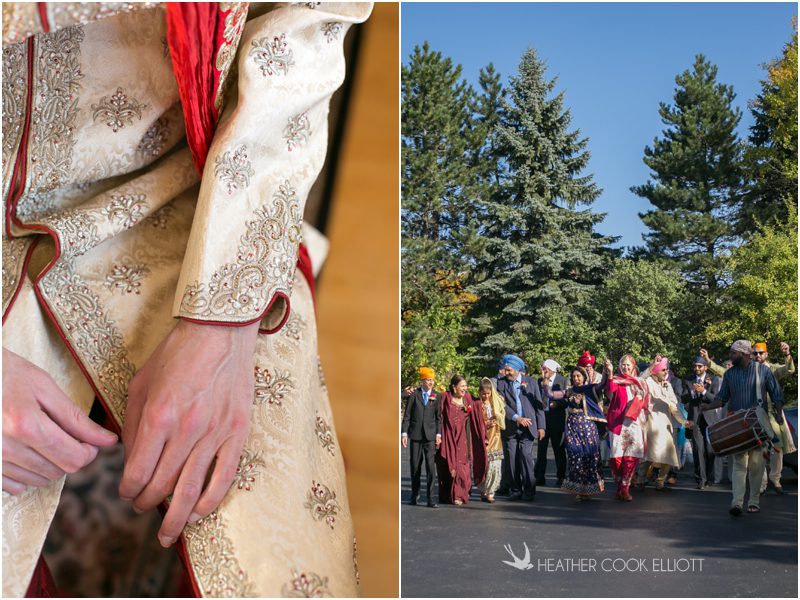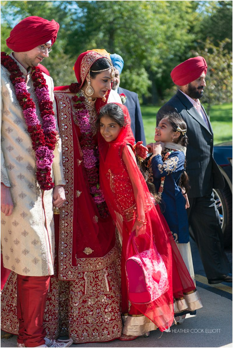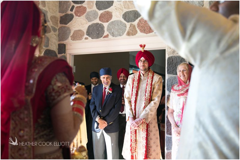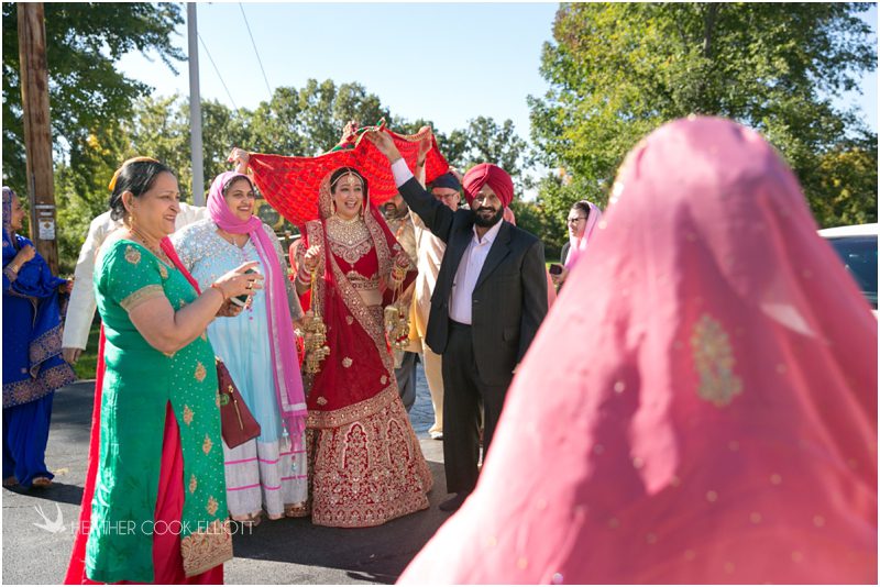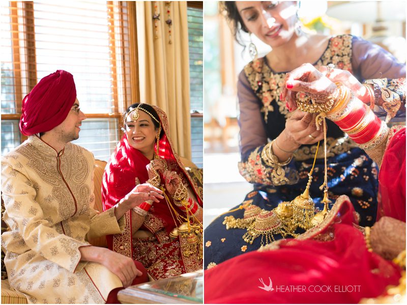 On the day of the wedding the October sky stays blue and cloudless while Nita and Justin prepare for a day that starts before sunrise and will end well after midnight. Nita’s preparations begin with an emotional chura ceremony performed by her uncle with the help of her parents and close relatives. The traditional red, cream and gold bangles set on her arms mark her as one to be married today. Across town Justin’s father and uncle work together to wrap his unfamiliar turban, an outward sign that he too, is to be married today. Bejeweled and adorned they will celebrate together to the sound of drums and marvel how lucky they are to be together, to be the reason for all this happiness, to be husband and wife.