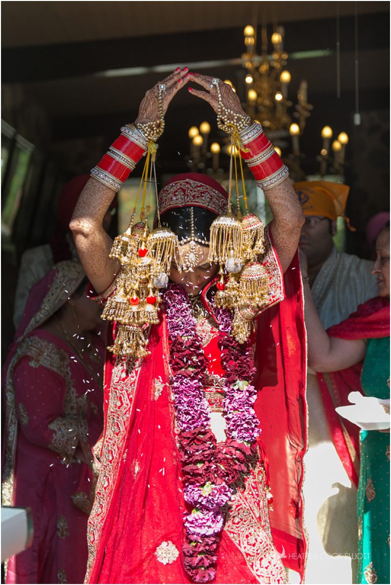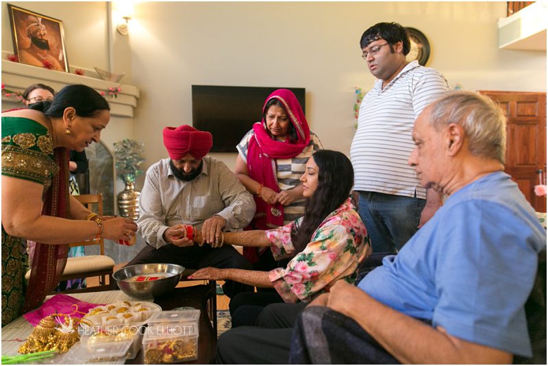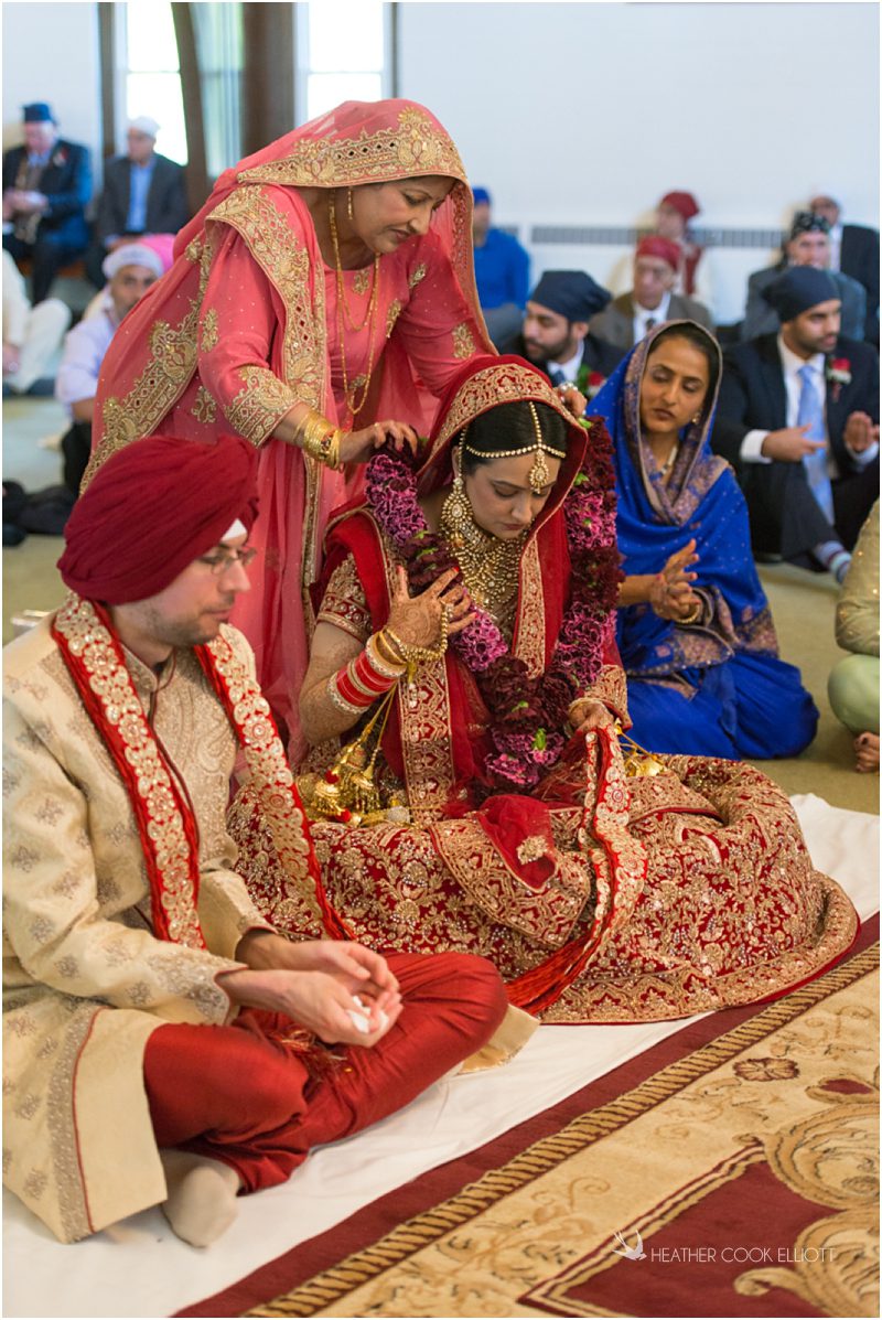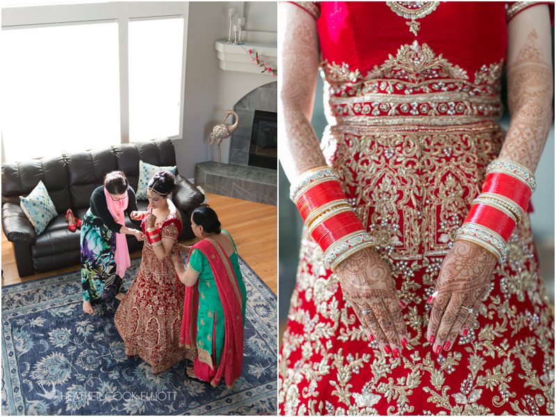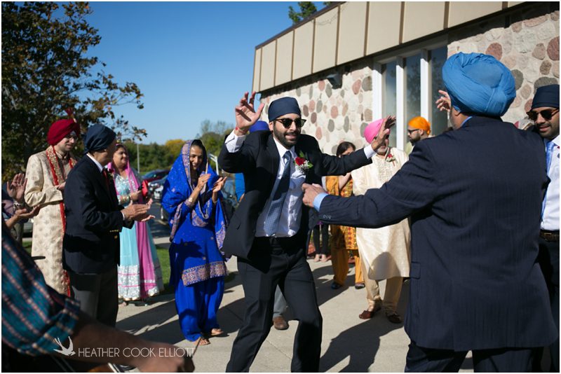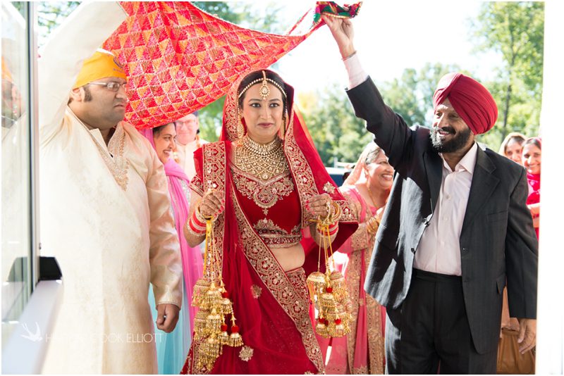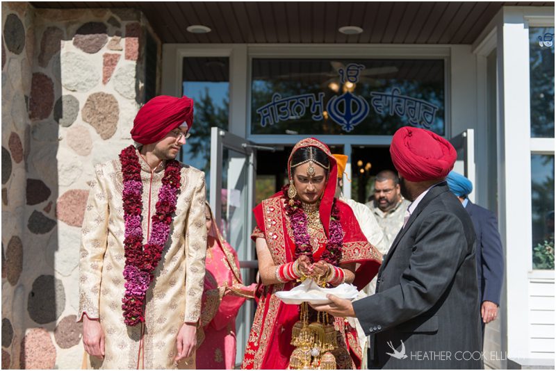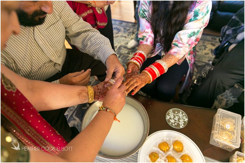 On the day of the wedding the October sky stays blue and cloudless while Nita and Justin prepare for a day that starts before sunrise and will end well after midnight. Nita’s preparations begin with an emotional chura ceremony performed by her uncle with the help of her parents and close relatives. The traditional red, cream and gold bangles set on her arms mark her as one to be married today. Across town Justin’s father and uncle work together to wrap his unfamiliar turban, an outward sign that he too, is to be married today. Bejeweled and adorned they will celebrate together to the sound of drums and marvel how lucky they are to be together, to be the reason for all this happiness, to be husband and wife.