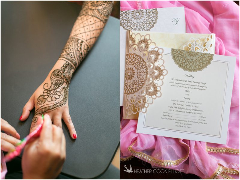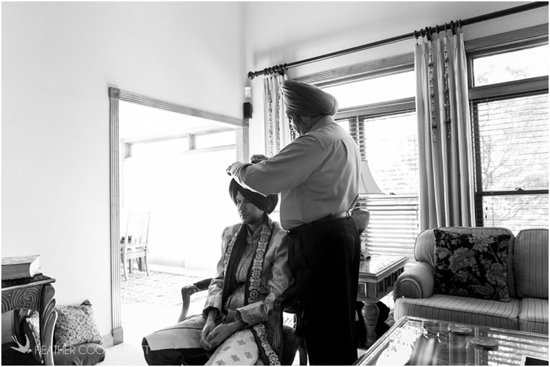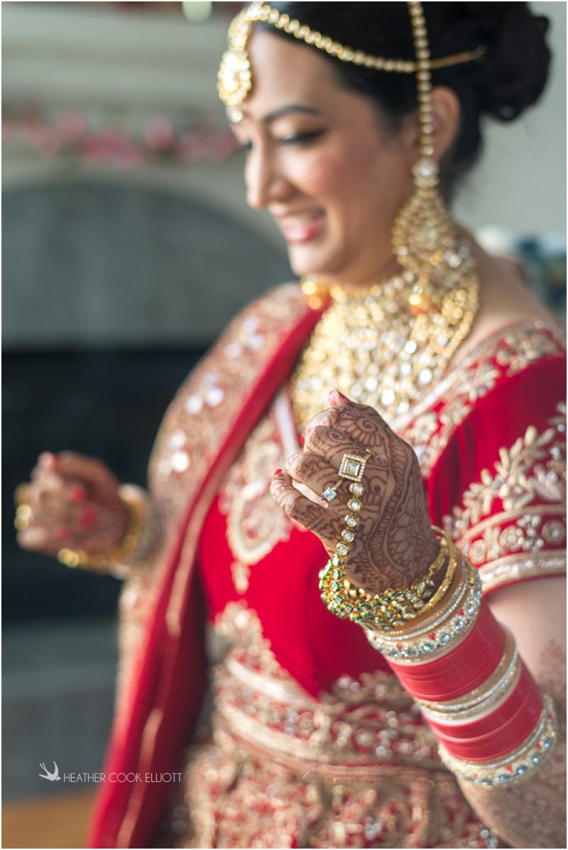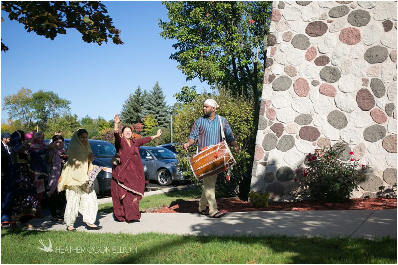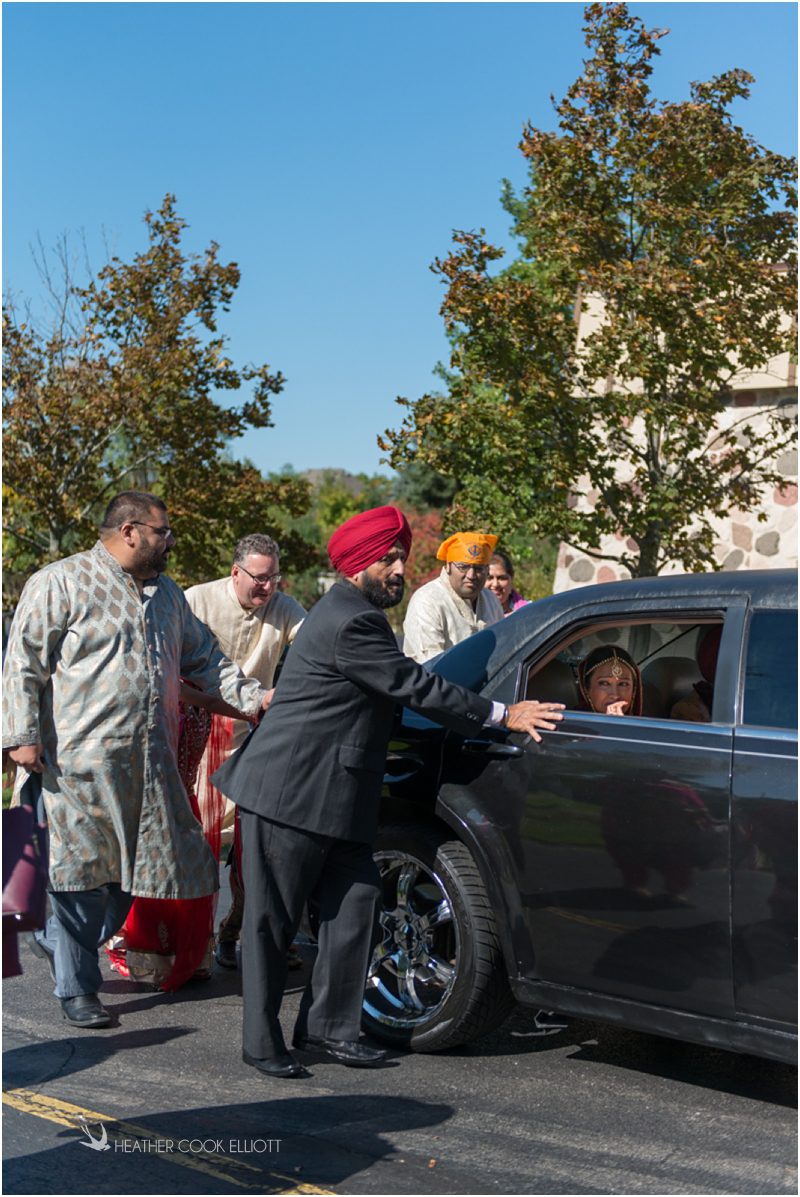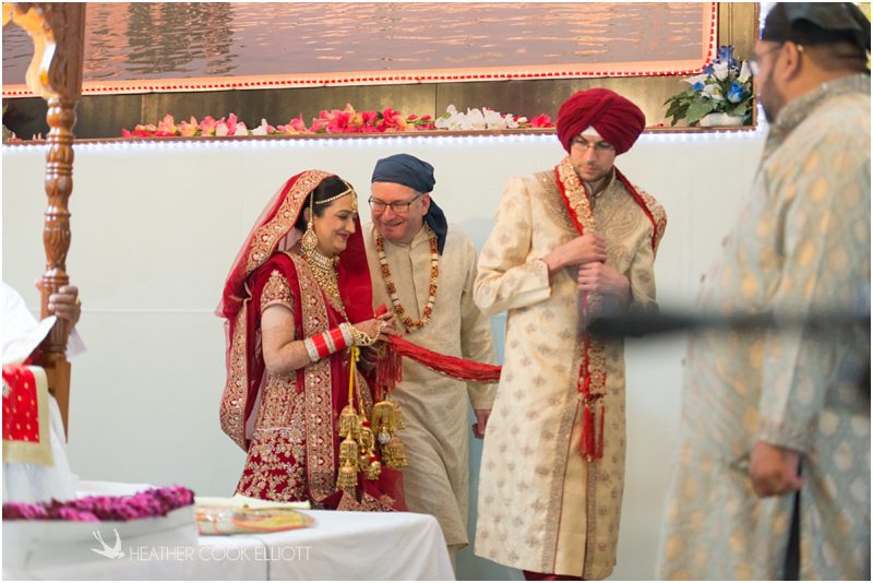On the day of the wedding the October sky stays blue and cloudless while Nita and Justin prepare for a day that starts before sunrise and will end well after midnight. Nita’s preparations begin with an emotional chura ceremony performed by her uncle with the help of her parents and close relatives. The traditional red, cream and gold bangles set on her arms mark her as one to be married today. Across town Justin’s father and uncle work together to wrap his unfamiliar turban, an outward sign that he too, is to be married today. Bejeweled and adorned they will celebrate together to the sound of drums and marvel how lucky they are to be together, to be the reason for all this happiness, to be husband and wife.