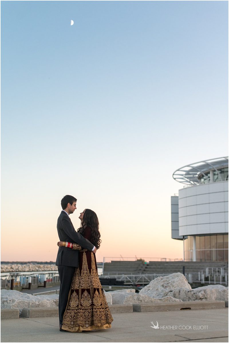 Nita & Justin’s wedding weekend was an event long dreamed about and diligently planned for – one for which Nita traveled across the world to select just the right wedding clothes for and one in which two families truly joined together to celebrate love and tradition. Nita ardently wanted a traditional punjabi wedding and Justin wanted Nita to be happy so their families conspired to make it happen in every way. No Sikh wedding is complete in a day and in fact theirs was really a wedding weekend that included an at-home Mehndi and a downtown Sangeet, a sunrise Chura ceremony, a Milni and Anand Karaj at the Sikh Temple, a luncheon and first offerings of food between a new husband and wife, a colorful and festive reception and dance party at the Pilot House, and oh yes, a few dress changes and more food than anyone could ask for. It was, in a word, Amazing. And on our end, 38 hours of photography over two days between three photographers means that there are so many, many images to share, each one more emotional, colorful and beautiful than the next. And so I know no better place to start than in the morning of the Sangeet as the sun broke coral and lemon yellow over the horizon. It begins: