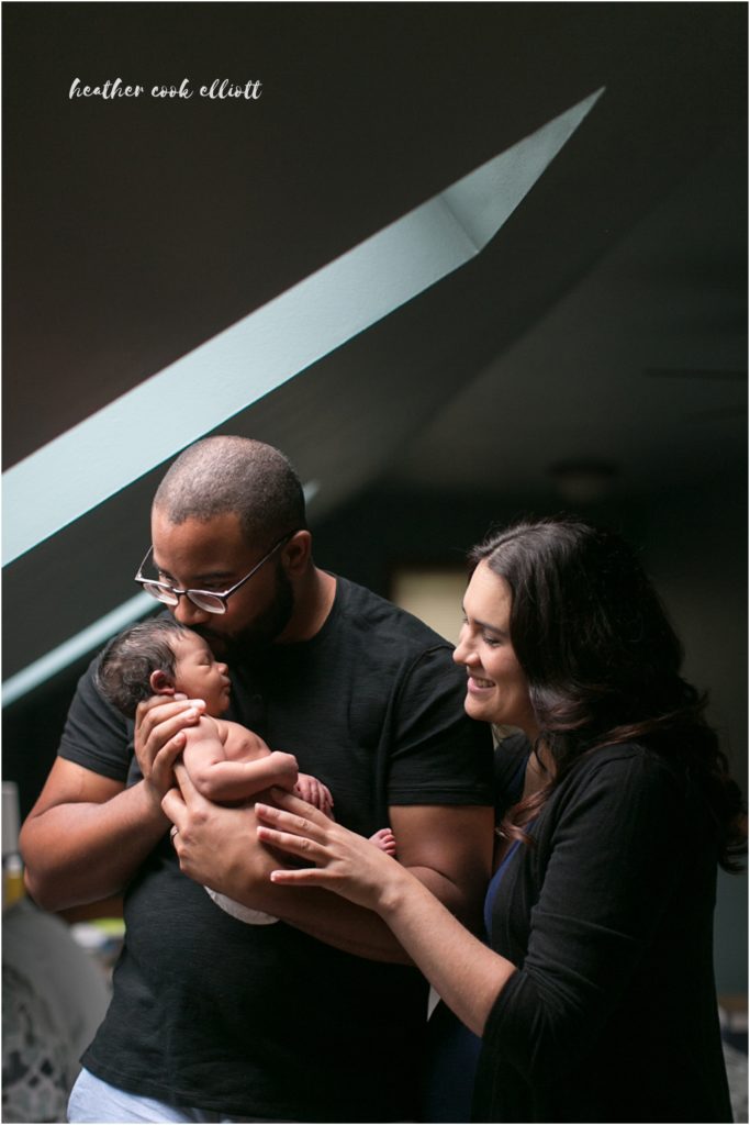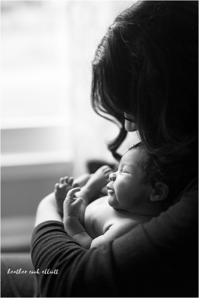 As I write this I imagine Baby Theo is at home, but not the home pictured here. I photographed him at just a few days old and just few days from when his parents would finish packing up their first home and move to a new city, a new job, a new reality as a sweet little family. Theo was born at the end of one chapter in his doctor mom’s life and so I felt compelled to sit a little longer than usual and enjoy the specific awesomeness of their soon-to-be-old house made all the more special by the presence of tiny, adorable, big-cheeked, silky-haired Theo. Mom & Dad apologized for the boxes and lack of a nursery but really, it didn’t matter. Theo’s space is made whole by the things that go with him no matter where he is – the sounds from dad’s guitar (which he plays liberally and well) and the warmth of his mom’s arms. I was impressed by the easy laughter that he will grow up with and the art that will surround him (his grandfather is a clay artist and his great-grandfather a wood worker). I don’t usually put babies in pots or on top of wooden chests but when they are thoughtfully and deftly made by family, I feel like it is something of a necessity. I love the light and the way it kisses Theo’s cheeks in these images, how his relaxed little body tells the story of how safe and warm and content he is, how much his mom and dad clearly love one another. While I hope Theo’s new home is unpacked and everyone is getting settled nicely, I am happy to hang out here with this moment in time and just simmer awhile. It’s nice here, don’t you think?