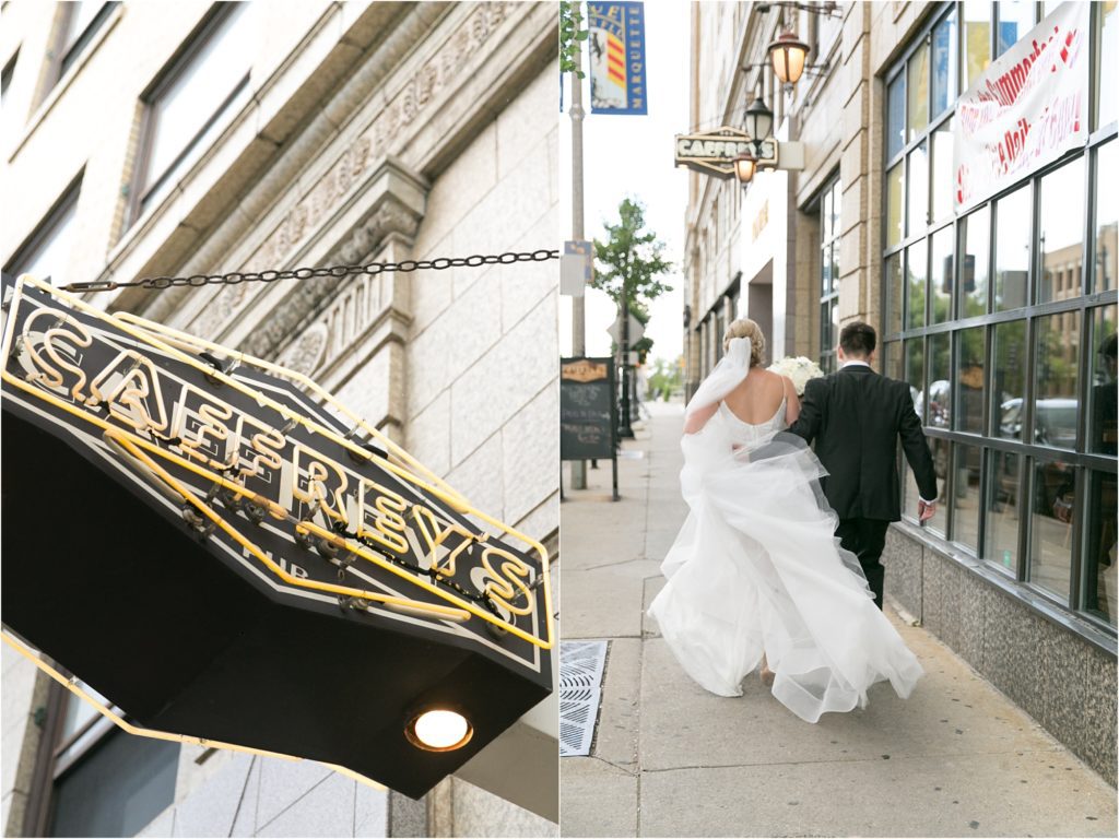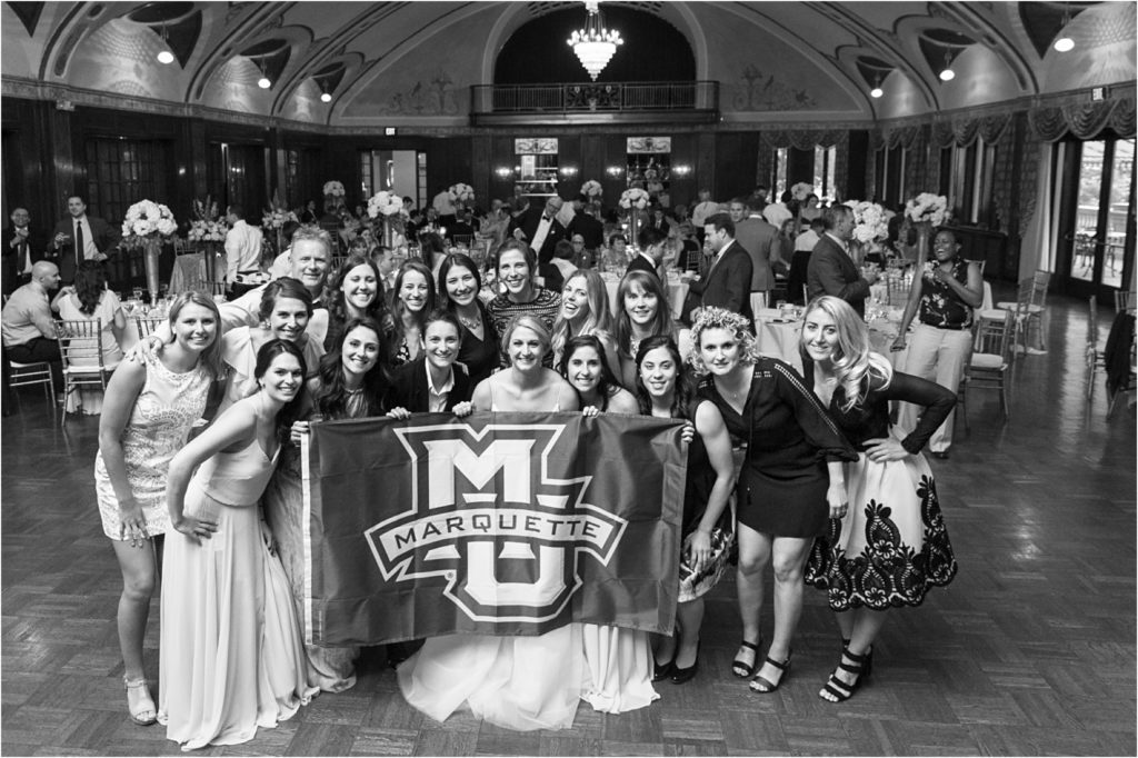 Lauren & Matt have a Marquette love story that starts out just about any story about them. They both played soccer at Marquette and both hold seriously dear memories of their days on campus – practicing, studying, winding down (or up?) at at the local bar and of making Milwaukee an indelible part of their lives. So now, even though they live in Chicago close to much of Lauren’s family, there was very little question as to where their wedding would be. And so on a perfect June day they entered the soaring nave of the Church of the Gesu’ on campus and they sealed their forever. They walked to Joan of Arc’s chapel and discovered it anew, happy to enjoy the gorgeous grounds of campus as the newest of newlyweds. And then they were surprised to find time in the schedule to join guests, teammates, family and oh-so-many friends at Caffrey’s where the girl in the moon encouraged them to toast and toast again. I loved how the playful, nostalgic bar gave them a chance to steep in all the awesomeness of their wedding day before they helped host their night at the Wisconsin Club. And really my big take away from their day was how formative and important place is. Milwaukee and Marquette are where it started for them and very likely where it will start over and over again for them as they attend reunions, friends’ weddings, future anniversary dinners in town and maybe more. Each time they step on campus they’ll remember not just their college years but the day weekend they became husband and wife.