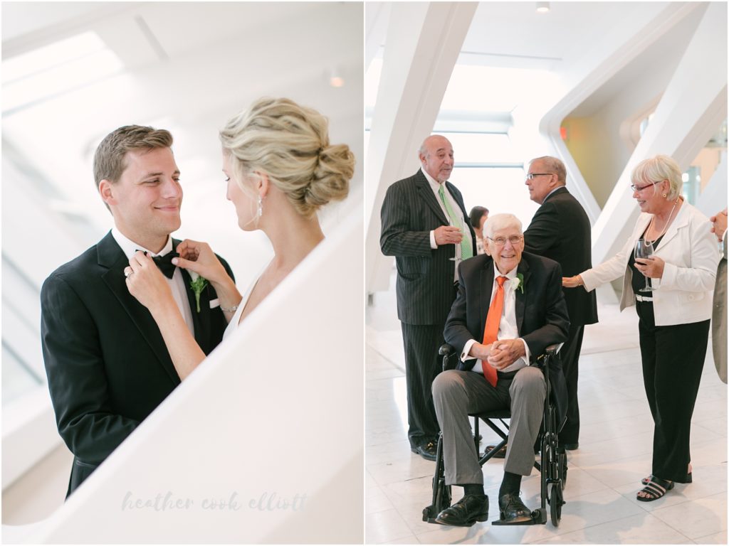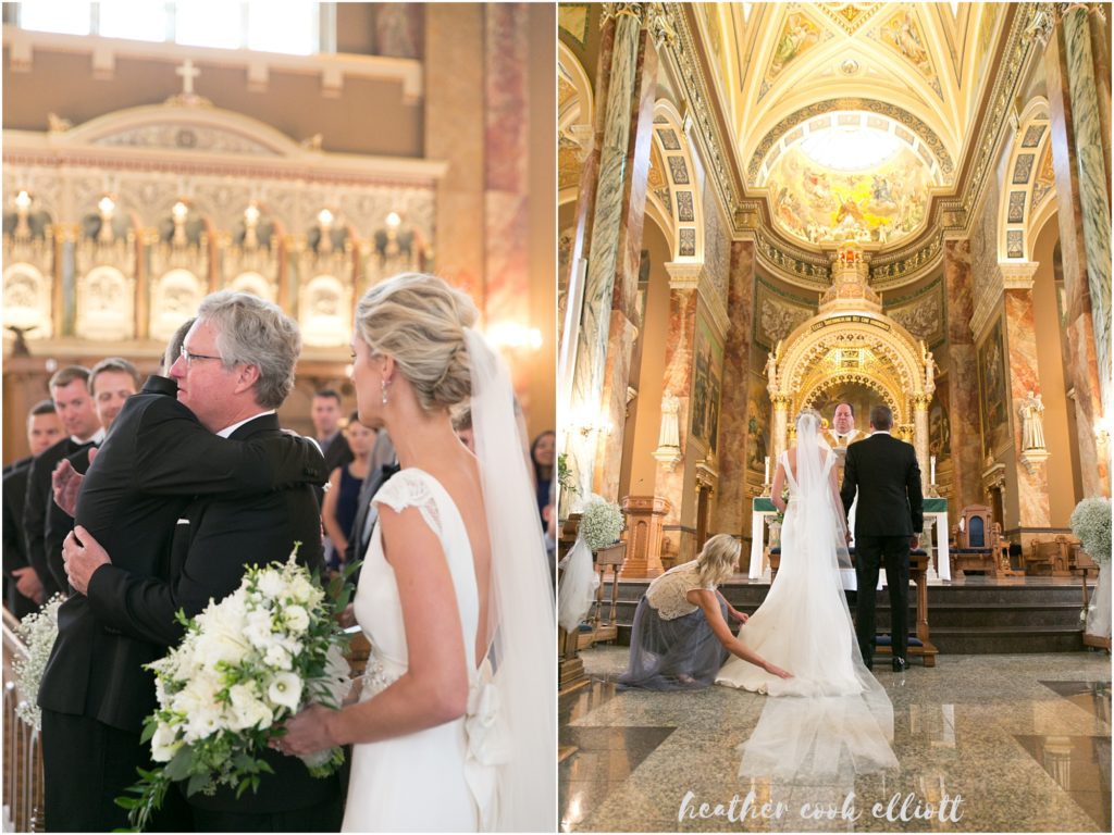 Some wedding days stick with us a little longer – whether because the couple was particularly sweet, or because a beloved grandfather was abundantly present, or because the band was really, really good, or because the toasts revealed things wonderful and cherished about the couple, or sometimes, I’ll sheepishly admit, we just fall in love with a dress. Lauren & Ben’s wedding day stuck with me because all of these things happened on the same day. They were married under the soaring vault at the Basilica of St. Josaphat and then celebrated at the equally iconic Milwaukee Art Museum, both epicly lovely buildings that so fascinatingly contrast with one another that I couldn’t help but marvel at the history of architecture on parade all day. And in between all the sheer prettiness there was love – so much love and laughter and best wishes, tears and genuine hope for these two that any sane person within 100 feet of the whole thing could tell that this was a very good day. And from me to them and from all those present to them: Lauren & Ben ~ May you have a lifetime of very good days.