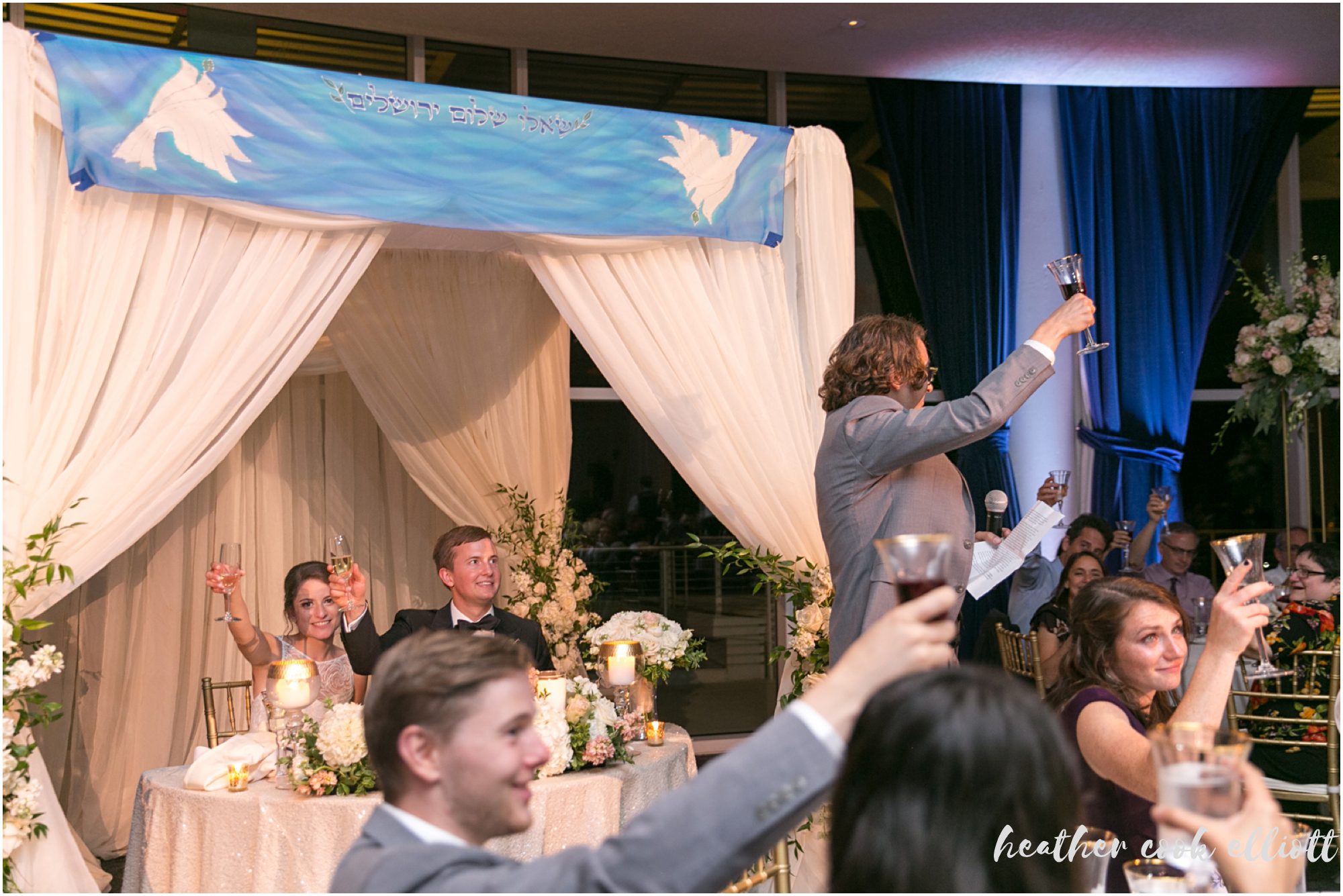 In fact, I think enchanted is pretty great way to describe their summer wedding celebrated on the shores of Lake Michigan in the state where Andrew grew up. Surrounded by family and friends they exchanged eternal vows under their elegant chuppah which stood bedecked in flowers and a family prayer shawl. They broke the traditional glass (untraditionally) together and they absorbed every sweet second of every sweet toast. Buoyed by love and a great band, they watched fireworks set off just for them over the lake. And throughout every moment they touched and held hands, just to remind themselves that this incredible day was not a dream.