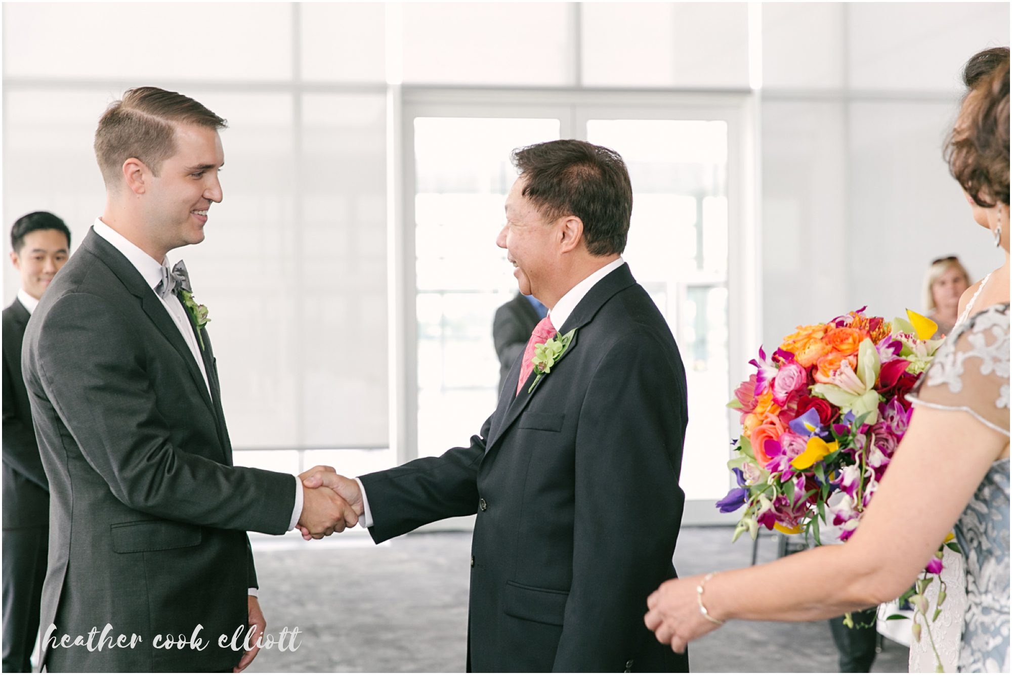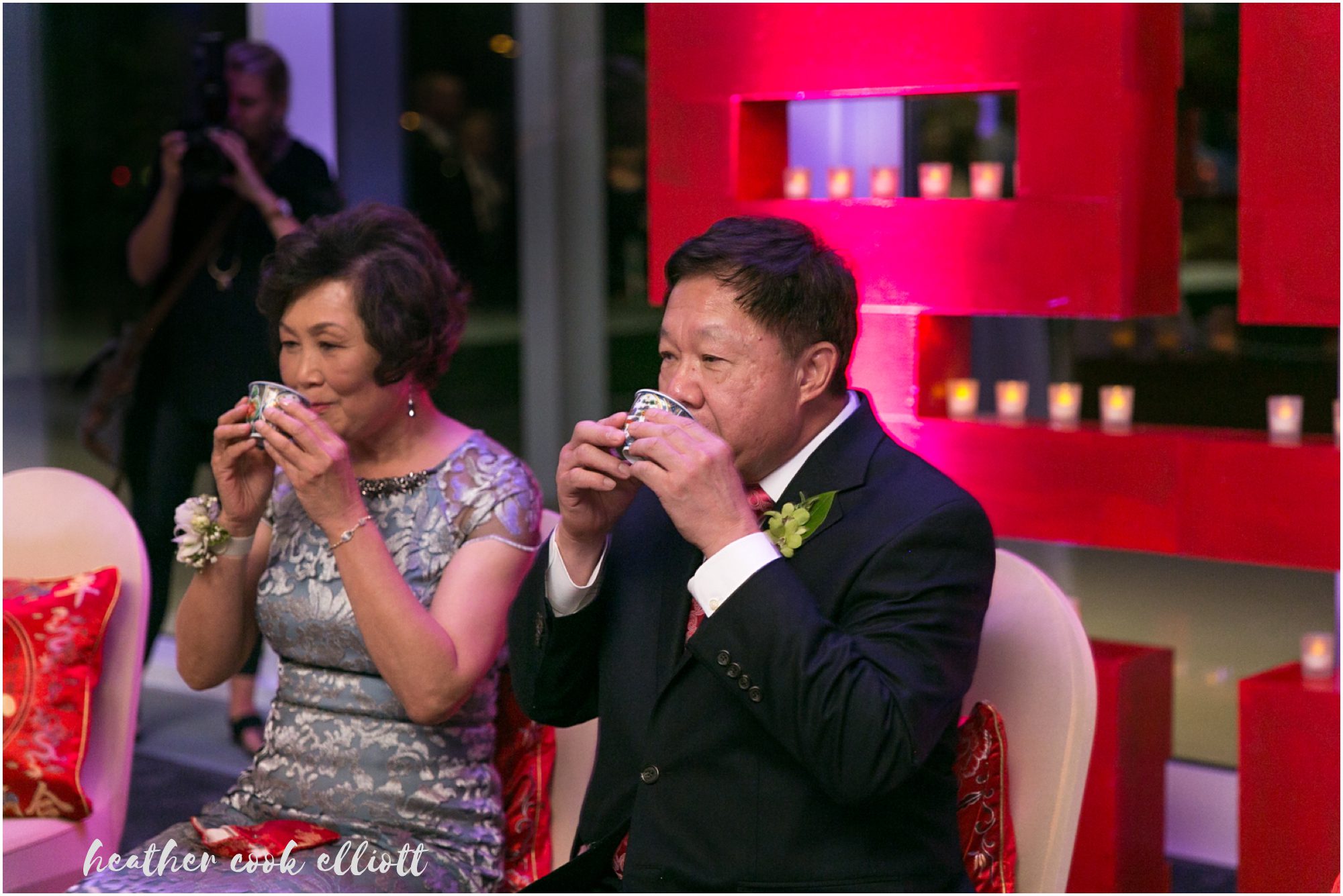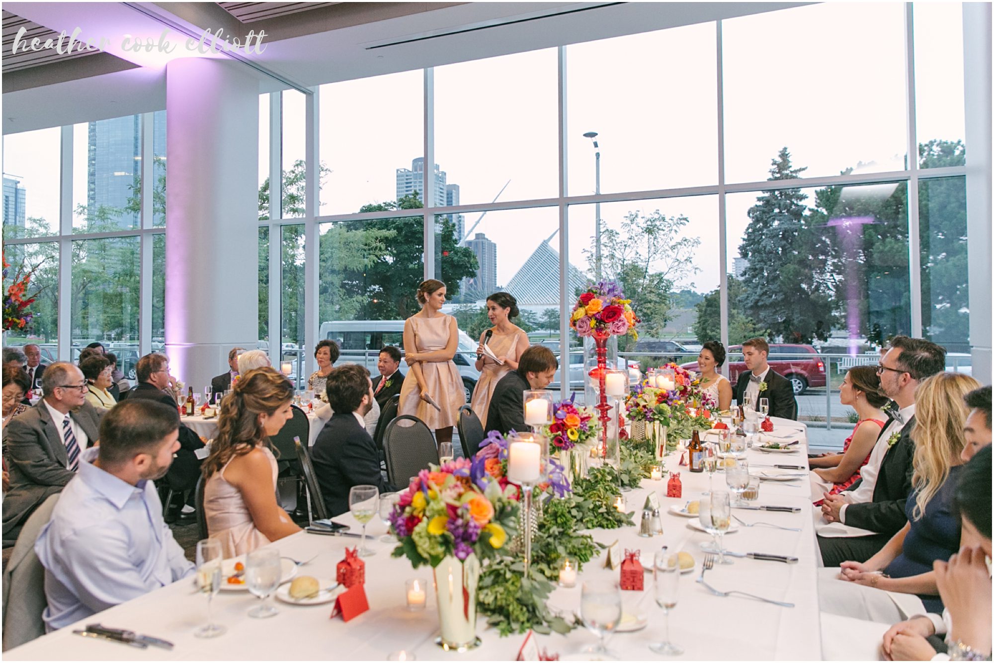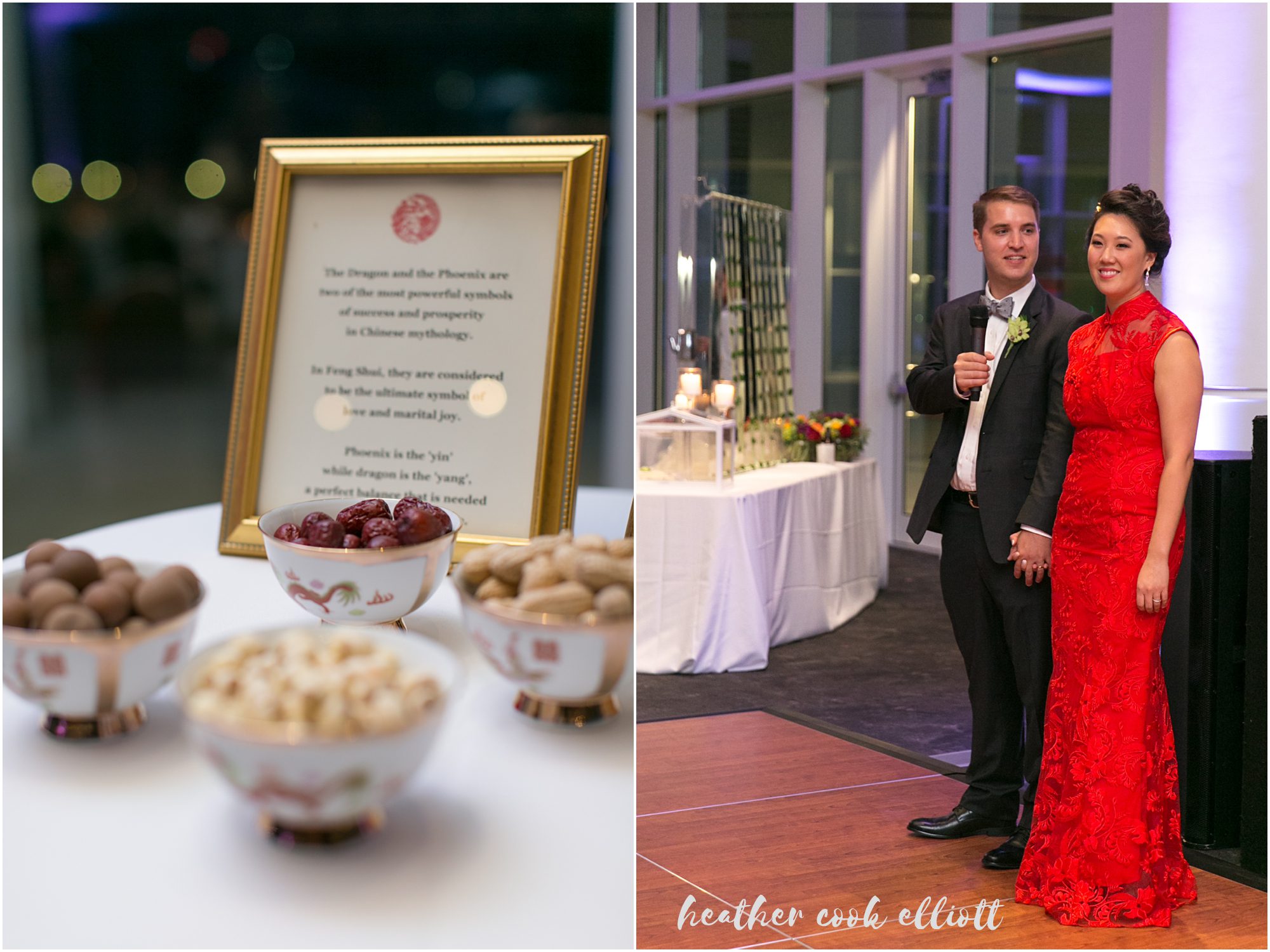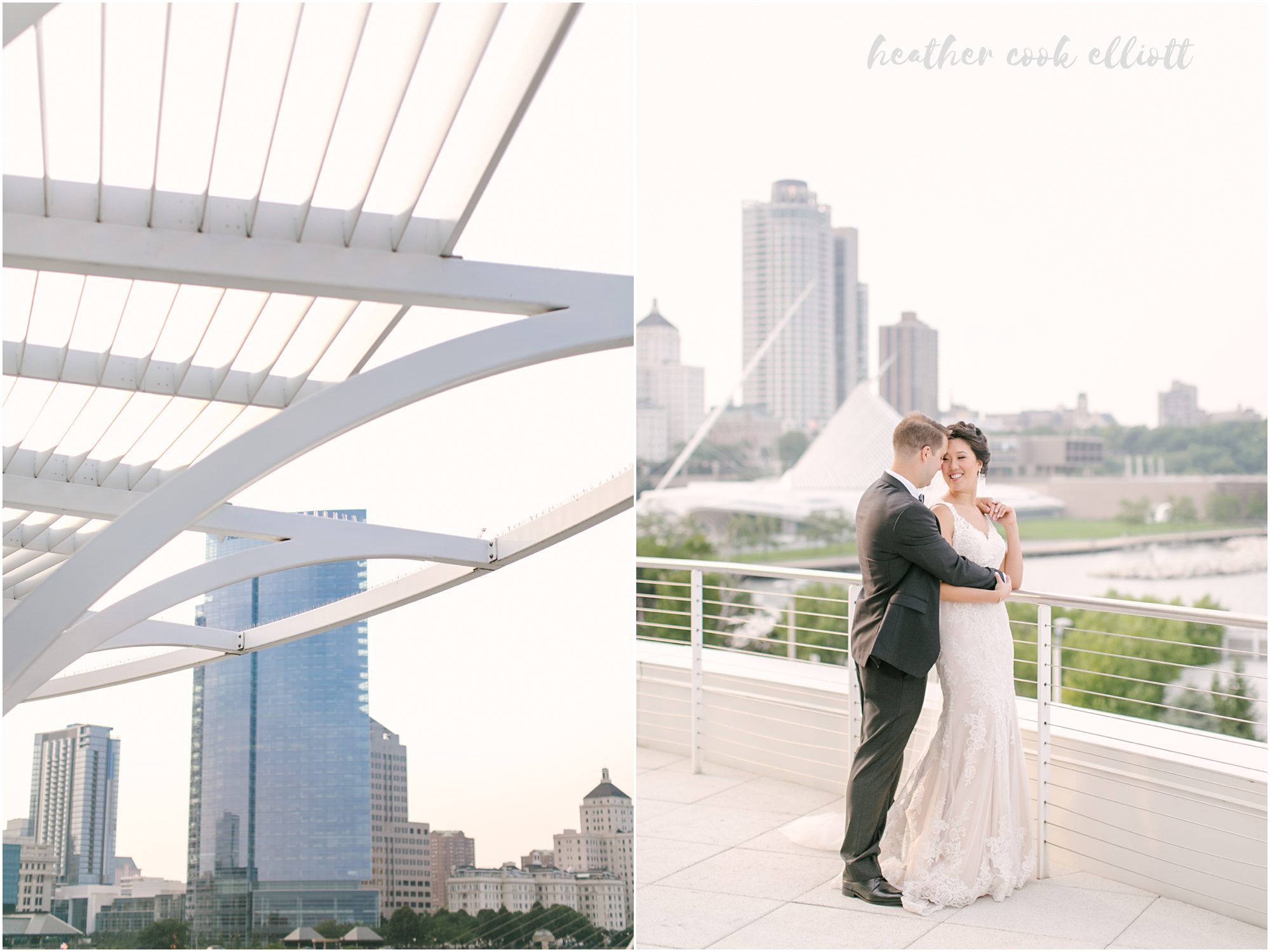 Emily & Jack’s lakeside wedding day was an entirely elegant affair with a laid back Sunday afternoon vibe. We loved all of their completely personal details – from their choice of officiant to their evening tea ceremony, Emily & Jack imbued their day with history, meaning, and loveliness. They started the day just steps from Milwaukee’s lakefront at the Westin and along with their small bridal party they made time to enjoy the lake views and Milwaukee’s cityscape before tying the knot at Discovery World’s new glassy Lakefront Pavilion. With an armful of the most colorful, gorgeous flowers we’ve seen all summer, Emily said I Do to Jack and Jack said I Do to Emily and from there the celebration erupted in earnest. As the sun set over the lake they danced and toasted guests at each table, cracking open custom Emily & Jack fortune cookies. Together with parents, aunts and uncles, they performed a traditional tea ceremony in front of a custom Double Happiness sculpture and every guest in attendance could be seen smiling from ear to ear. Emily & Jack – as the cookies wished us: May you always have good health, good luck and happiness!