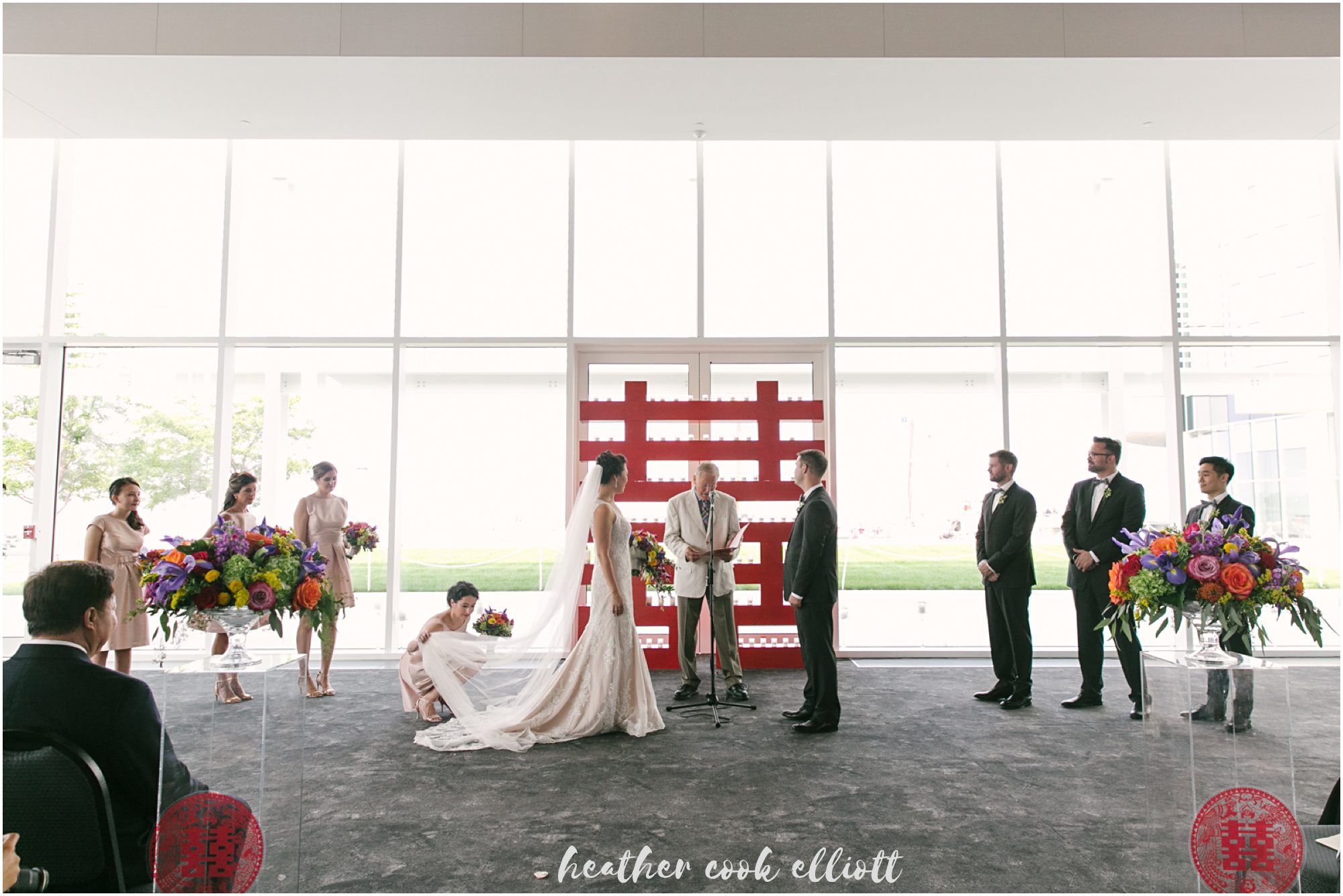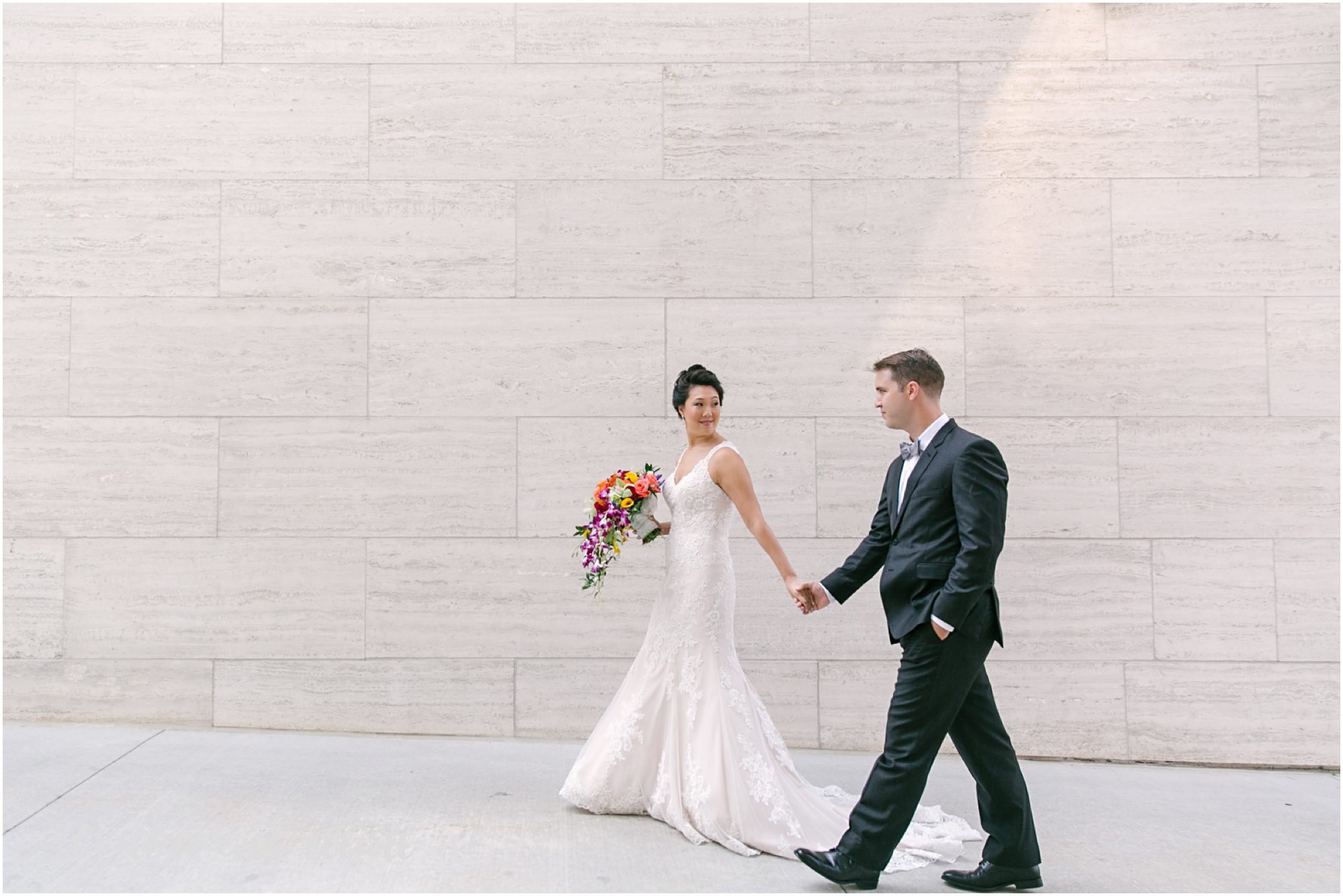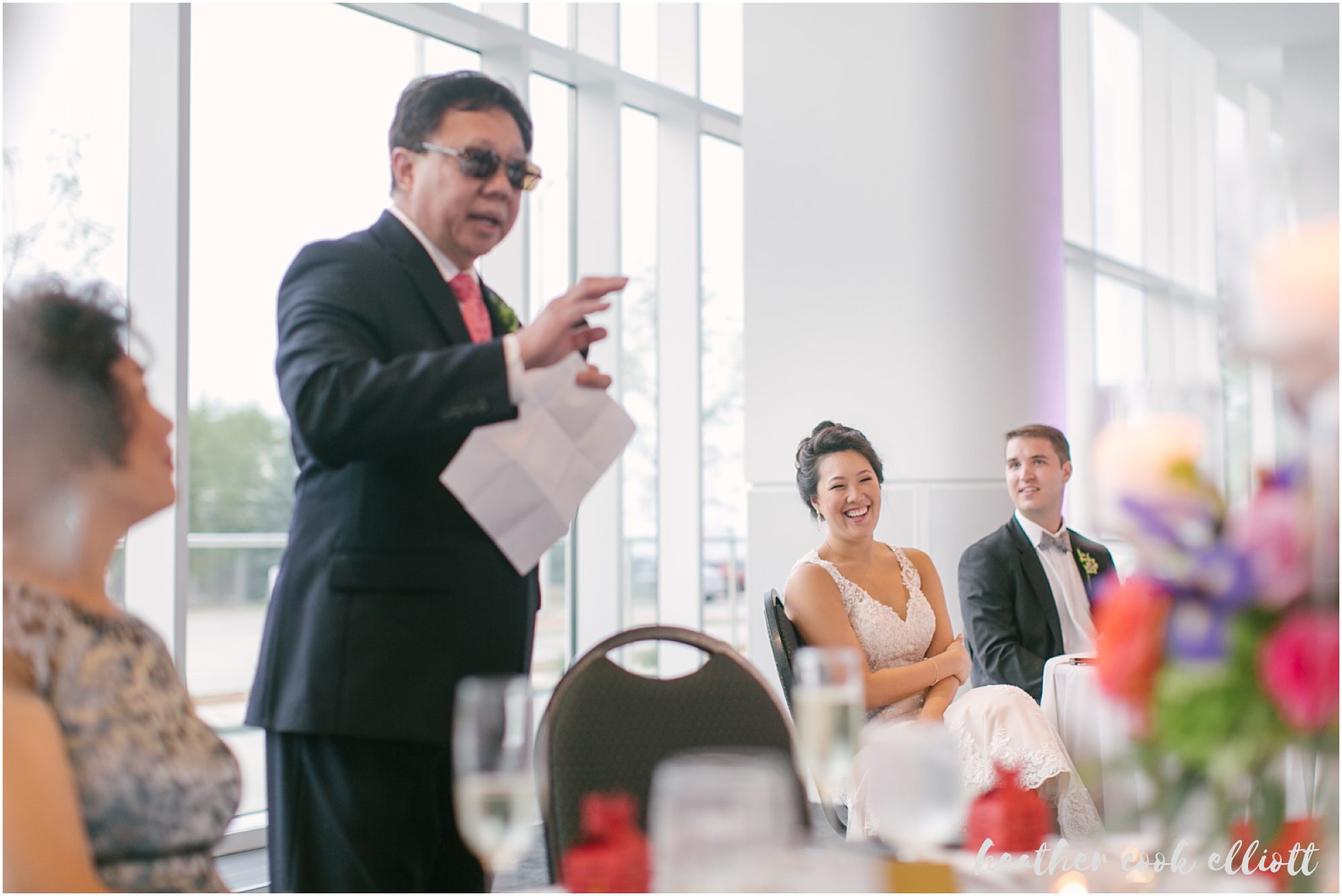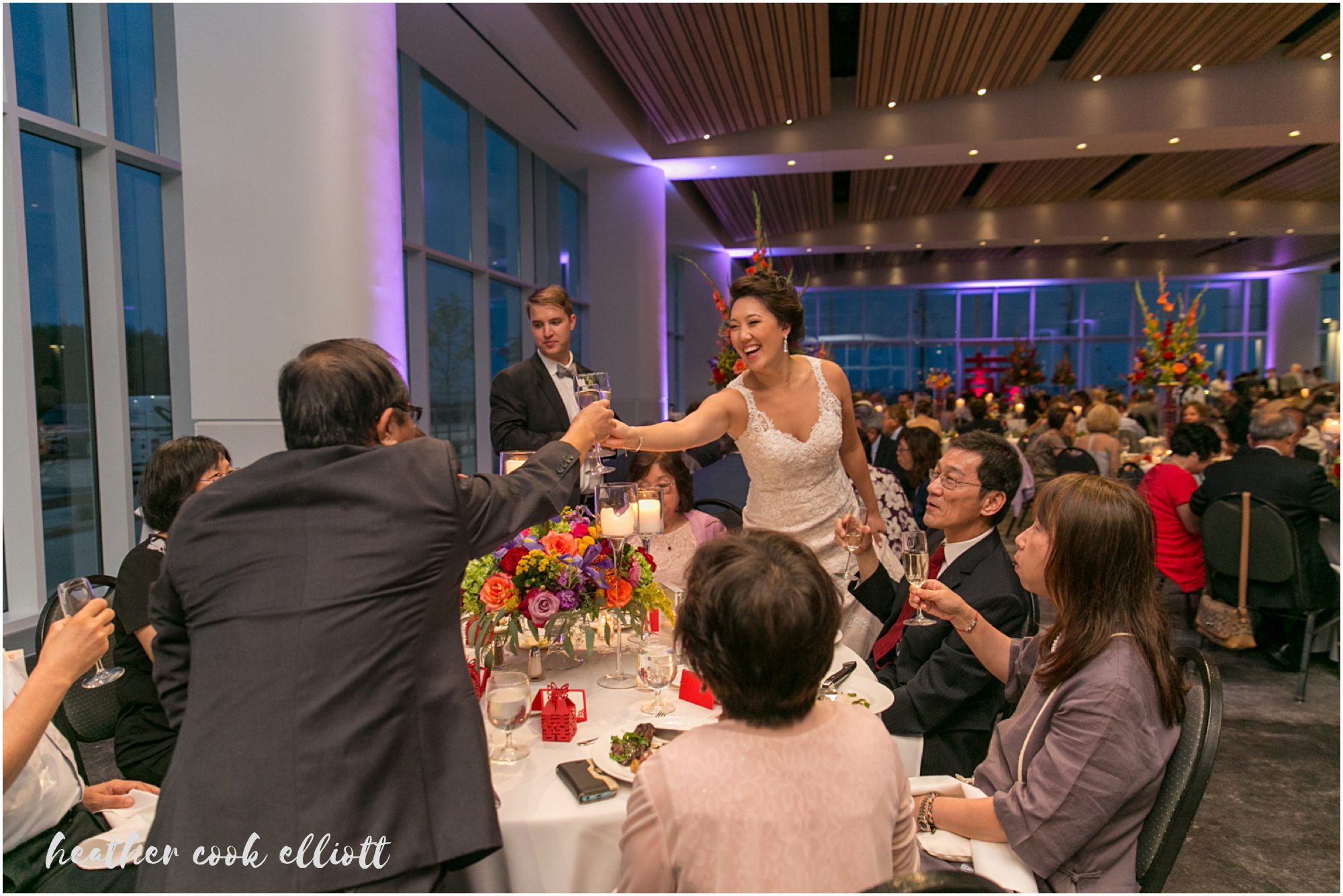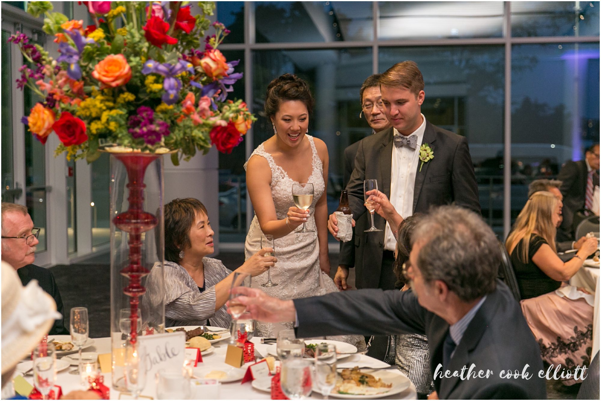 Emily & Jack’s lakeside wedding day was an entirely elegant affair with a laid back Sunday afternoon vibe. We loved all of their completely personal details – from their choice of officiant to their evening tea ceremony, Emily & Jack imbued their day with history, meaning, and loveliness. They started the day just steps from Milwaukee’s lakefront at the Westin and along with their small bridal party they made time to enjoy the lake views and Milwaukee’s cityscape before tying the knot at Discovery World’s new glassy Lakefront Pavilion. With an armful of the most colorful, gorgeous flowers we’ve seen all summer, Emily said I Do to Jack and Jack said I Do to Emily and from there the celebration erupted in earnest. As the sun set over the lake they danced and toasted guests at each table, cracking open custom Emily & Jack fortune cookies. Together with parents, aunts and uncles, they performed a traditional tea ceremony in front of a custom Double Happiness sculpture and every guest in attendance could be seen smiling from ear to ear. Emily & Jack – as the cookies wished us: May you always have good health, good luck and happiness!