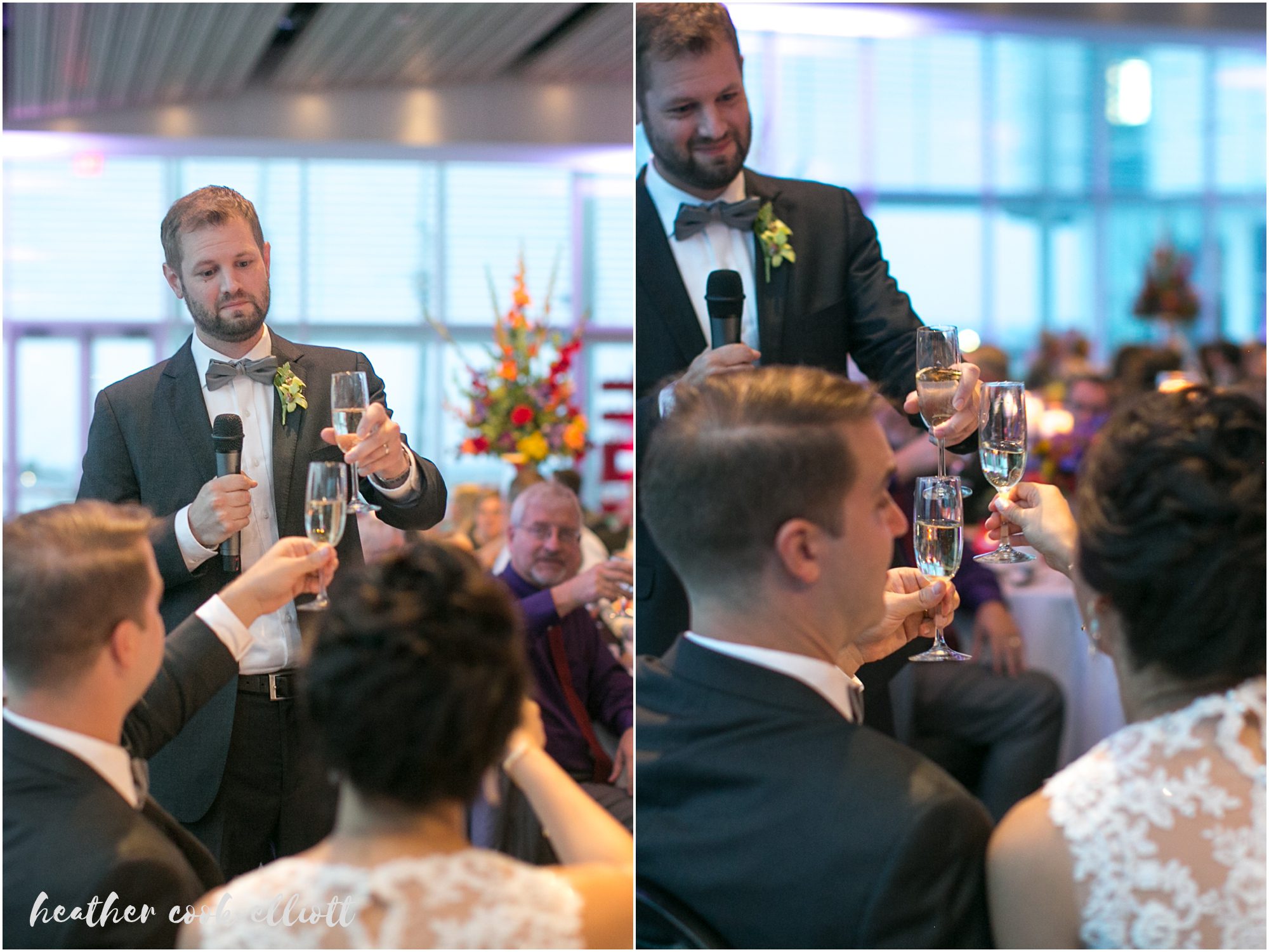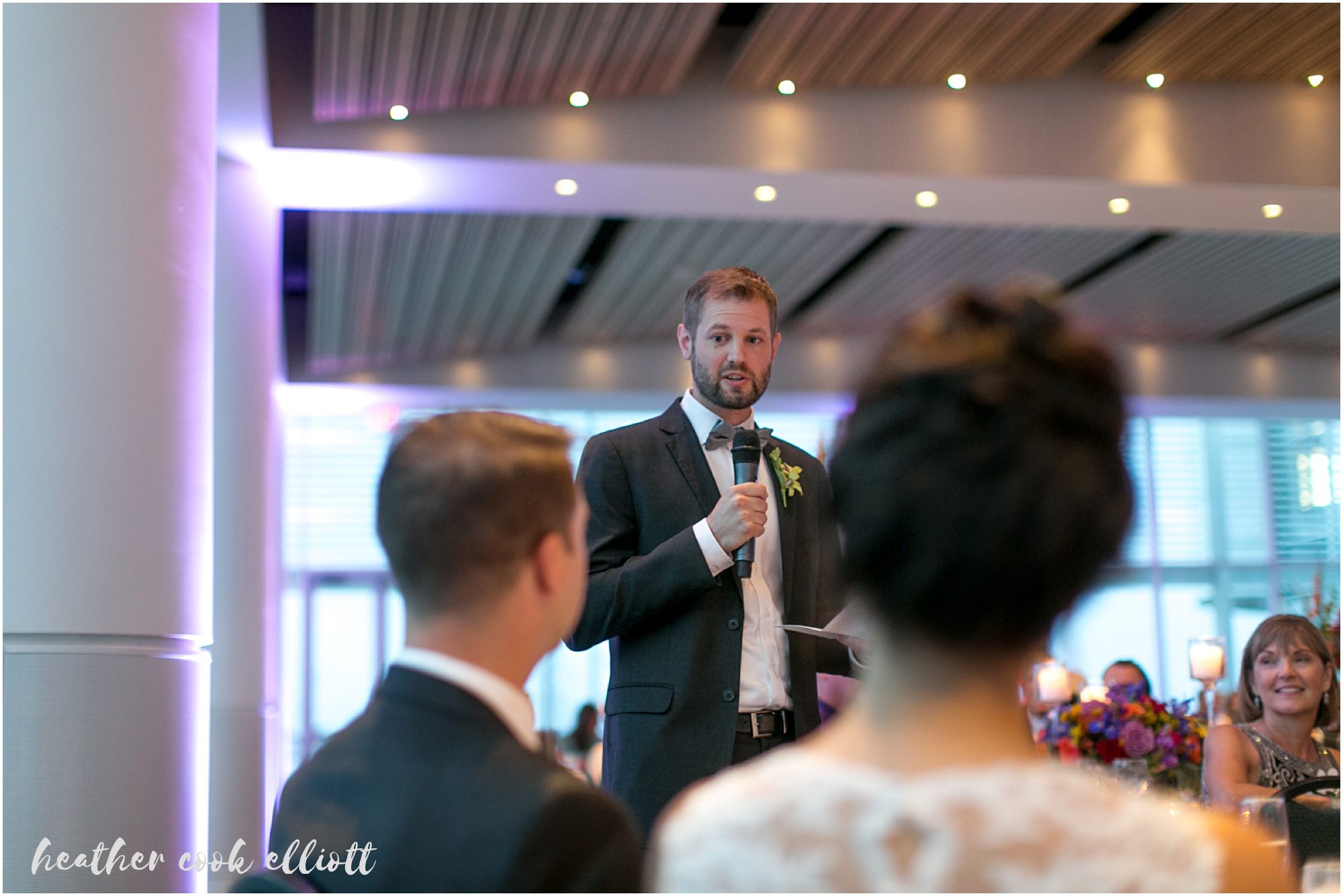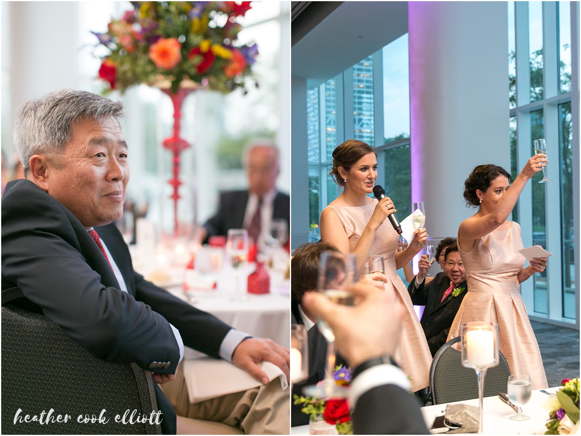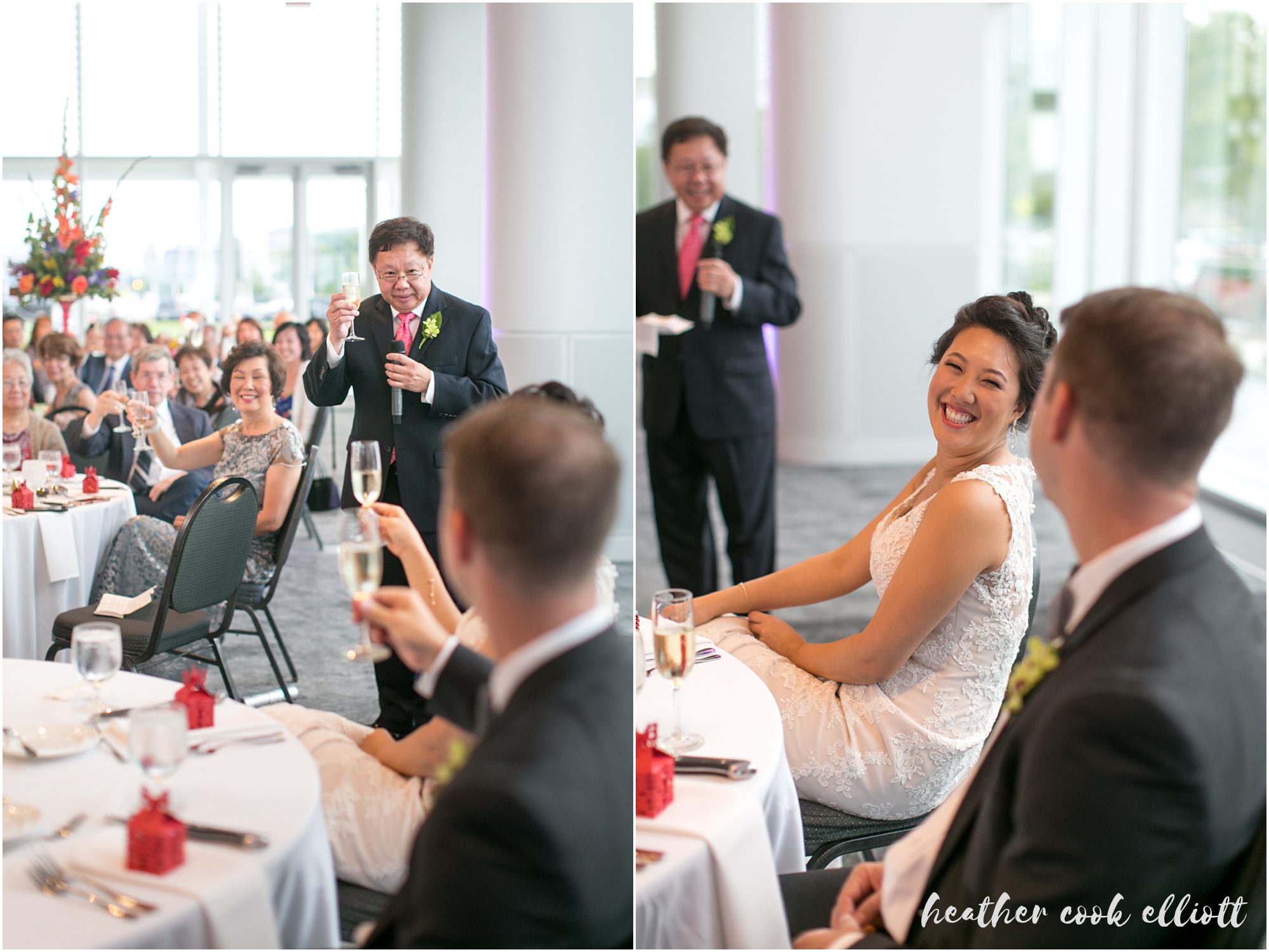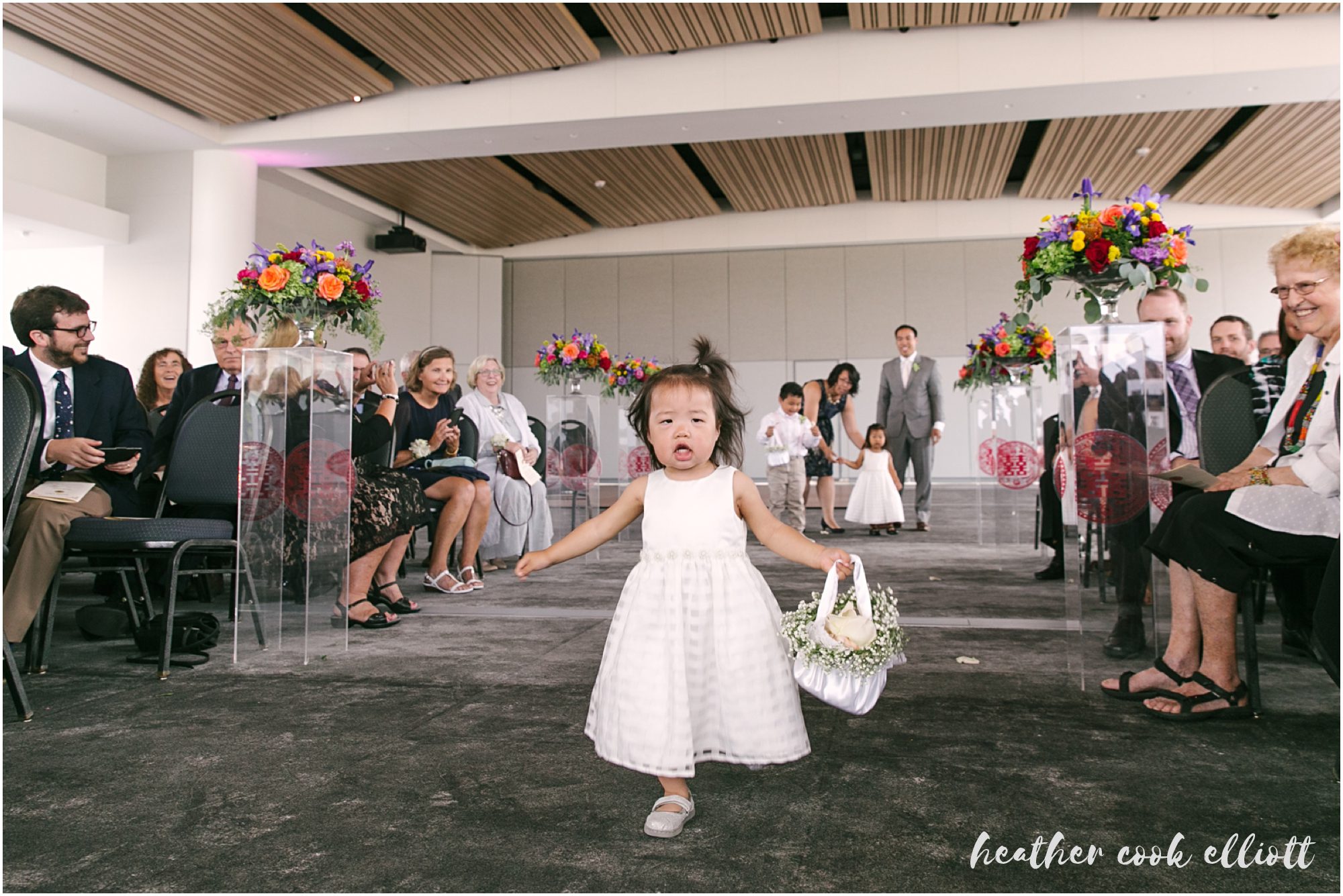 Emily & Jack’s lakeside wedding day was an entirely elegant affair with a laid back Sunday afternoon vibe. We loved all of their completely personal details – from their choice of officiant to their evening tea ceremony, Emily & Jack imbued their day with history, meaning, and loveliness. They started the day just steps from Milwaukee’s lakefront at the Westin and along with their small bridal party they made time to enjoy the lake views and Milwaukee’s cityscape before tying the knot at Discovery World’s new glassy Lakefront Pavilion. With an armful of the most colorful, gorgeous flowers we’ve seen all summer, Emily said I Do to Jack and Jack said I Do to Emily and from there the celebration erupted in earnest. As the sun set over the lake they danced and toasted guests at each table, cracking open custom Emily & Jack fortune cookies. Together with parents, aunts and uncles, they performed a traditional tea ceremony in front of a custom Double Happiness sculpture and every guest in attendance could be seen smiling from ear to ear. Emily & Jack – as the cookies wished us: May you always have good health, good luck and happiness!
