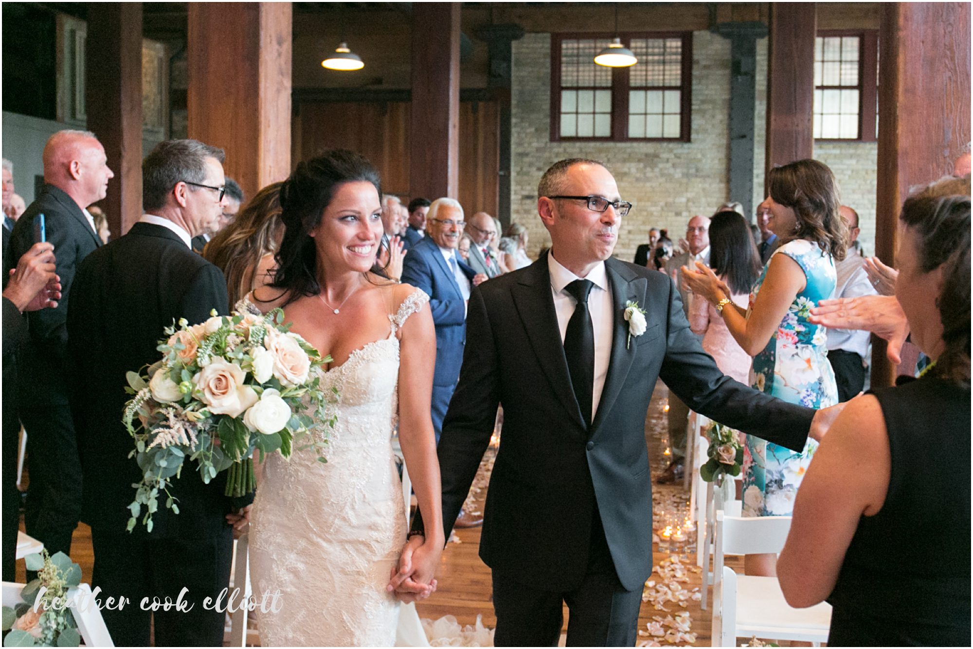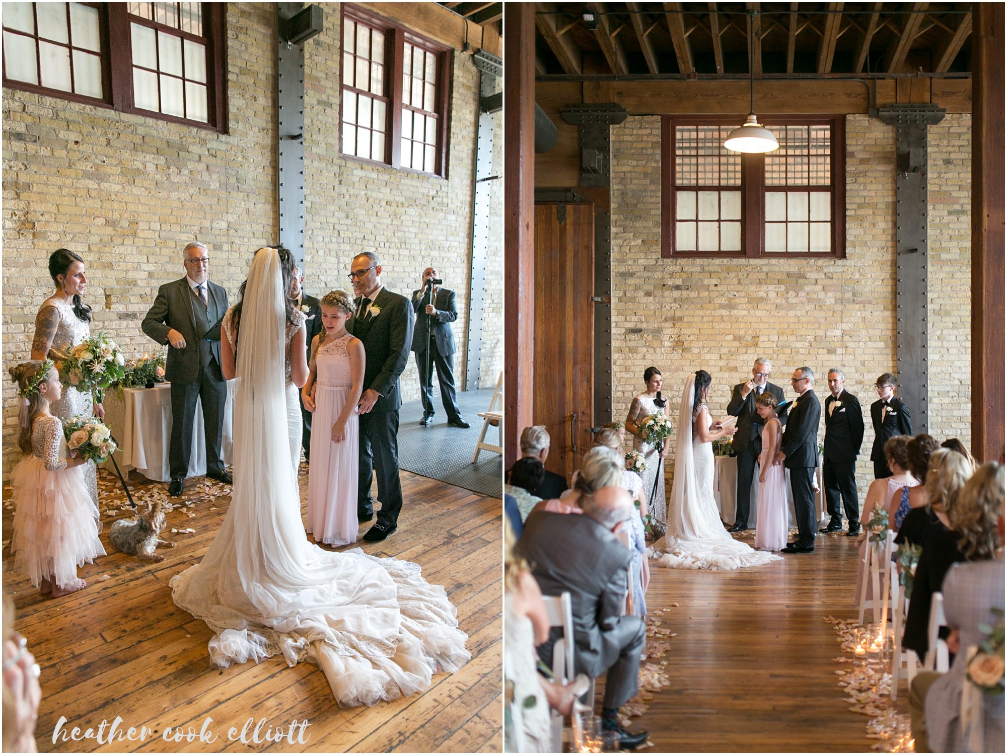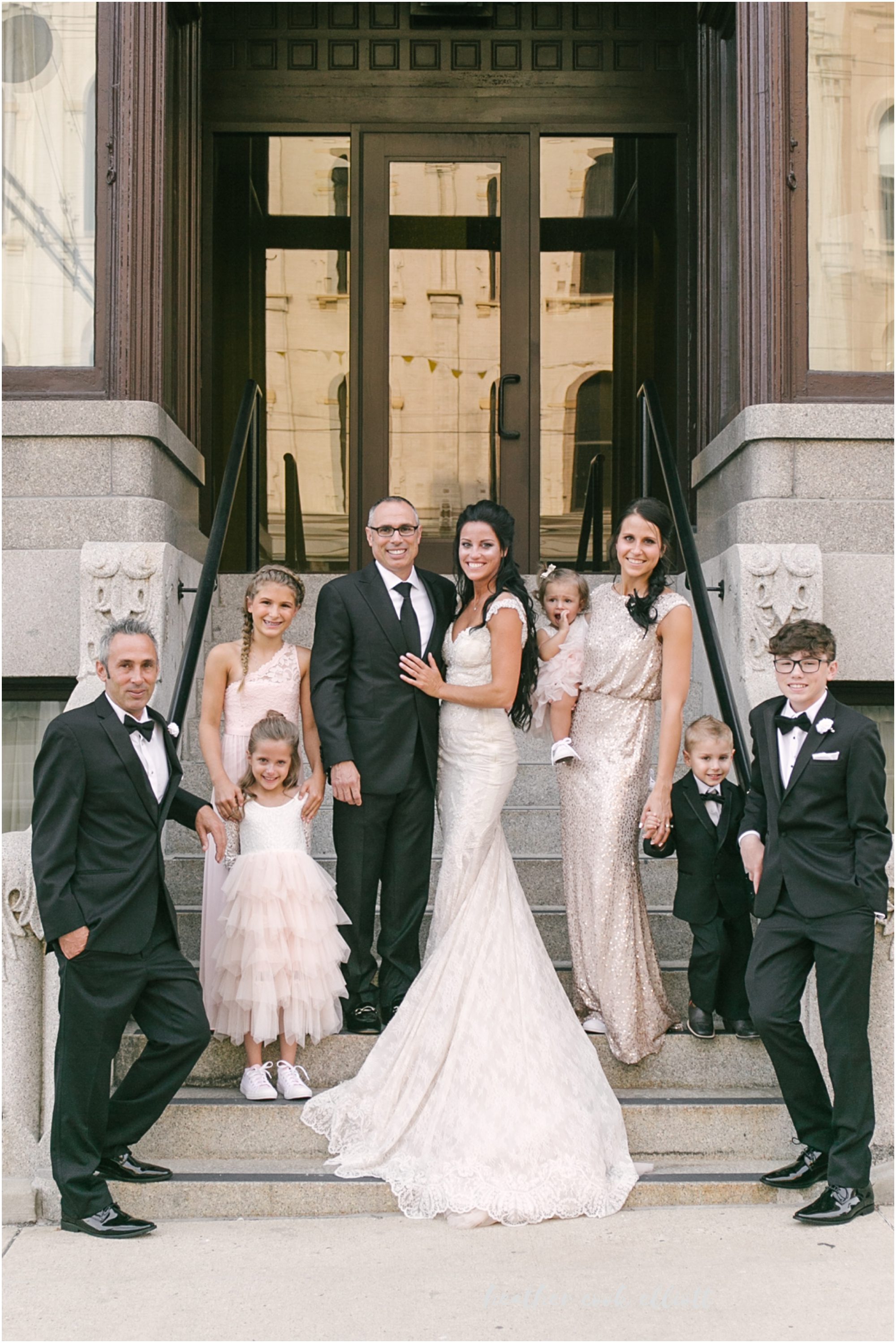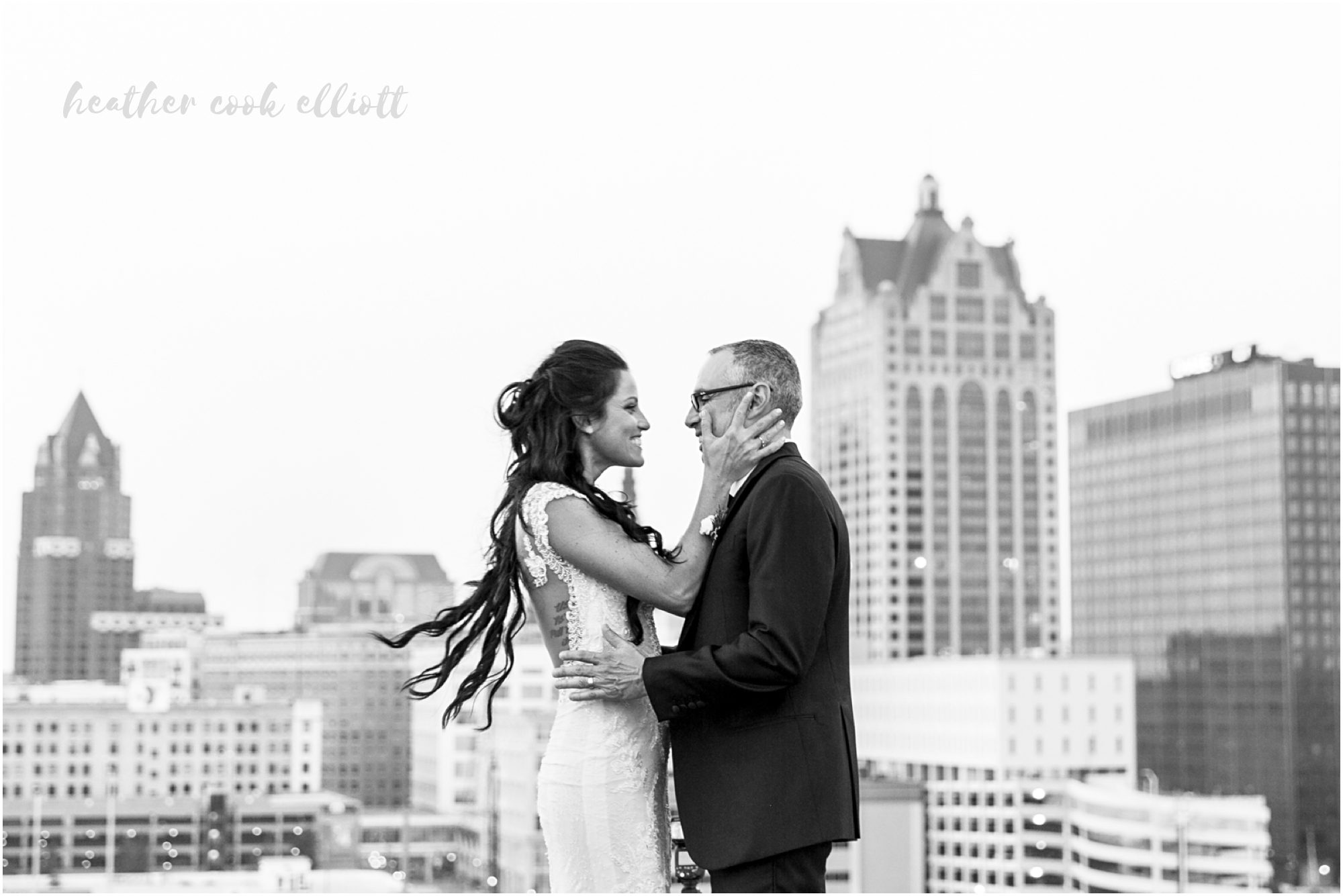 Mindy & Dennis are adventurous, fun, family-orientated and all out delightful. With their tiny, adored dog and their penchant for the tasty things in life the two of them know how to host a party and even better, they know how to create an atmosphere of love and happiness for those that make them feel loved and happy. And so surrounded by family in one of their favorite cities on the planet, Mindy and Dennis said I Do to each other and in a defining moment that told us where Mindy’s heart is she said I Do to Dennis’ daughter, too. I Do to travel and adventure, I Do to staying in and being a family, I Do to whatever comes at the 3 of them. For their part Mindy and Dennis made their wedding weekend personal and personalized and we loved all of their casually elegant and sometimes quirky details. From the most romantic flowers to barefoot sandals + “Mrs” emblazoned Converse, from Milwaukee-centric foods to dancing on the roof overlooking the skyline, Mindy & Dennis had the time of their lives. And for their part the families of Mindy and Dennis came to together in spectacular fashion – lifting them up with their toasts, smiles, dancing and best wishes. Cheers to Mindy & Dennis & Matea ~ Cheers to Love!