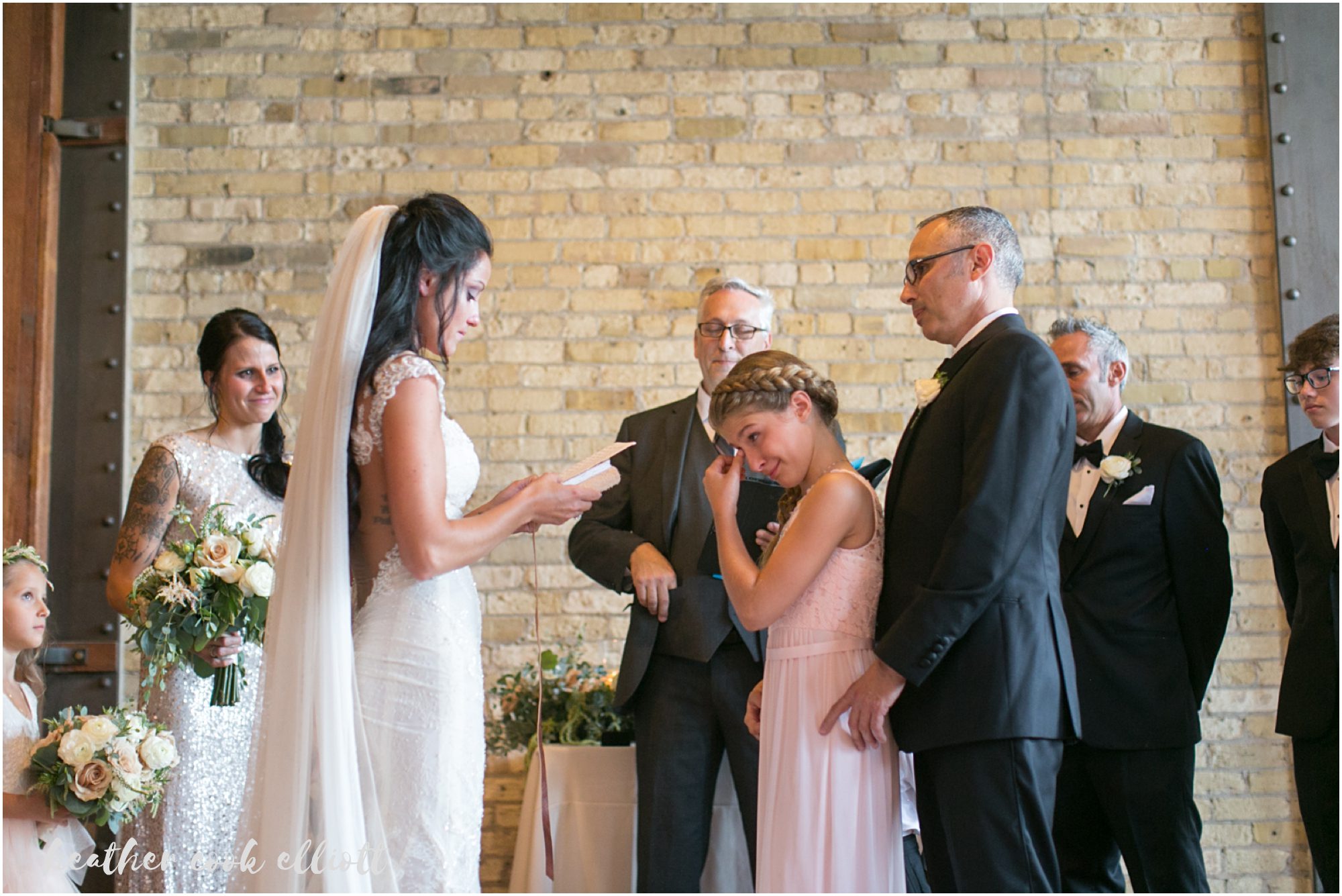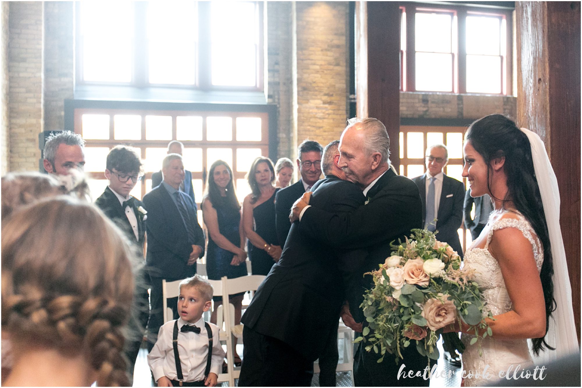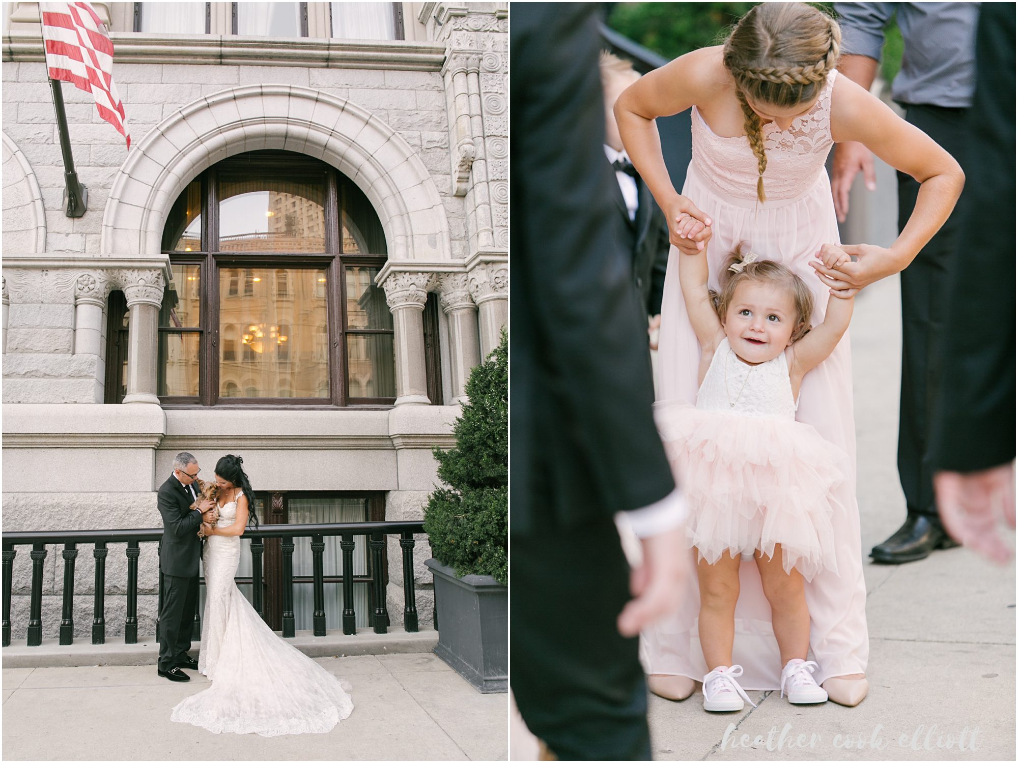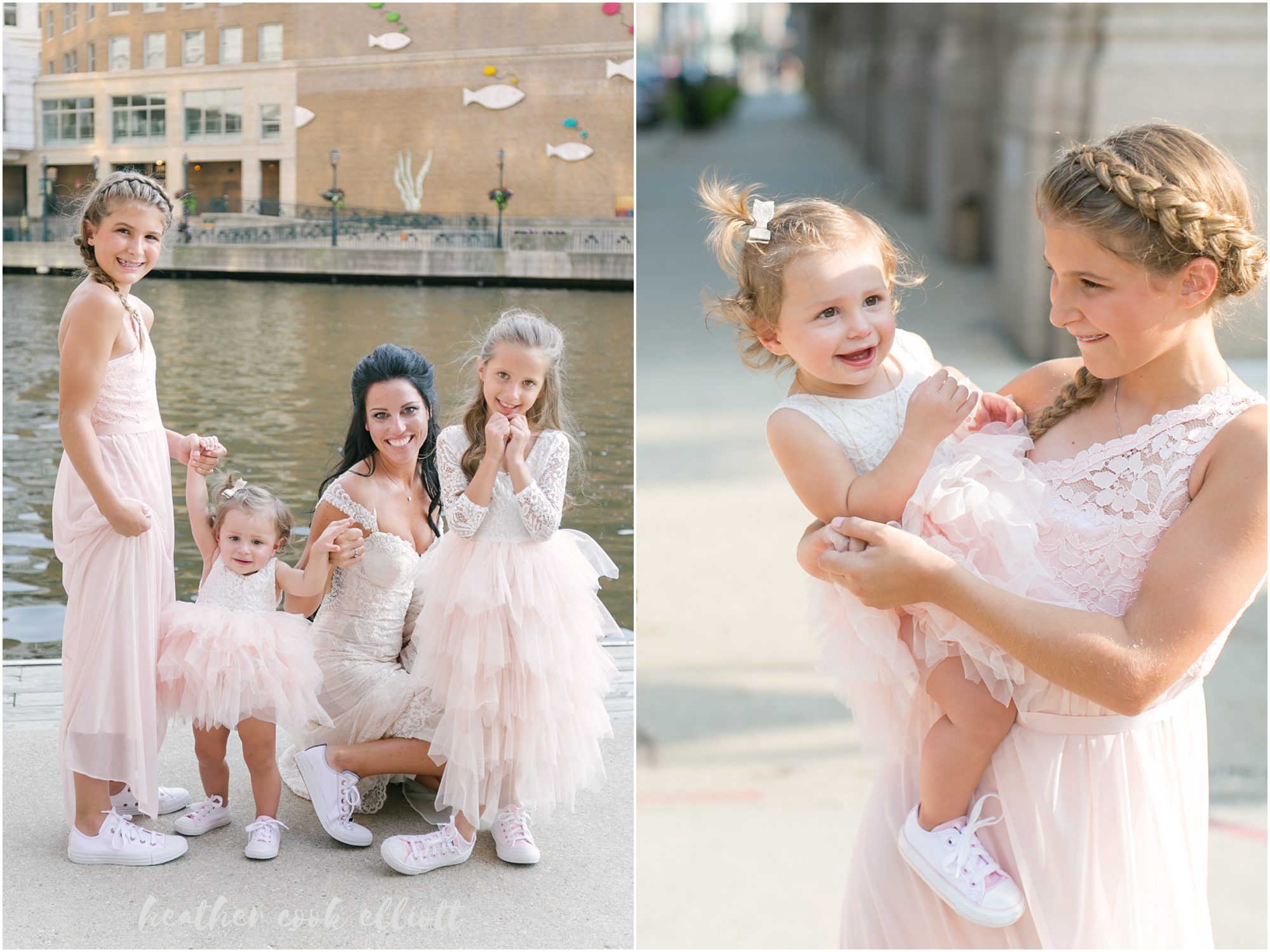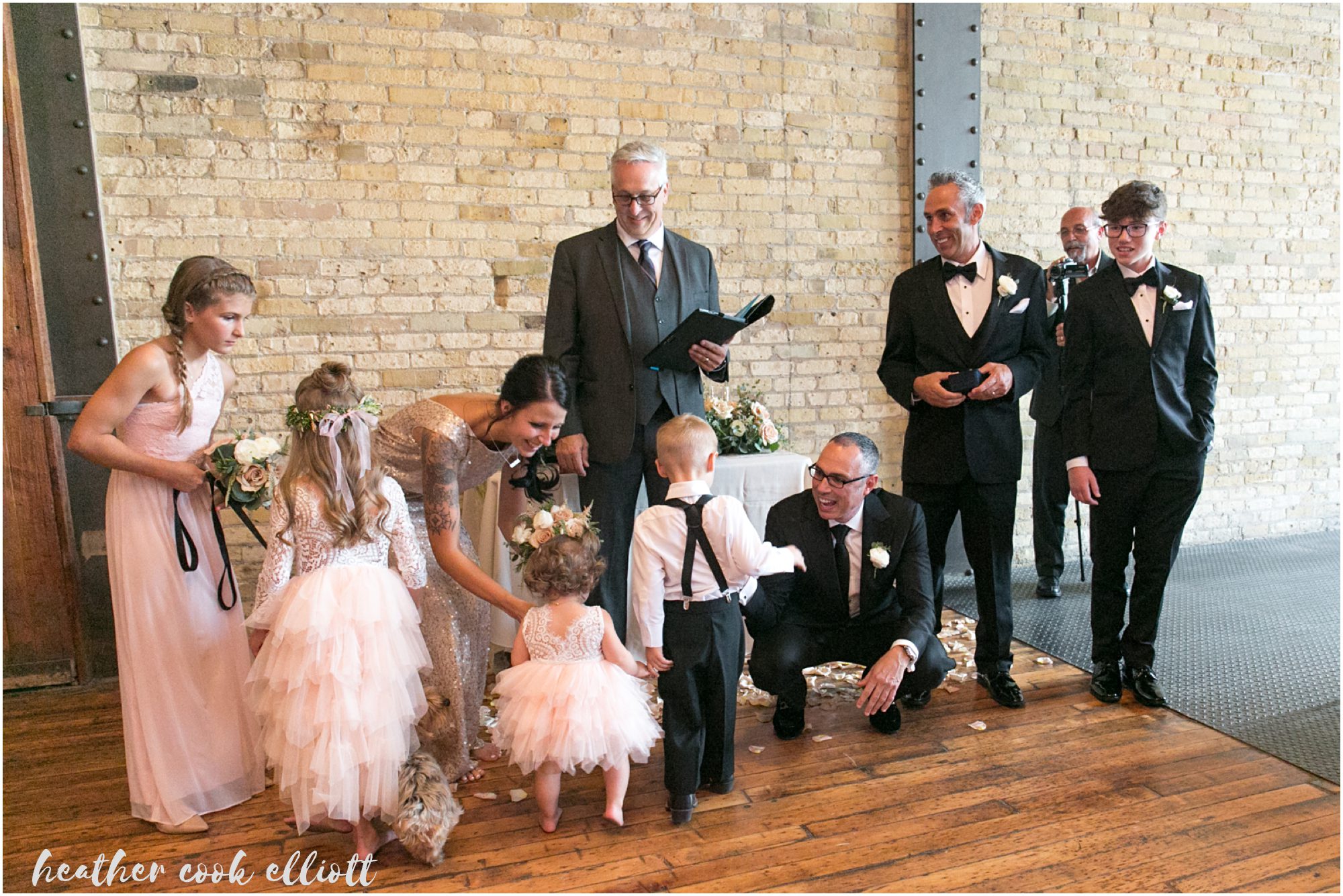 Mindy & Dennis are adventurous, fun, family-orientated and all out delightful. With their tiny, adored dog and their penchant for the tasty things in life the two of them know how to host a party and even better, they know how to create an atmosphere of love and happiness for those that make them feel loved and happy. And so surrounded by family in one of their favorite cities on the planet, Mindy and Dennis said I Do to each other and in a defining moment that told us where Mindy’s heart is she said I Do to Dennis’ daughter, too. I Do to travel and adventure, I Do to staying in and being a family, I Do to whatever comes at the 3 of them. For their part Mindy and Dennis made their wedding weekend personal and personalized and we loved all of their casually elegant and sometimes quirky details. From the most romantic flowers to barefoot sandals + “Mrs” emblazoned Converse, from Milwaukee-centric foods to dancing on the roof overlooking the skyline, Mindy & Dennis had the time of their lives. And for their part the families of Mindy and Dennis came to together in spectacular fashion – lifting them up with their toasts, smiles, dancing and best wishes. Cheers to Mindy & Dennis & Matea ~ Cheers to Love!