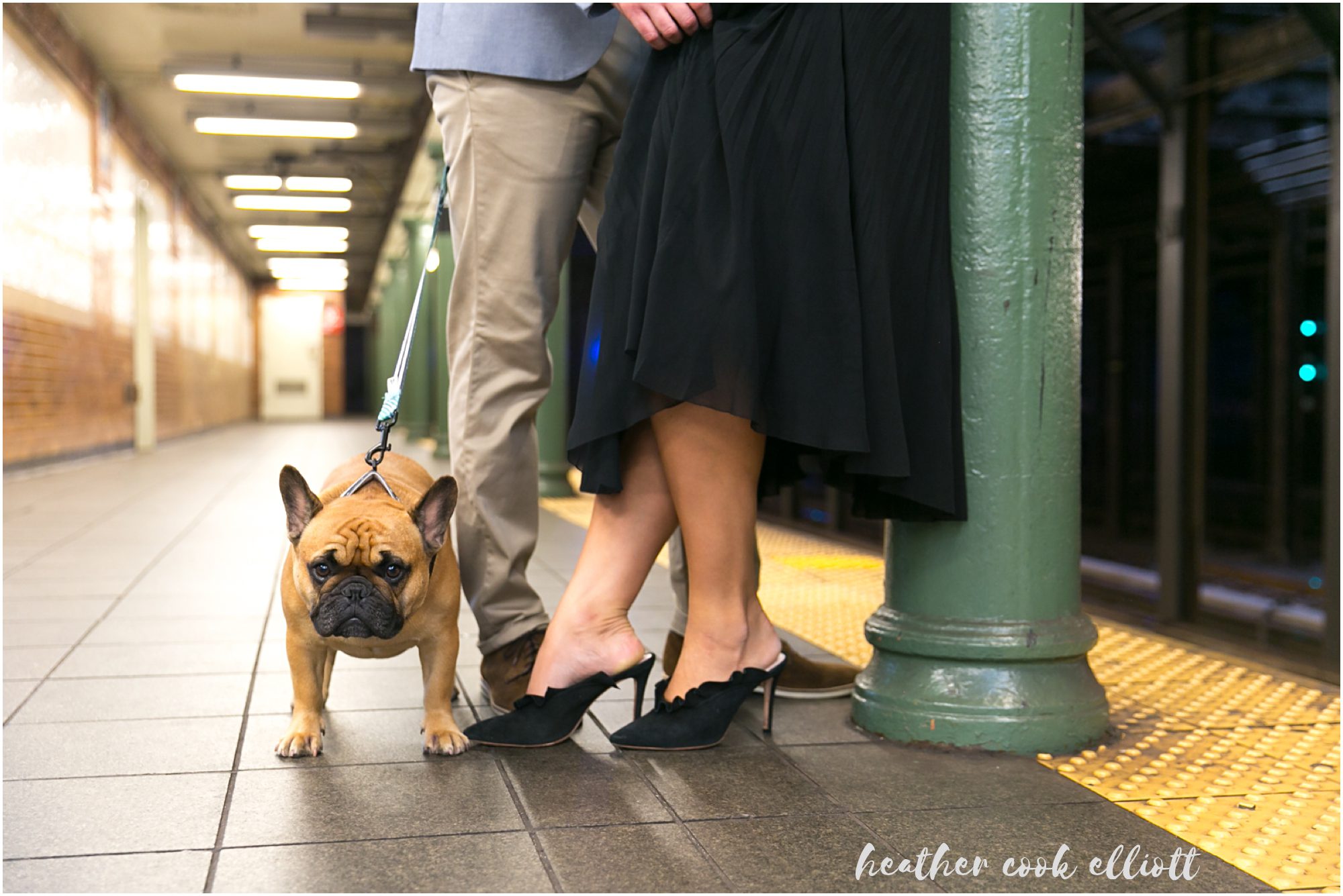 Molly & Jason are two midwesterners making NYC their home – a home filled with the energy of the city, the contentment of partnership and the love of a lifetime. They share their days not just with each other but with their dog Leon, an adorable pup who’s favorite place is wherever Molly and Jason are. He’s a city dog, only a little shy of subway sounds and passing cabs, but thrilled to be in Central Park during off leash hours on this sunny morning in Molly & Jason’s neighborhood. Sadly, he won’t be at their wedding though but for good reason. Molly & Jason will tie the knot in less than 2 weeks in Mexico, in sandy & spectacular contrast to their everyday. Leon will wait it out back home but I know Molly & Jason are looking forward to gathering with their families and friends from all over, many from Wisconsin where they grew up. And during their destination wedding I am certain many stories about love and marriage will be told but on this day we focused on their engagement story. And so the route of our session retraced the path of many strolls previously taken, but most importantly the one where he asked that simple, glorious, transformative question, the question that would determine the rest of their lives. The question that was answered with an emphatic YES. So today I invite you to say yes, too. Yes to New York in the fall, yes to a French Bulldog, yes to twirling in the park. Yes to Love.