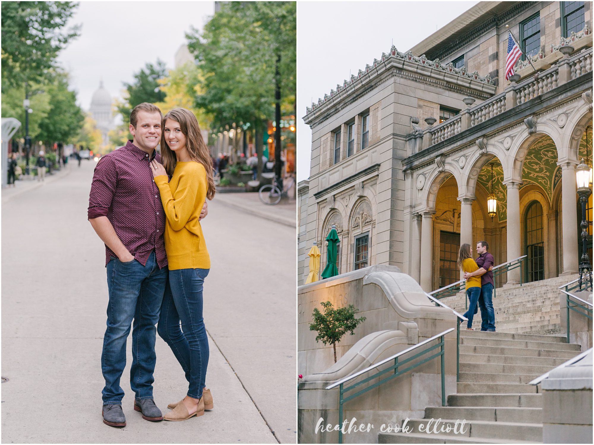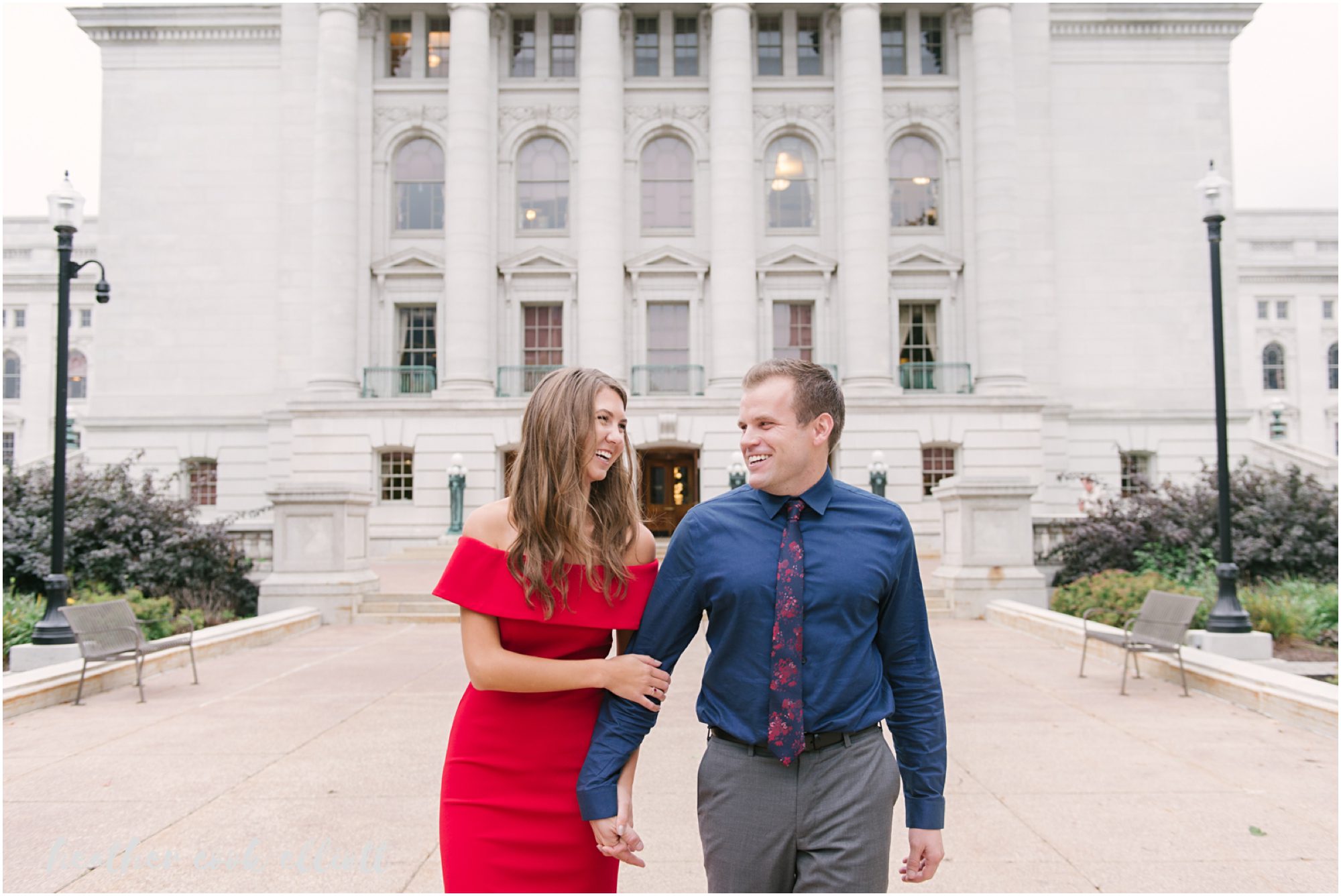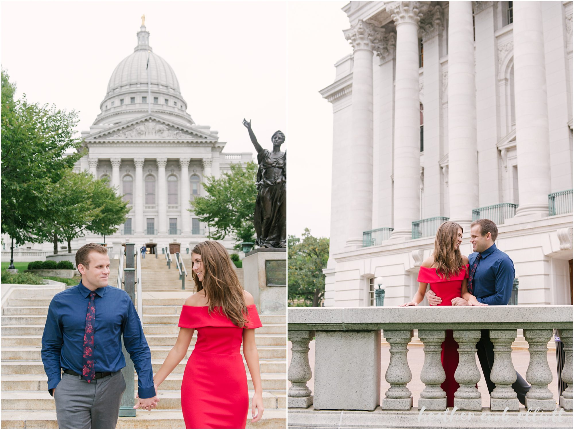 Katelyn & Josh have personalities that draw you in, make you smile and really, just make you happy that people like these two exist in the world. They are both nurses – which, in my experience, tells us that they are big hearted and kind – but to hang out with them is to know what real friendship looks like and how friendship is perhaps the better part of love’s foundation. They’ll be married on New Year’s Eve and after seeing their colorful, outstandingly fun choices for clothes and locations for their Madison engagement session you better believe we are so very excited to be there for them. So grab a glass of champagne like Katelyn & Josh and feast your eyes on this classic Madison engagement session. It’s too lovely to miss.