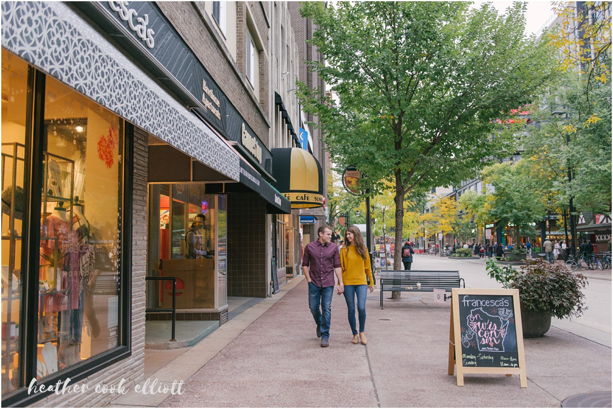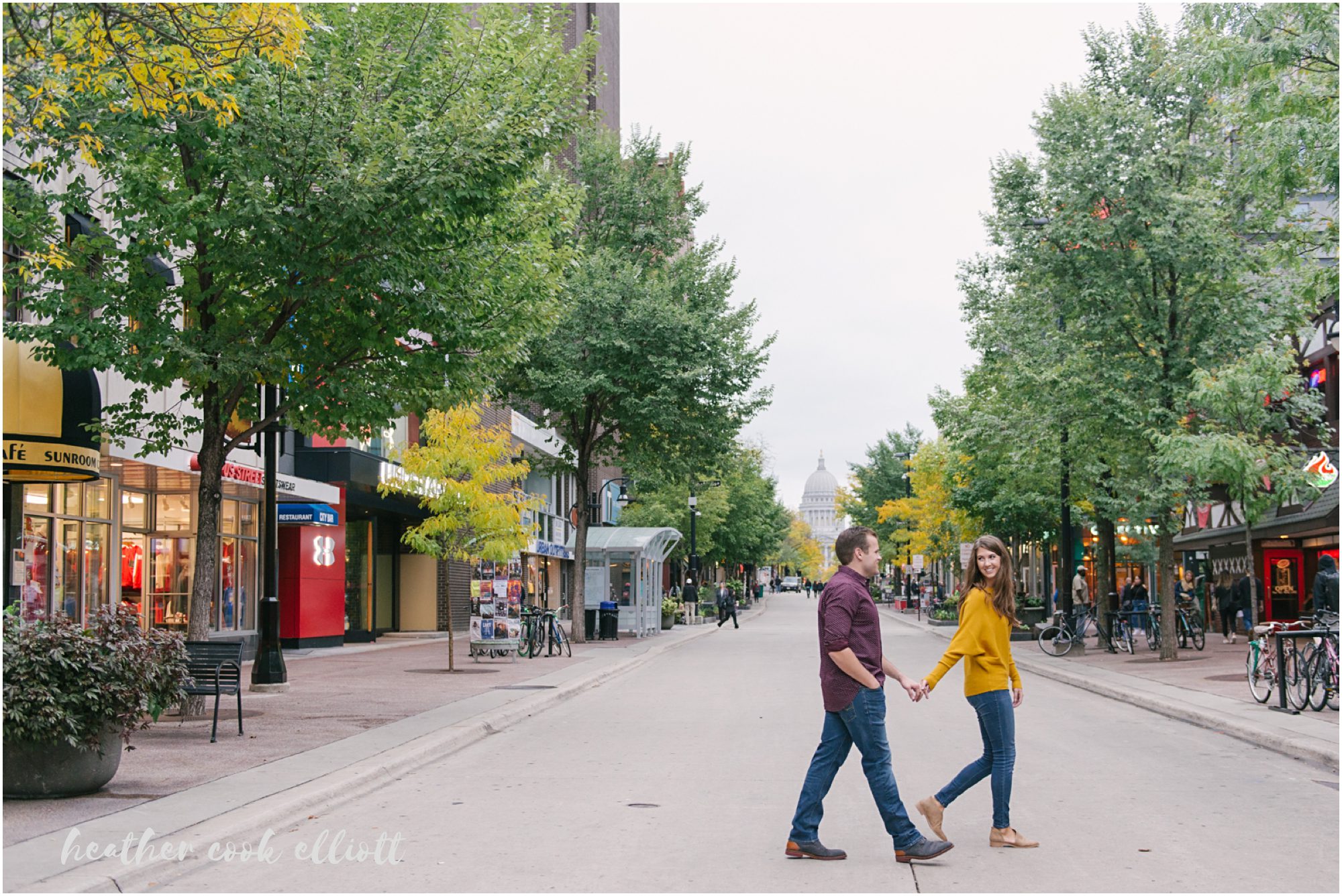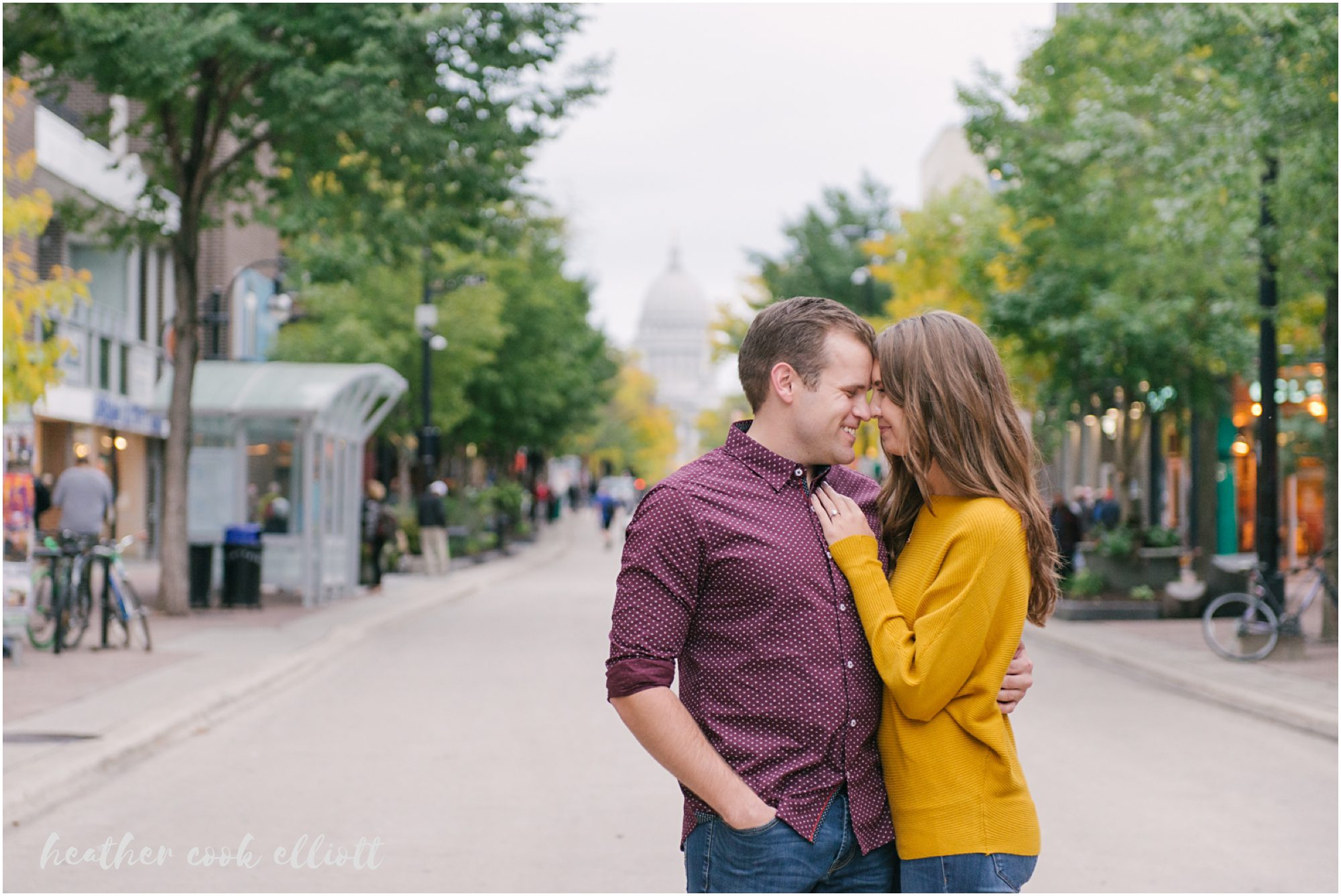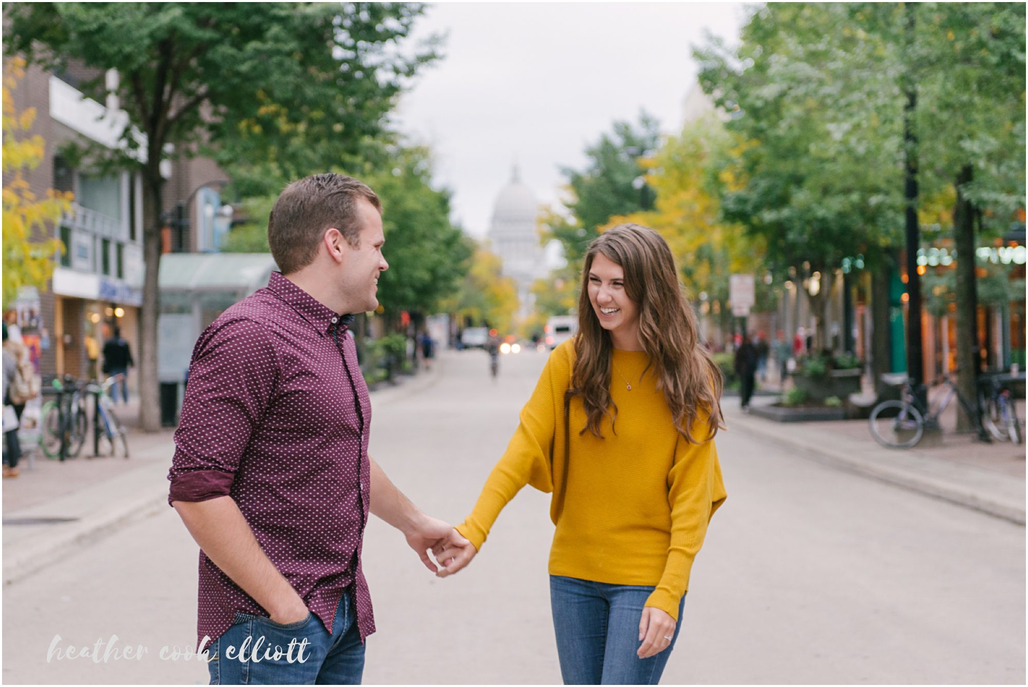 Katelyn & Josh have personalities that draw you in, make you smile and really, just make you happy that people like these two exist in the world. They are both nurses – which, in my experience, tells us that they are big hearted and kind – but to hang out with them is to know what real friendship looks like and how friendship is perhaps the better part of love’s foundation. They’ll be married on New Year’s Eve and after seeing their colorful, outstandingly fun choices for clothes and locations for their Madison engagement session you better believe we are so very excited to be there for them. So grab a glass of champagne like Katelyn & Josh and feast your eyes on this classic Madison engagement session. It’s too lovely to miss.