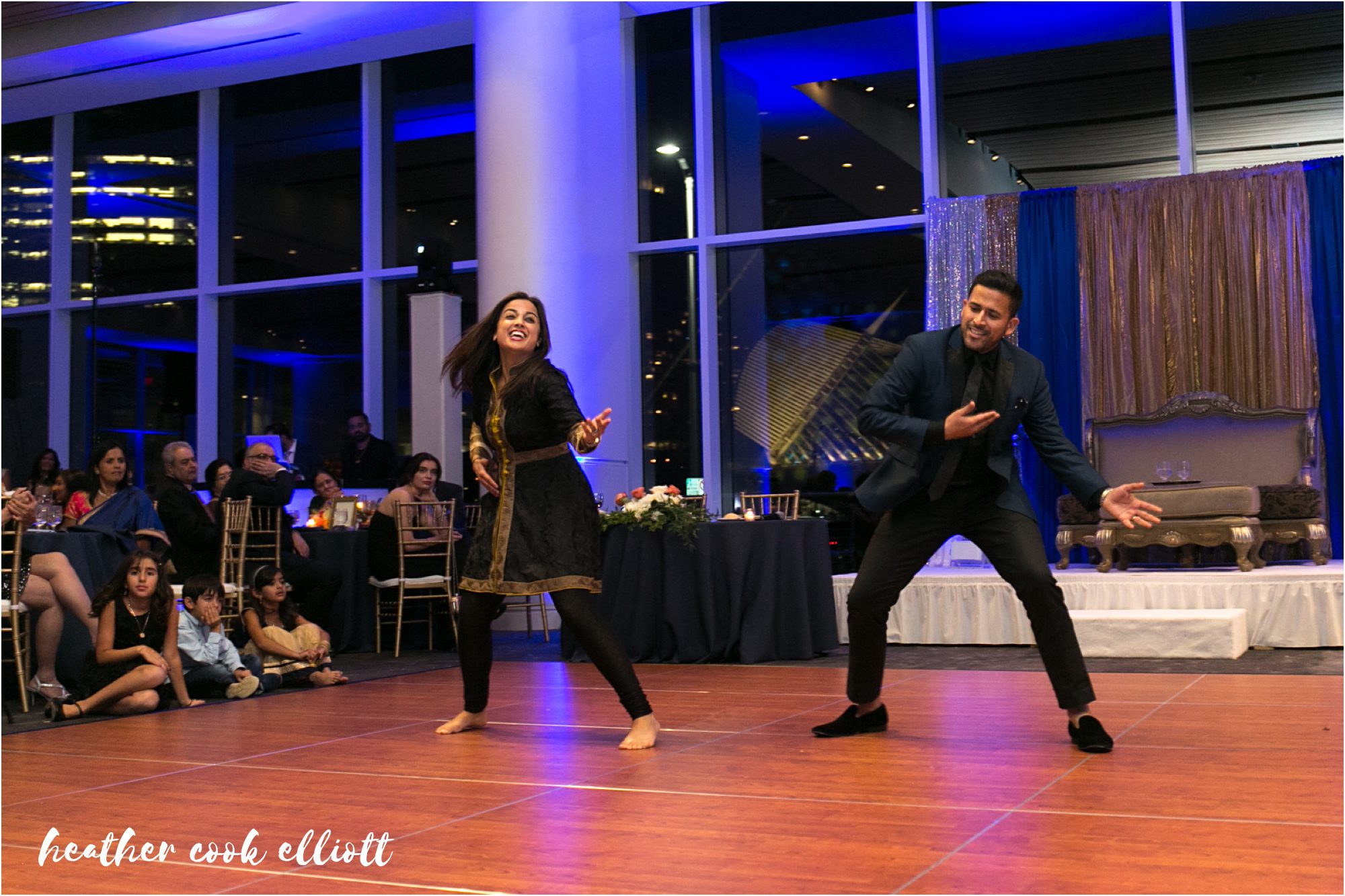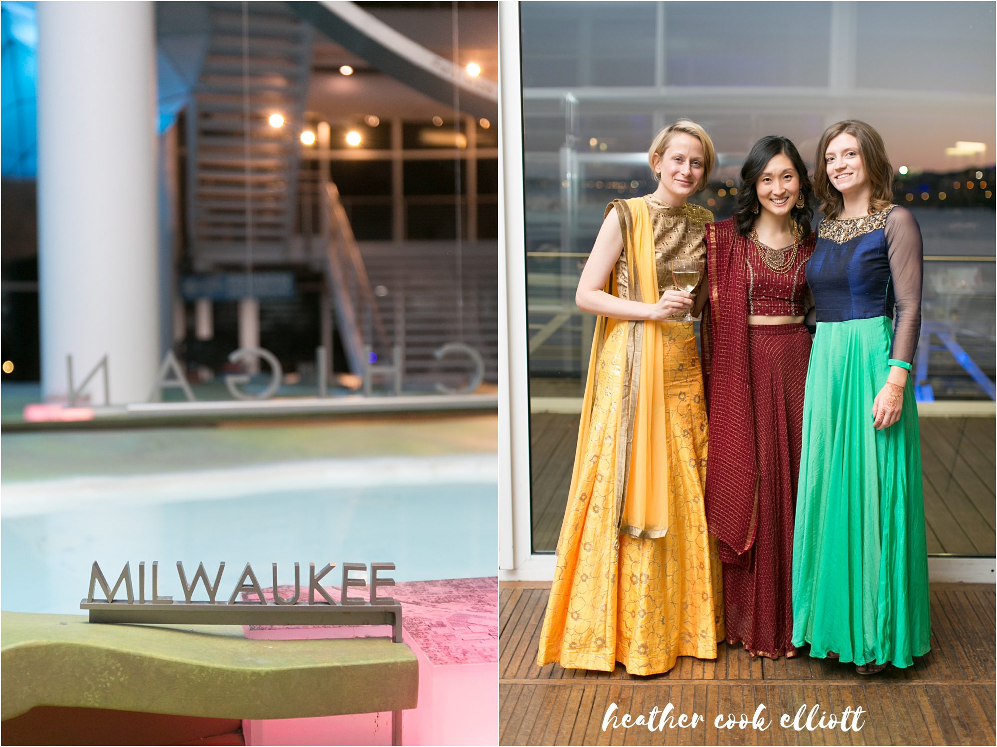 One of our favorite parts about Indian weddings is the near total day to night transformation that takes place. Joban and Sarath had tied the knot under sunny skies mixed with tiny moments of snow, Sarath walking barefoot on the Discovery World docks to enjoy the last moments of their wedding ceremony – his shoes still hidden somewhere inside. But as the sun set over Lake Michigan Joban & Sarath returned to Discovery World and the reds and pinks so brilliantly marking their day turned to deep blues and gold for night. We loved the spirit with which their guests and family addressed them, offering kind words about their passion for medicine, their capacity for friendship, their deep love and commitment to family. And oh how they performed for them, too! The dance floor was full all night from Bollywood inspired dance routines featuring sometimes a couple, and sometimes many pair of dancers, and sometimes, Joban herself. Joban and Sarath, thank you for inviting us into your wedding plans and your life. Cheers to love and laughter, great food and happiness so full you can’t help but dance; Cheers to Joban and Sarath ~