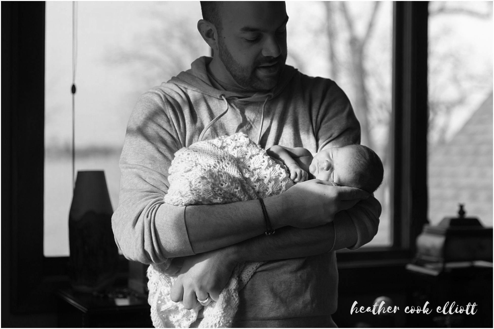 Sarah & David are romantics. They love books and cozy evenings in, crochet projects and time spent reveling in the sweet deliciousness of family. They are warm hearted, big smilers, and all around great parents, too. I first met them a few years ago when they were planning their Milwaukee wedding and they surprised us with their combined epic sweetness. He proposed at his family lake house, which is also where she dressed for their wedding and then where I met them again to meet their first born daughter Lucy. So my delight was real and deep when they invited me back to meet their newest family addition: Ambrose. As I photographed them in lovingly crocheted-by-dad-and-mom blankets & clothes, something about it also being Christmas time filled my heart with gladness. In what I think of as the most hopeful season for Christians I was struck by the delicate skin of Ambrose, his newborn fragility, his very humanity, the unlikely miracle of life and how a baby can remind us of bigger things. Ambrose may be little but on this day his very presence is a reminder to cherish connections with other people, to take care of each other, to value a snuggle, a lullaby, a deep breath. Welcome to this world Ambrose, you are loved ~