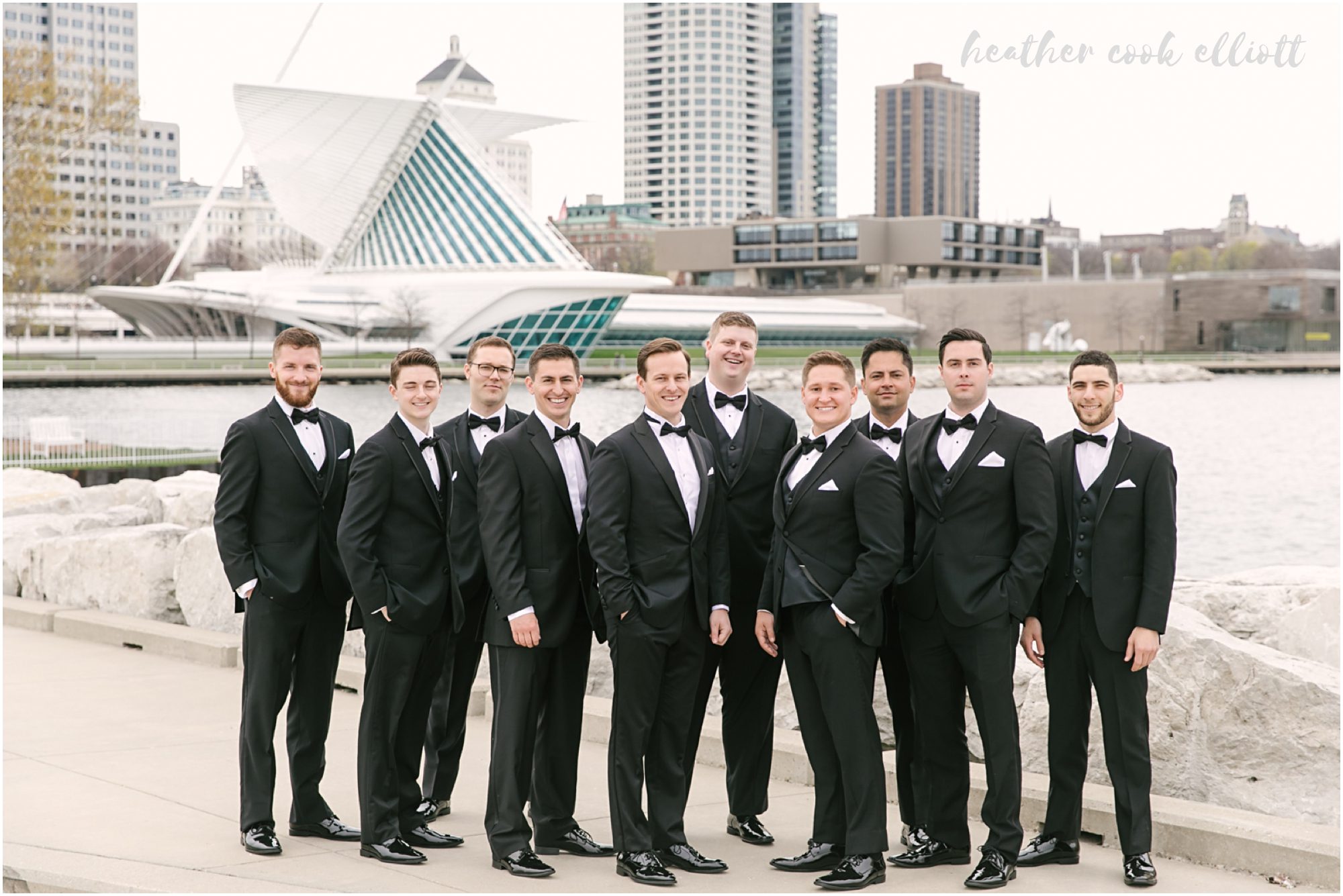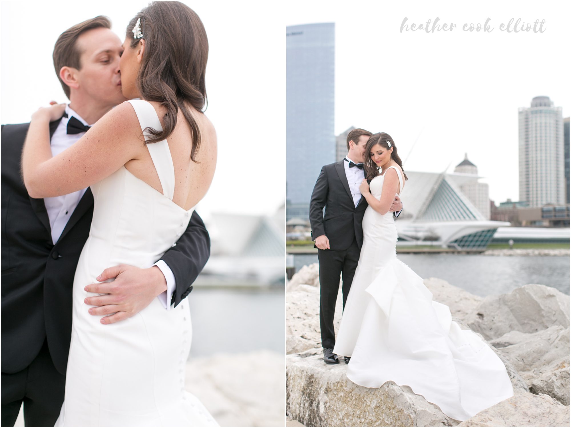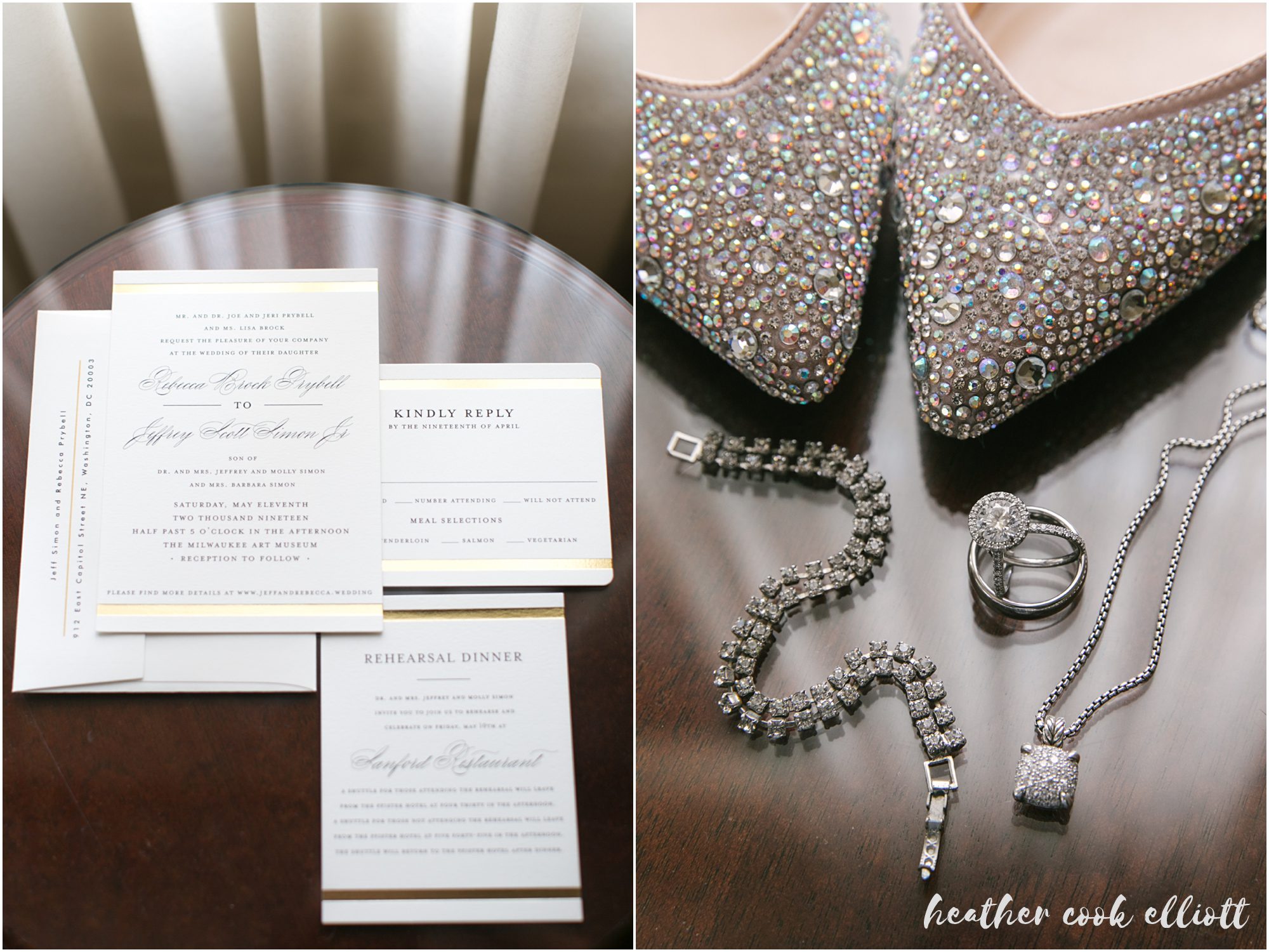 These words keep rolling over in my head every time I think about Rebecca & Jeff’s Milwaukee Art Museum wedding this past May. From what they wore, to where they celebrated, and all through the experience they created for their guests and extensive families, everything about the wedding weekend was exactly this: Timeless, lovely & classic. I loved the modern gown Rebecca wore, architectural in it’s simplicity and the perfect pairing to Jeff’s custom classic tux, even when he traded his ceremony jacket for something just edging into “more fun” with its deep blue color. They brought a bit of sparkle and a lot of champagne to the Art Museum, filling Windhover Hall with the danceable sounds of not only North Coast Orchestra, but the talents of their groomsmen – one playing both blues guitar and drums with the band and another breaking open hearts with his reading-turned-rendition of Mirrors by Justin Timberlake. But really the story of Rebecca and Jeff can’t be told without this detail: on their wedding day Rebecca & Jeff were Together, drinking in the sight of each other, holding hands, wrapped up in each other literally and figuratively, no matter what was happening there was really just the two of them. And that, right there, that bodes well for the future.