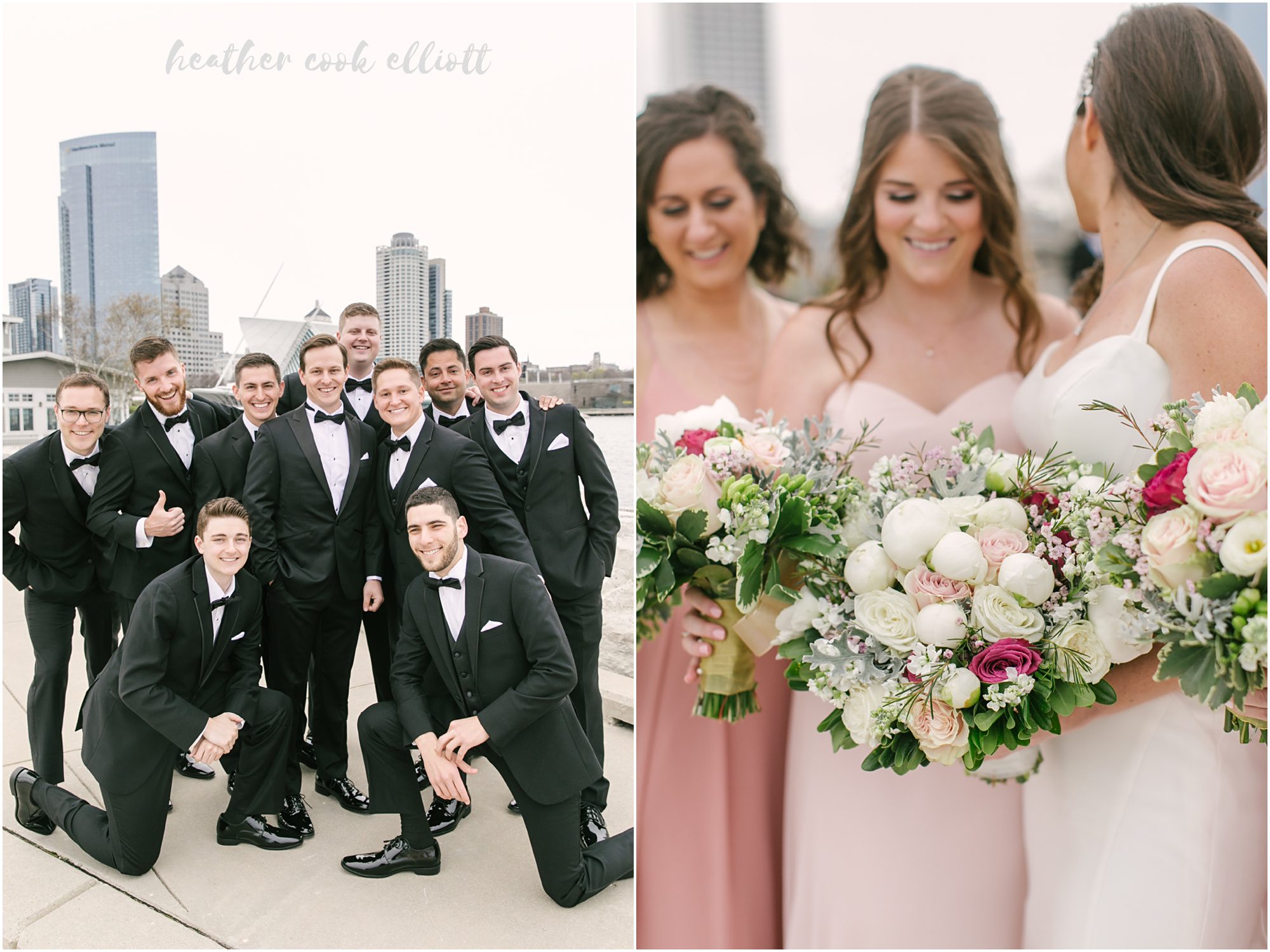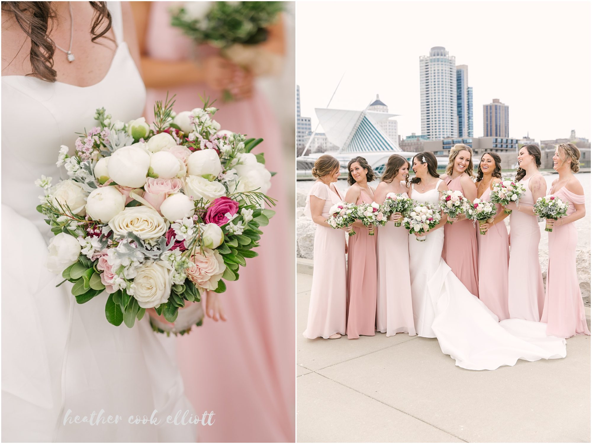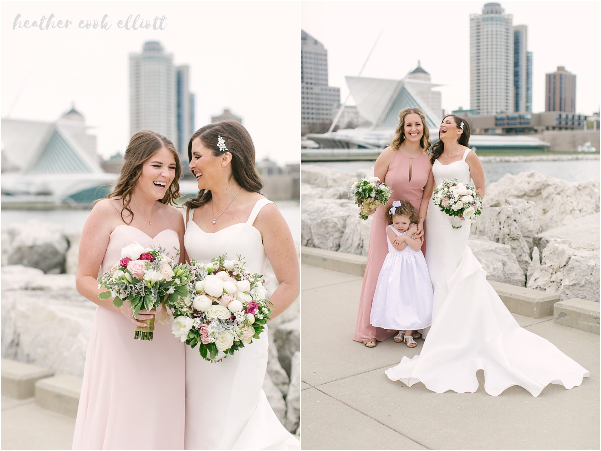 These words keep rolling over in my head every time I think about Rebecca & Jeff’s Milwaukee Art Museum wedding this past May. From what they wore, to where they celebrated, and all through the experience they created for their guests and extensive families, everything about the wedding weekend was exactly this: Timeless, lovely & classic. I loved the modern gown Rebecca wore, architectural in it’s simplicity and the perfect pairing to Jeff’s custom classic tux, even when he traded his ceremony jacket for something just edging into “more fun” with its deep blue color. They brought a bit of sparkle and a lot of champagne to the Art Museum, filling Windhover Hall with the danceable sounds of not only North Coast Orchestra, but the talents of their groomsmen – one playing both blues guitar and drums with the band and another breaking open hearts with his reading-turned-rendition of Mirrors by Justin Timberlake. But really the story of Rebecca and Jeff can’t be told without this detail: on their wedding day Rebecca & Jeff were Together, drinking in the sight of each other, holding hands, wrapped up in each other literally and figuratively, no matter what was happening there was really just the two of them. And that, right there, that bodes well for the future.