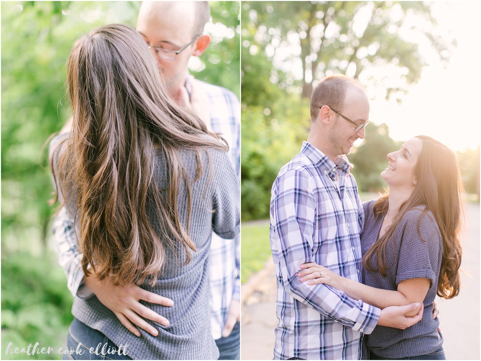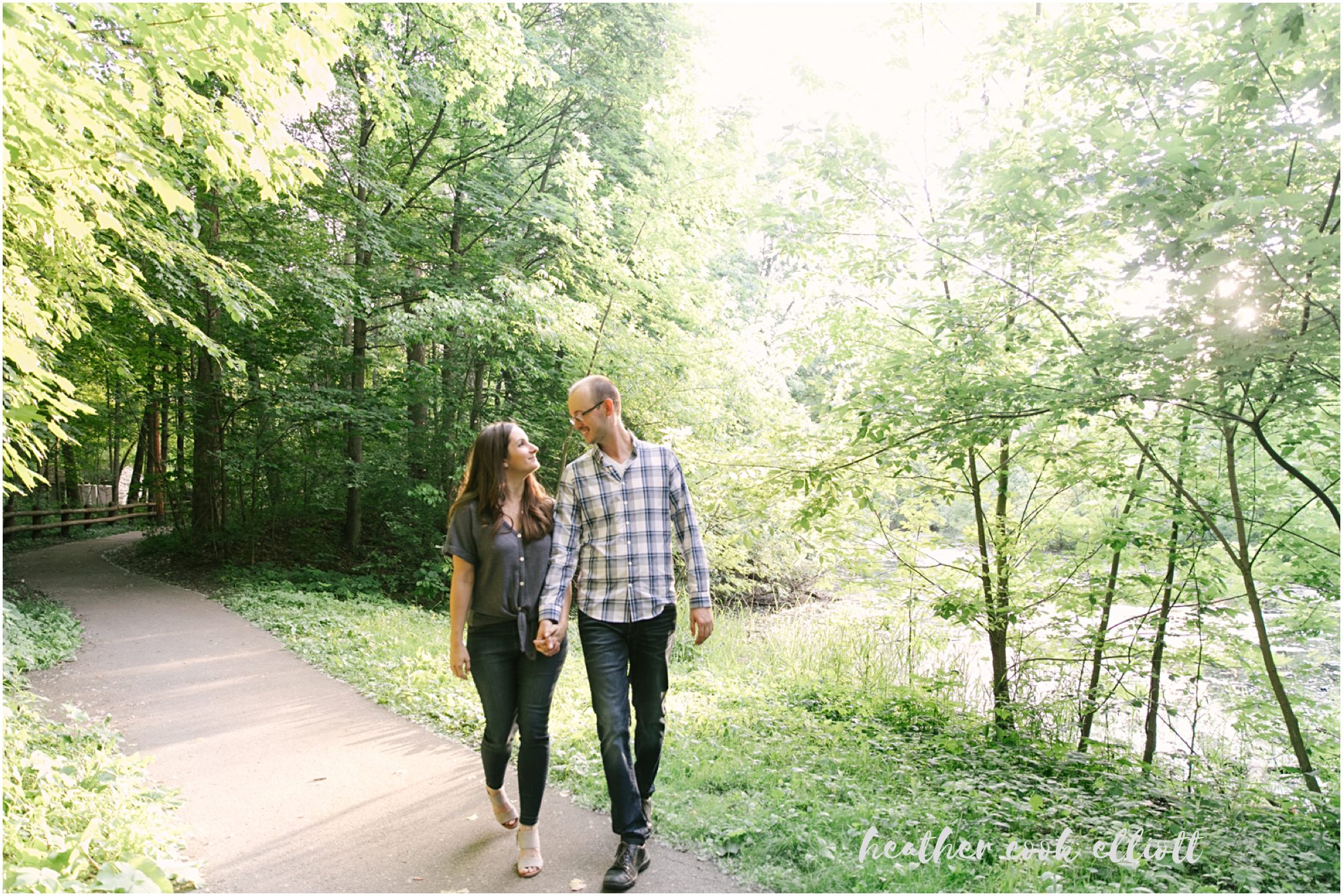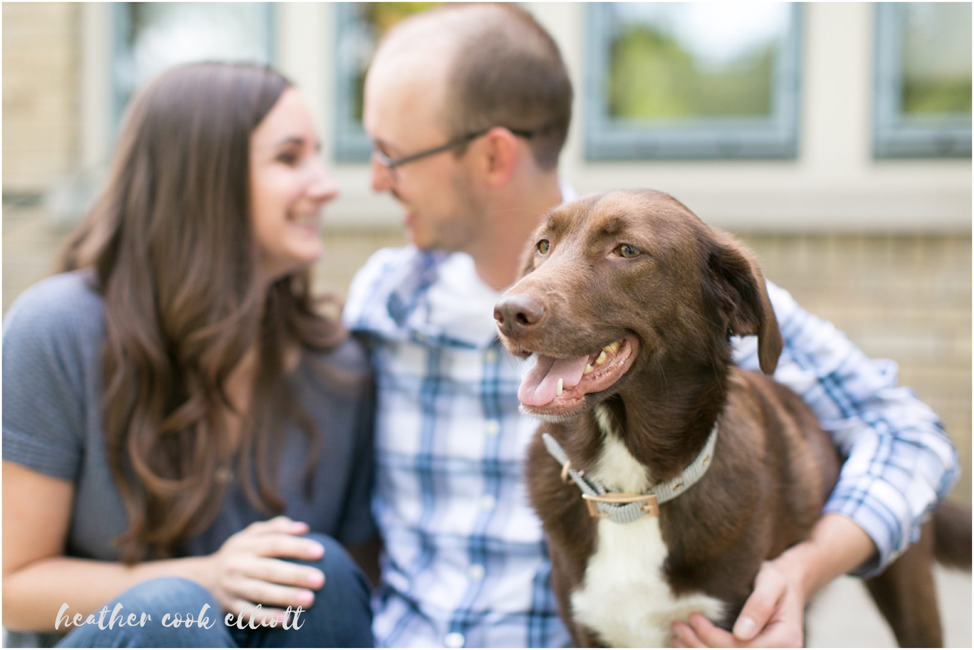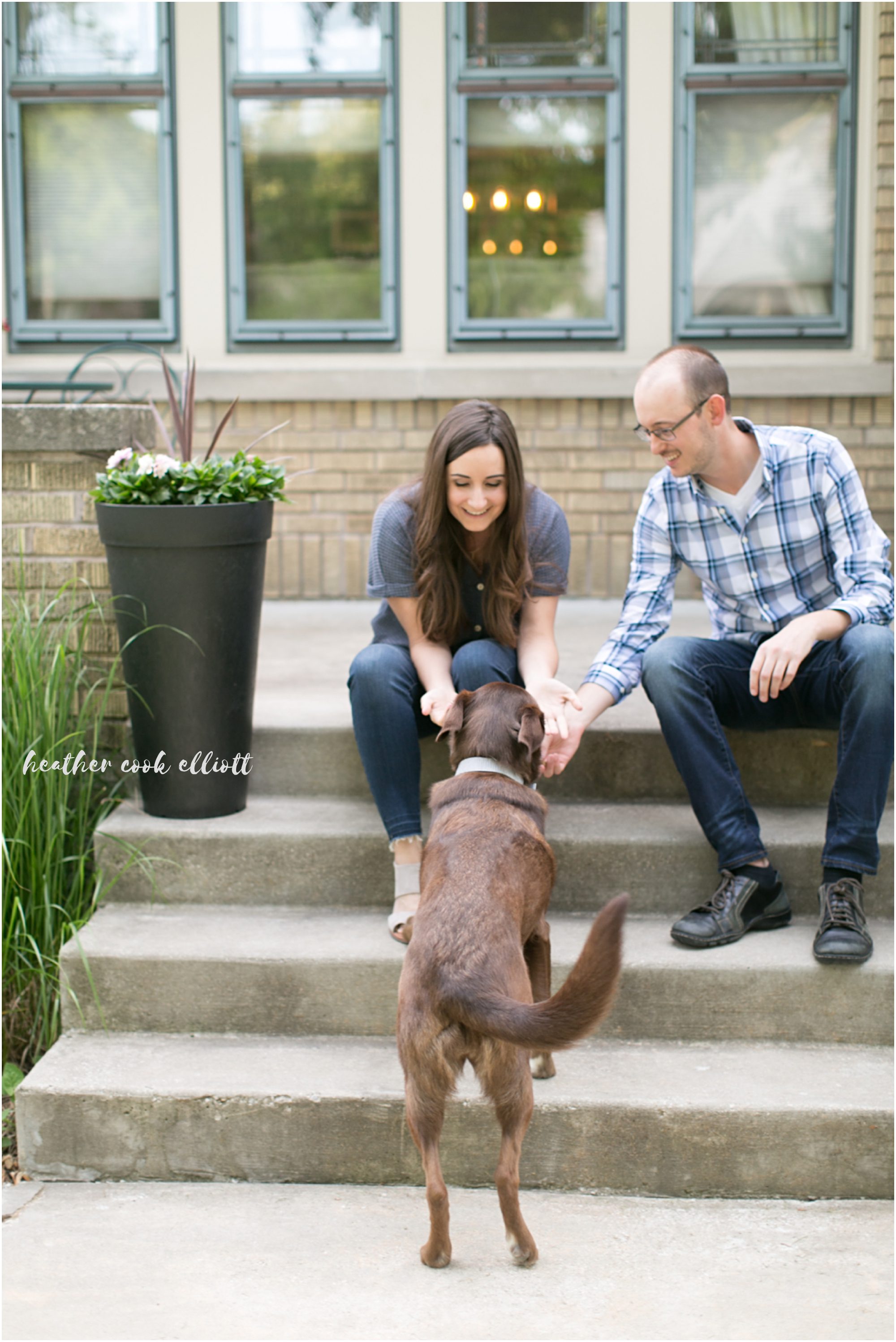 On a scale of 1 to 10 for Niceness, Maggie & Elliot are an 11. Gracious and quick to smile, these two instantly make everyone around them feel important and maybe even valued. But their niceness isn’t really the quality I most adore about them, it’s their kindness to each other, the way they are generous and careful with each other, always making sure the other is in a good place. They have the most adorable puppy and a gorgeous and well-cared for classic Tosa home. I met them there on a recent evening before the summer heat set in and we explored their beloved neighborhood, played under the twinkle lights in downtown Tosa and in the end reminisced about the life they have already lived together. It was the end of the session where I learned a dear memory they both share – the first time they walked arm in arm – and they happily, accidentally, wonderfully replayed the moment for me and really, for themselves. They first met at a wedding and walked down the aisle together, paired up by friends (and perhaps by fate.) So as we ascended the hilly street that leads down to Tosa’s main State Street Maggie naturally put her arm through Elliot’s and he simply said “welcome back, I like you here.” With a pause, she remembered that time years ago when they had also walked arm in arm and they dissolved into their own little world of memories and happiness. And just like Maggie & Elliot it was pretty perfect.