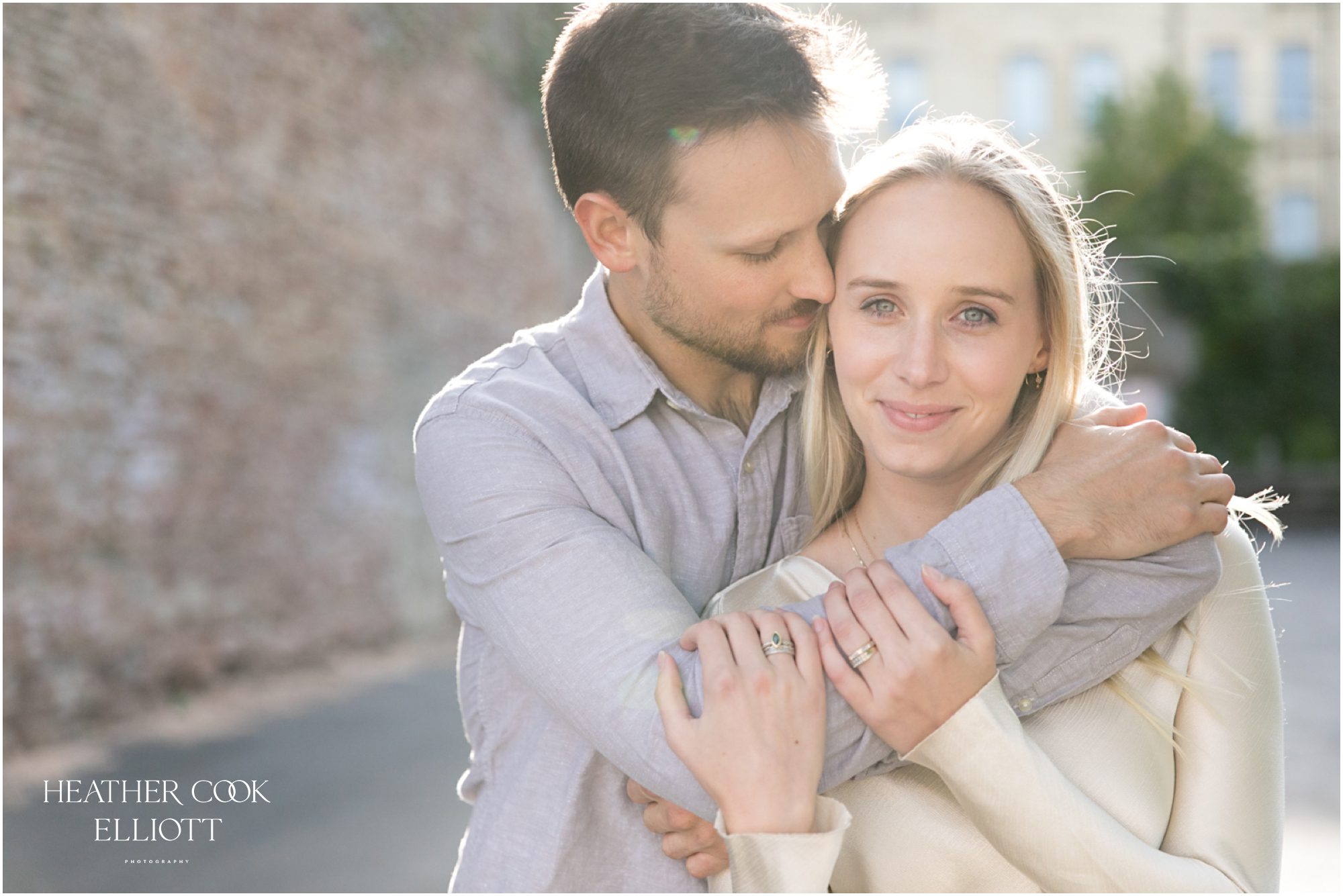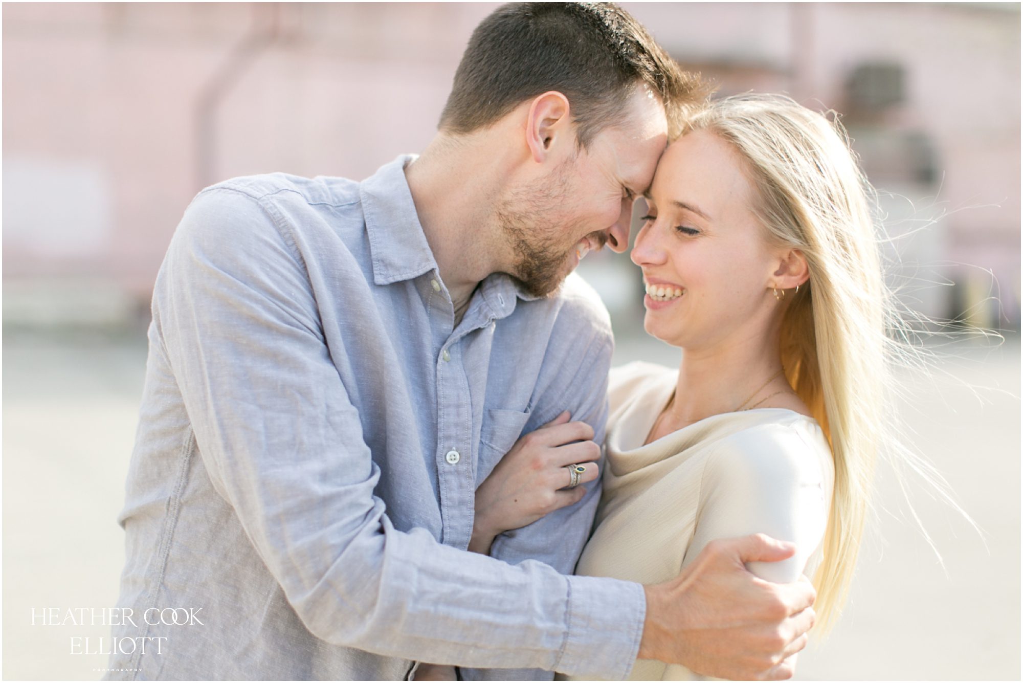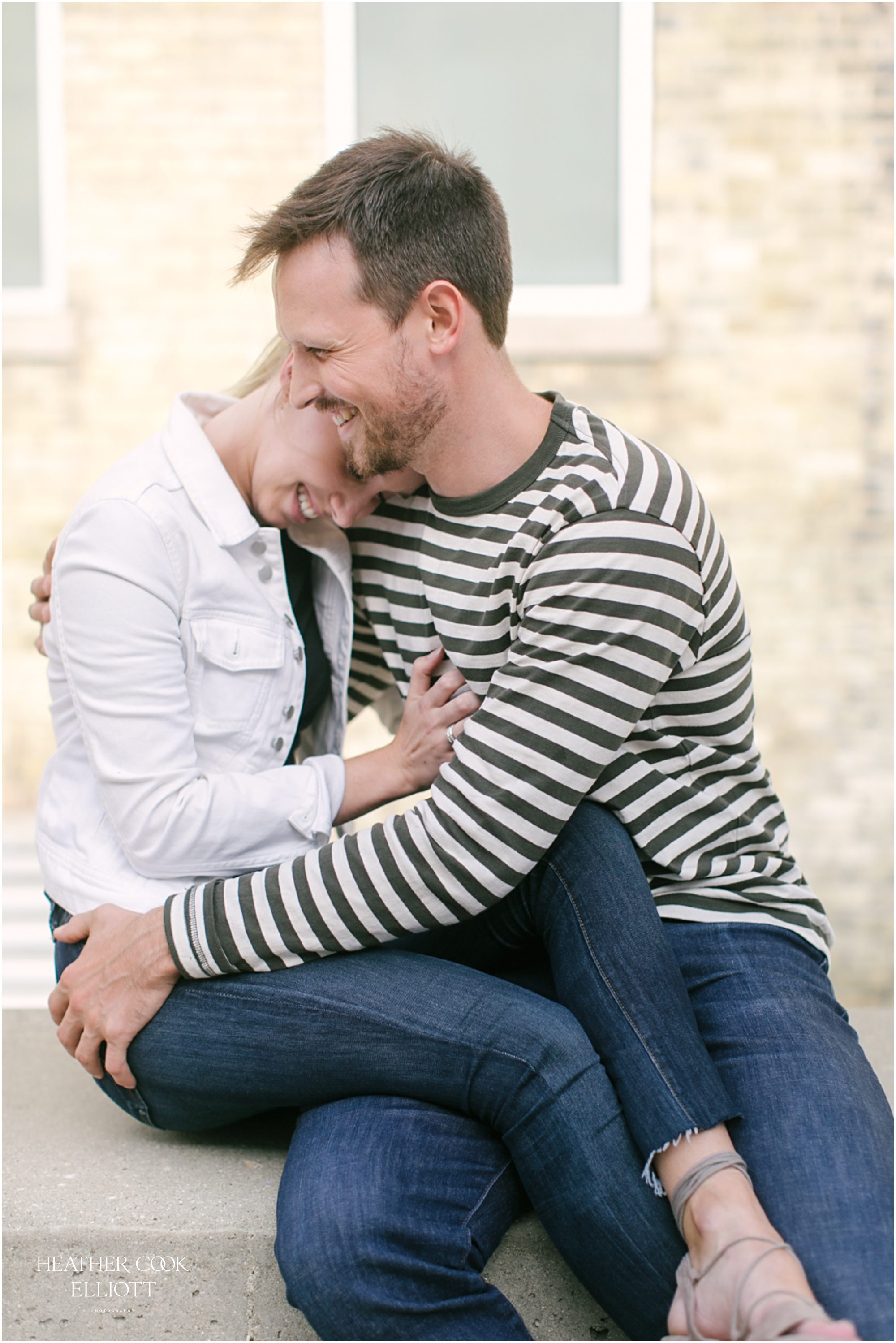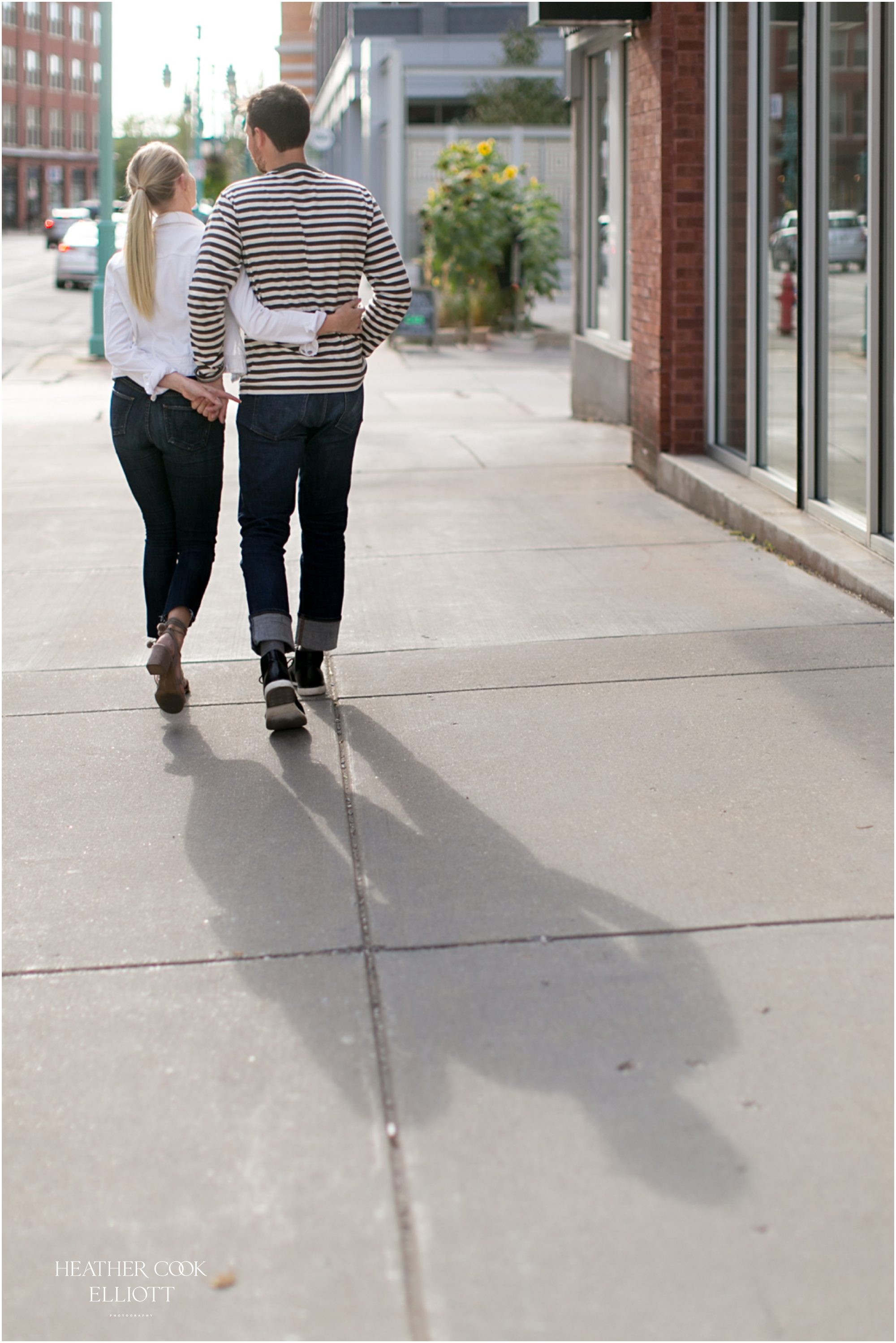 Eleanor & Joe live in Maine and are planning a winter wedding for 2020, two facts about them that make me think of snow and the need to wrap oneself in something warm (your best friend and fiance’s arms being the most recommended.) But their dispositions and sweet smiles bring sunshine and warmth to mind so I was thrilled we were able to plan a golden hour engagement session for them during their travels back to Milwaukee for wedding festivities. So with the late summer sun warming our skin we wandered the city they used to call home. They shared little bits about their lives and histories that made me like them all the more – from Eleanor’s wish for a “wedding ring” made up of estate rings (they are gorgeous and stacked and she can’t wait to get the third one on her finger come the wedding day) to Joe’s dancing skills (his grandmother was a dancer and dance teacher.) They snuggled and danced and just let me see them be together and it felt like a gift. Happy engagement Eleanor & Joe; we can’t wait to be there for the big day when you (officially) become one another’s.