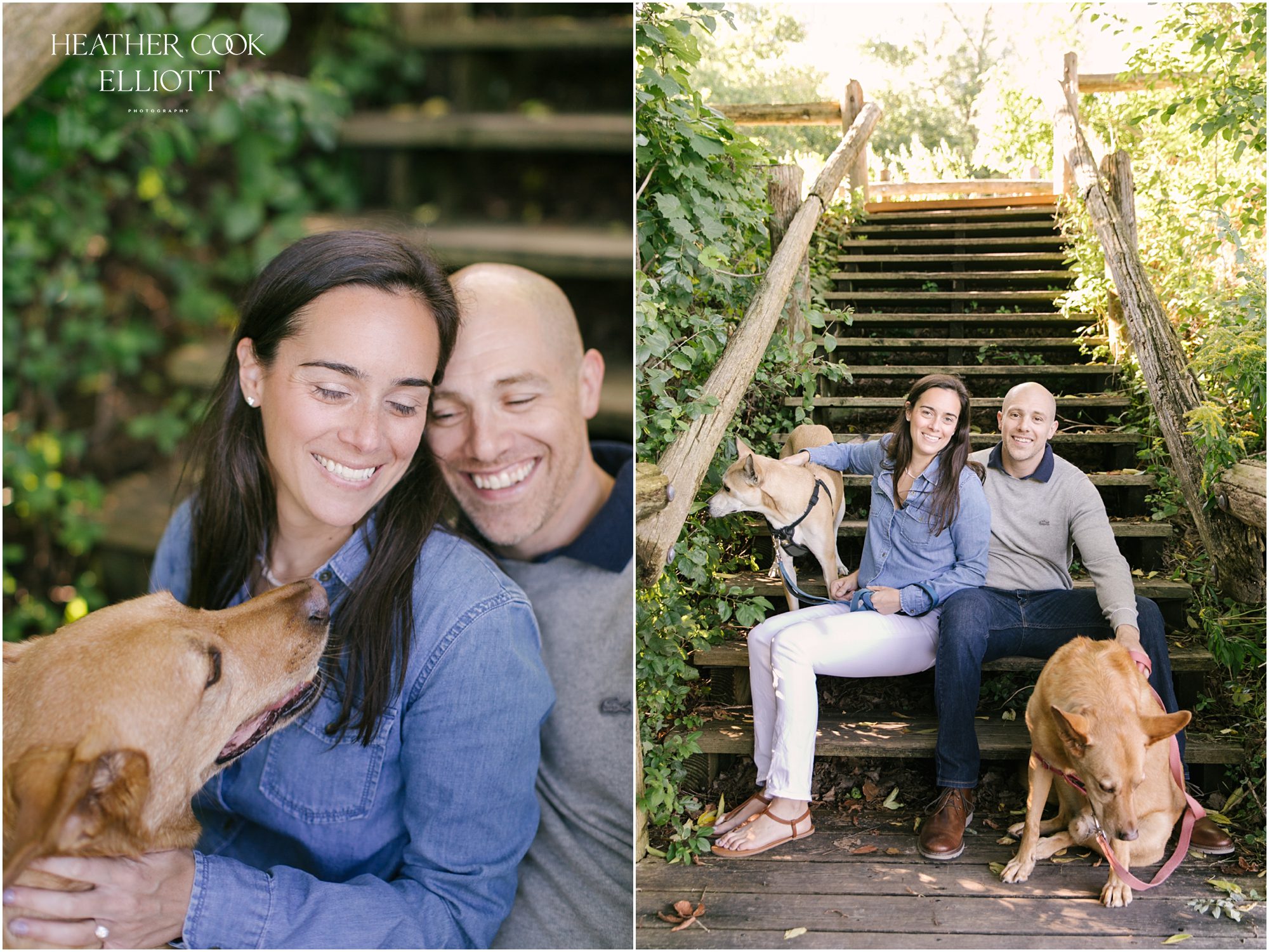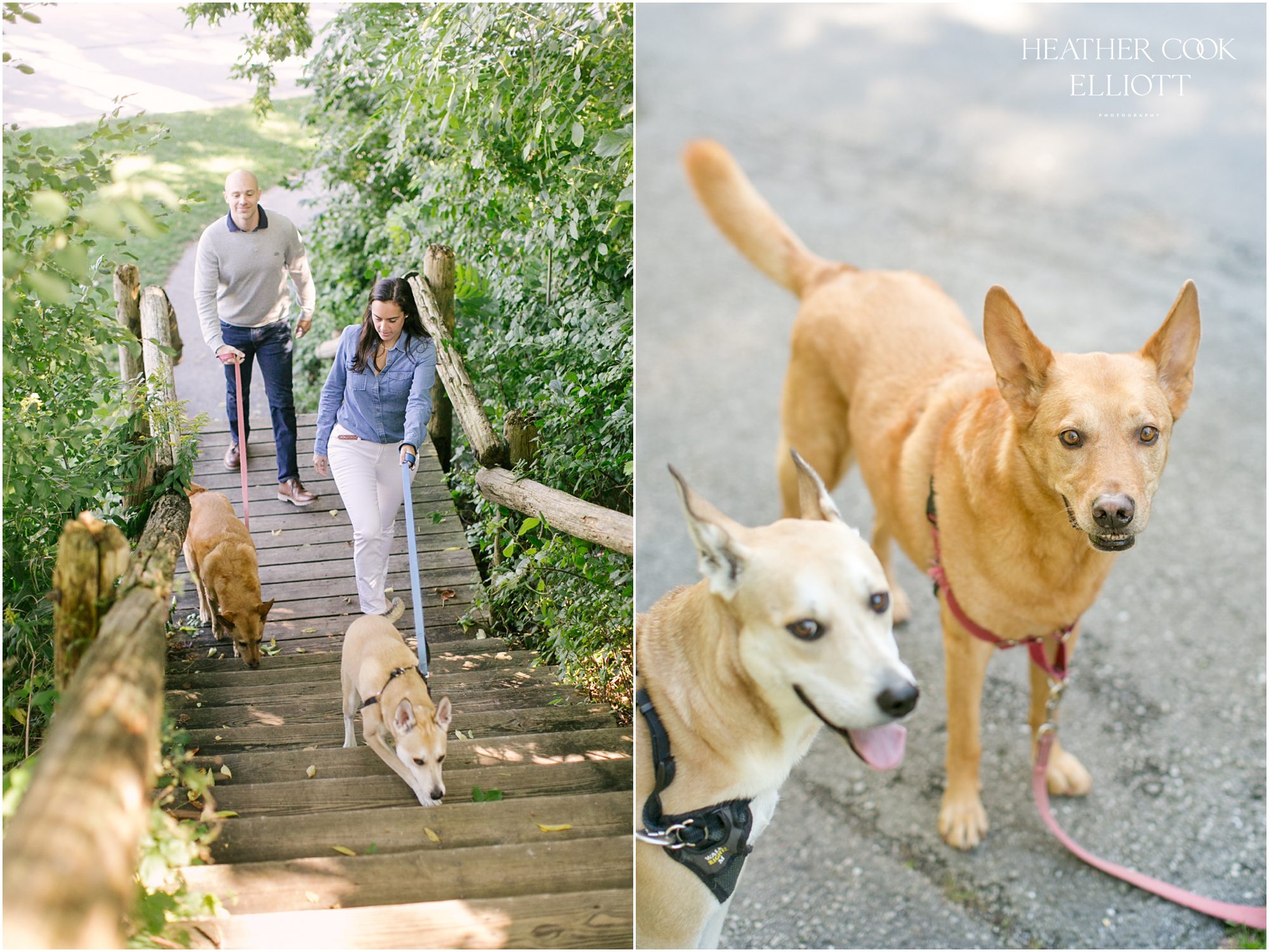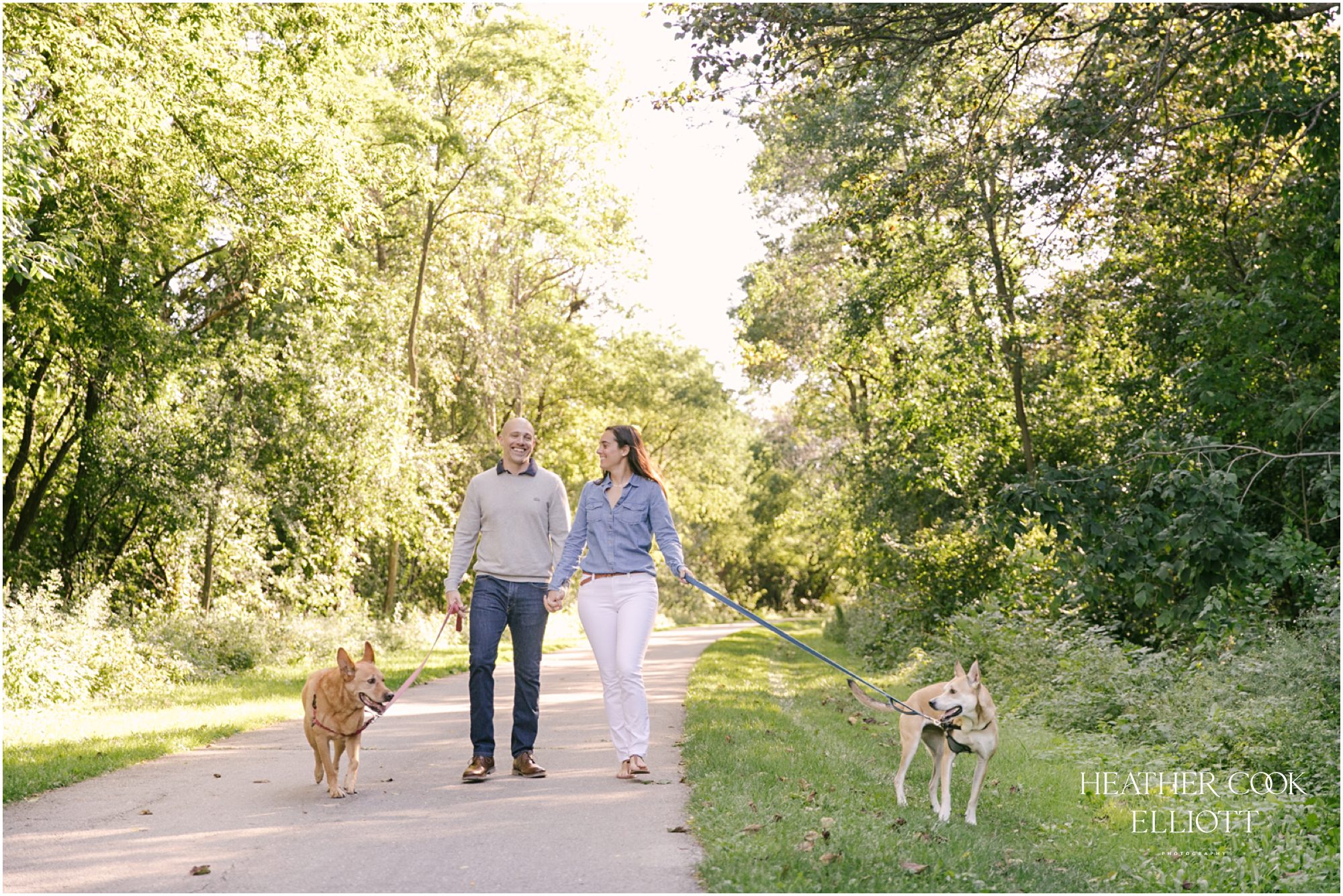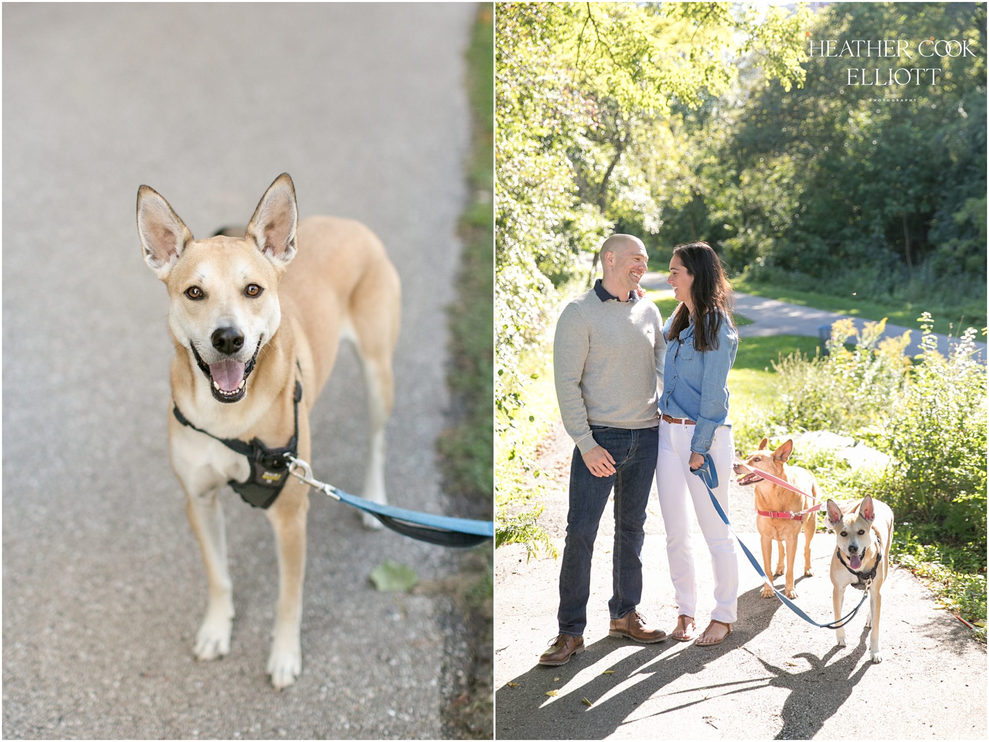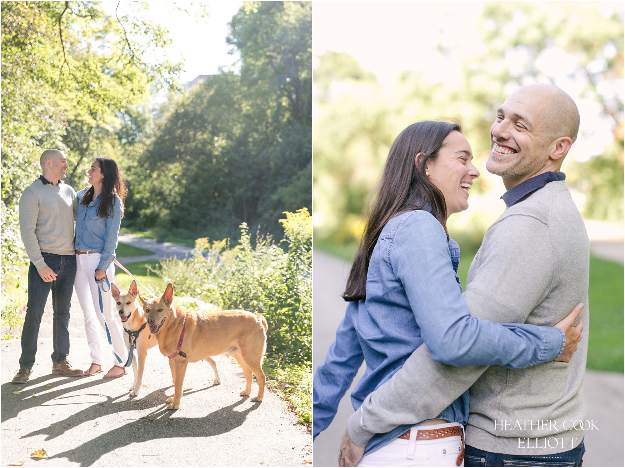 Is there anything better than a long walk hand in hand with your best friend and a couple of gorgeous pups who thing the world of you? I think not, my friends. And I think Stephanie & Louis would agree with me. They are living through a long distance spell right now and eagerly looking forward to the day when they can not only call each other husband and wife, but also when they don’t have to call each other at all. Instead they can wrap each other up in person and go for that aforementioned long walk along the lake front or Oak Leaf Trail, or really anywhere – as long as its together. They are in the final stages of planning a fall wedding for November so for their engagement session we wanted to make the most of warm days and leafy trees, sunny lake views and puppy love. We met at the place where they first met – Colectivo by the Lake – and went for a walk. It’s true what they say: simple is sweet.