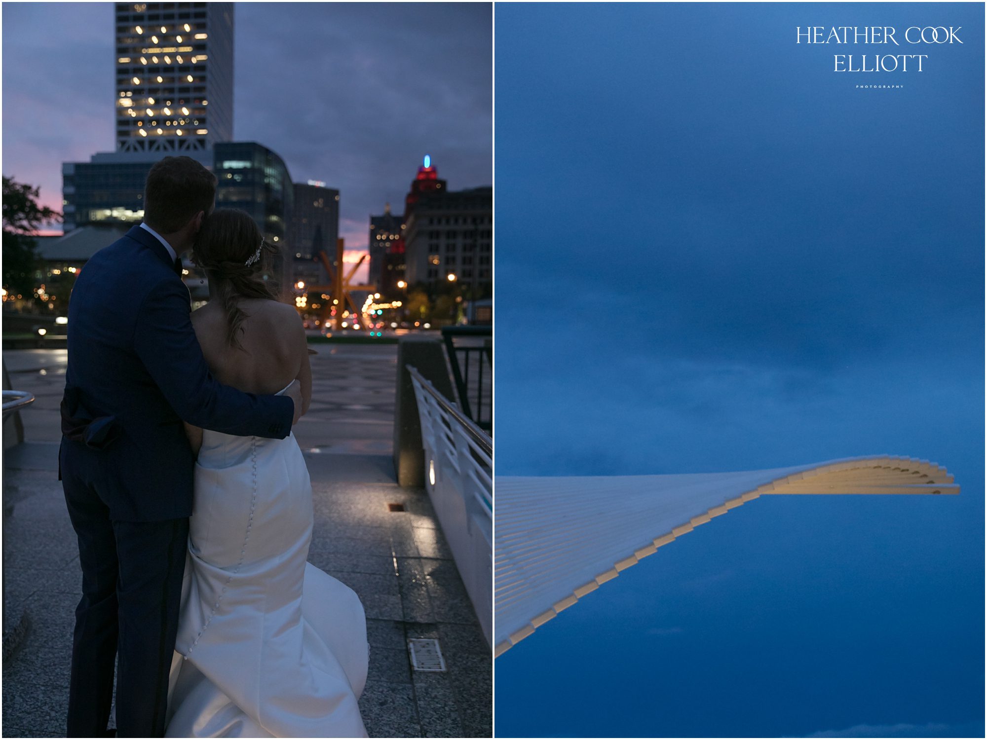 Heather & Connor are two of the kindest souls we had the total pleasure of photographing this amazing year. They are from the midwest but met at University of Pennsylvania where she was a track athlete and he played baseball. Their story involves video games and football games but never any games between the two of them. Once they found each other it was always real, and sincere, and lovely, and an all out Love Story. And while their lives aren’t in Milwaukee these days, the iconic Art Museum on Lake Michigan feels (and is) close to where their hearts are so they decided to tie the knot under the soaring wings of Windhover Hall on an October day. And call it fate or coincidence, but either way how cool is it that a baby version of Philadelphia’s LOVE sculpture by Robert Indiana now lives in the MAM permanent Collection, too? Surrounded by friends, family and teammates from across the country they celebrated with a little rain, a lot of fun, a jaunt to the LOVE sculpture, and the most gorgeous sunset we’ve seen this side of June. Heather & Connor are the definition of love and their wedding of loveliness – so grab a glass of wine and take some notes: this is how a wedding between two soulmates is done ~