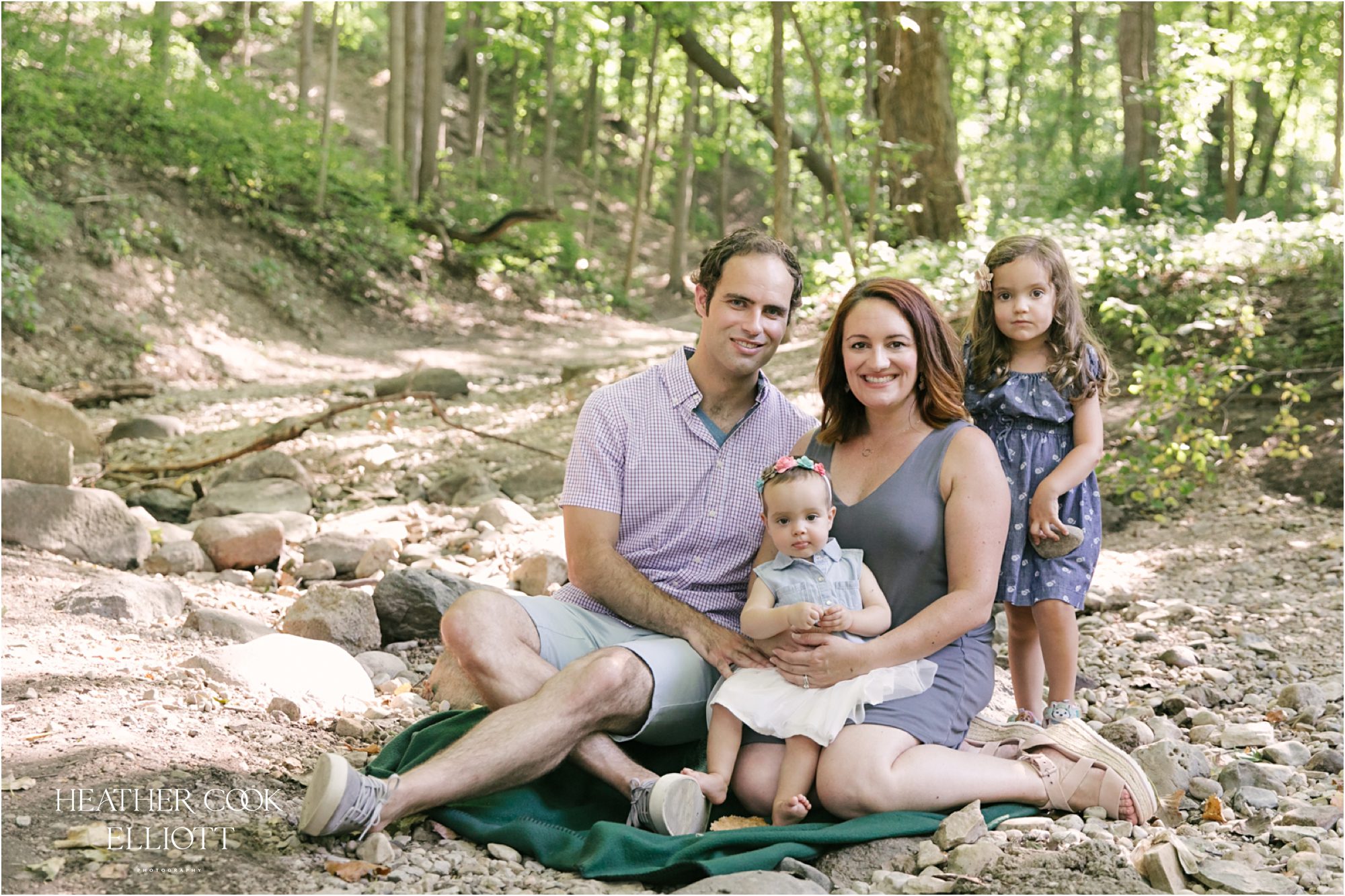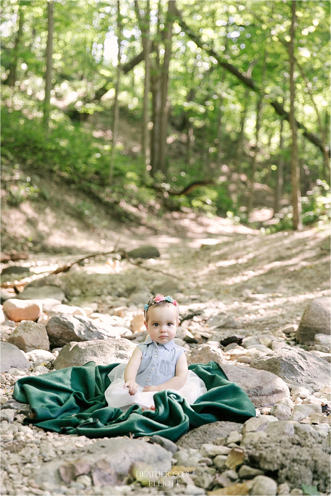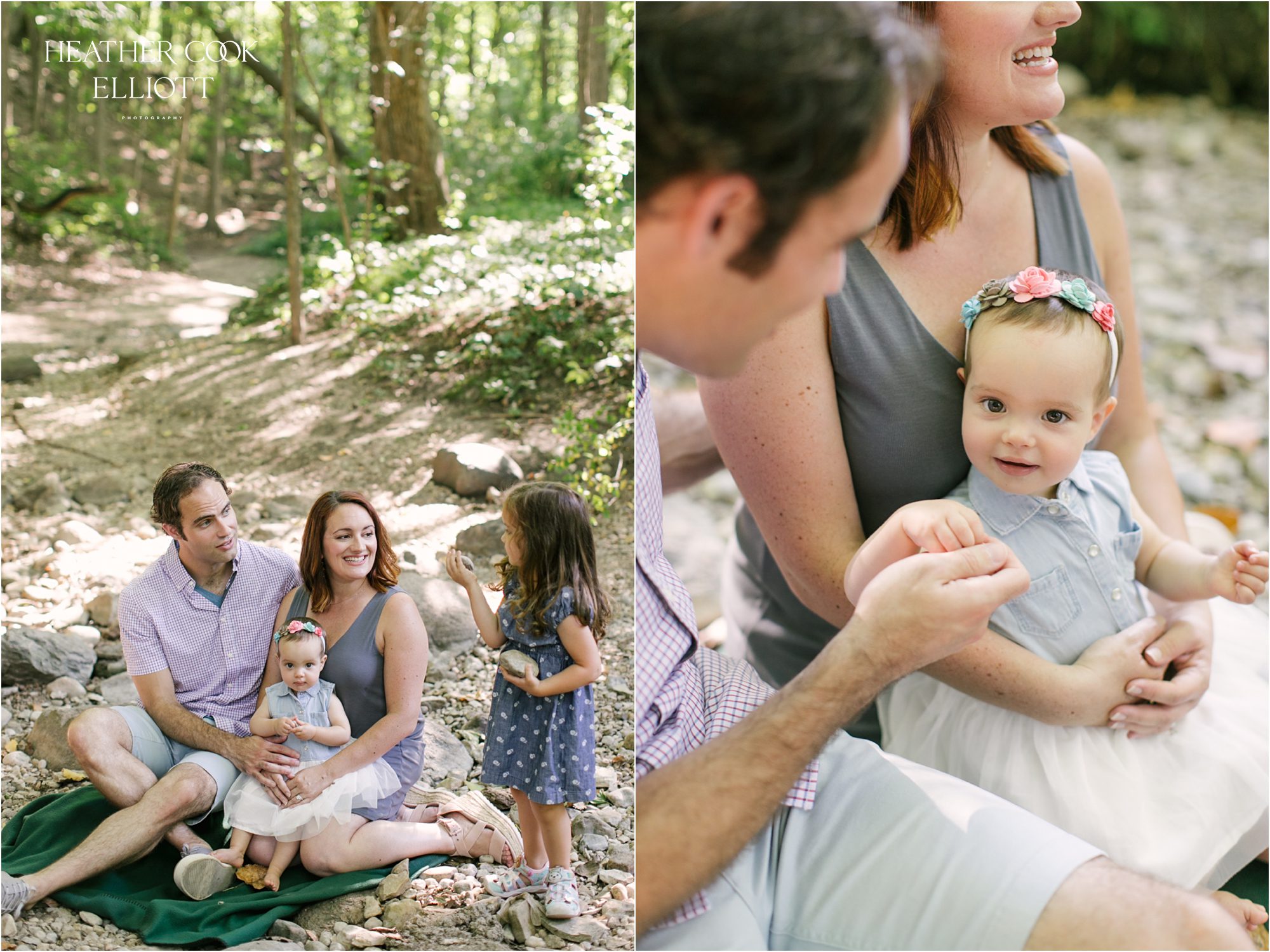 Baby Cecelia is so tiny and chubby and connected to her mom & dad it is easy to think of her as a baby, but Baby Cecelia, sister to Josephine, really isn’t a baby anymore. Walking is in her very near future and her distinct ability to make her preferences known shows that really she is sliding into toddler status at this very moment. So on a perfect almost-fall afternoon we marked her first year of life, the nearing end of babydom and the start of toddlerhood, with a walk in the woods. We piled her and her favorite people on a blanket in the woods and we looked for toads in the pond. We threw rocks with her sister and ran around like crazy people while she watched and thought about it and eventually cracked a smile for her daddy. It was perfect, just like Cecelia.