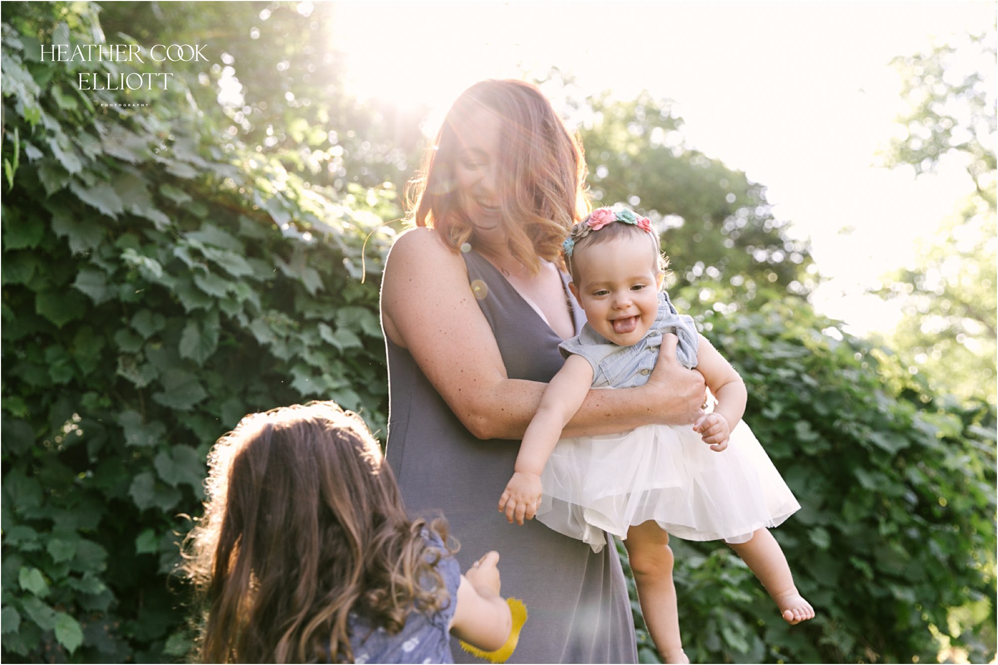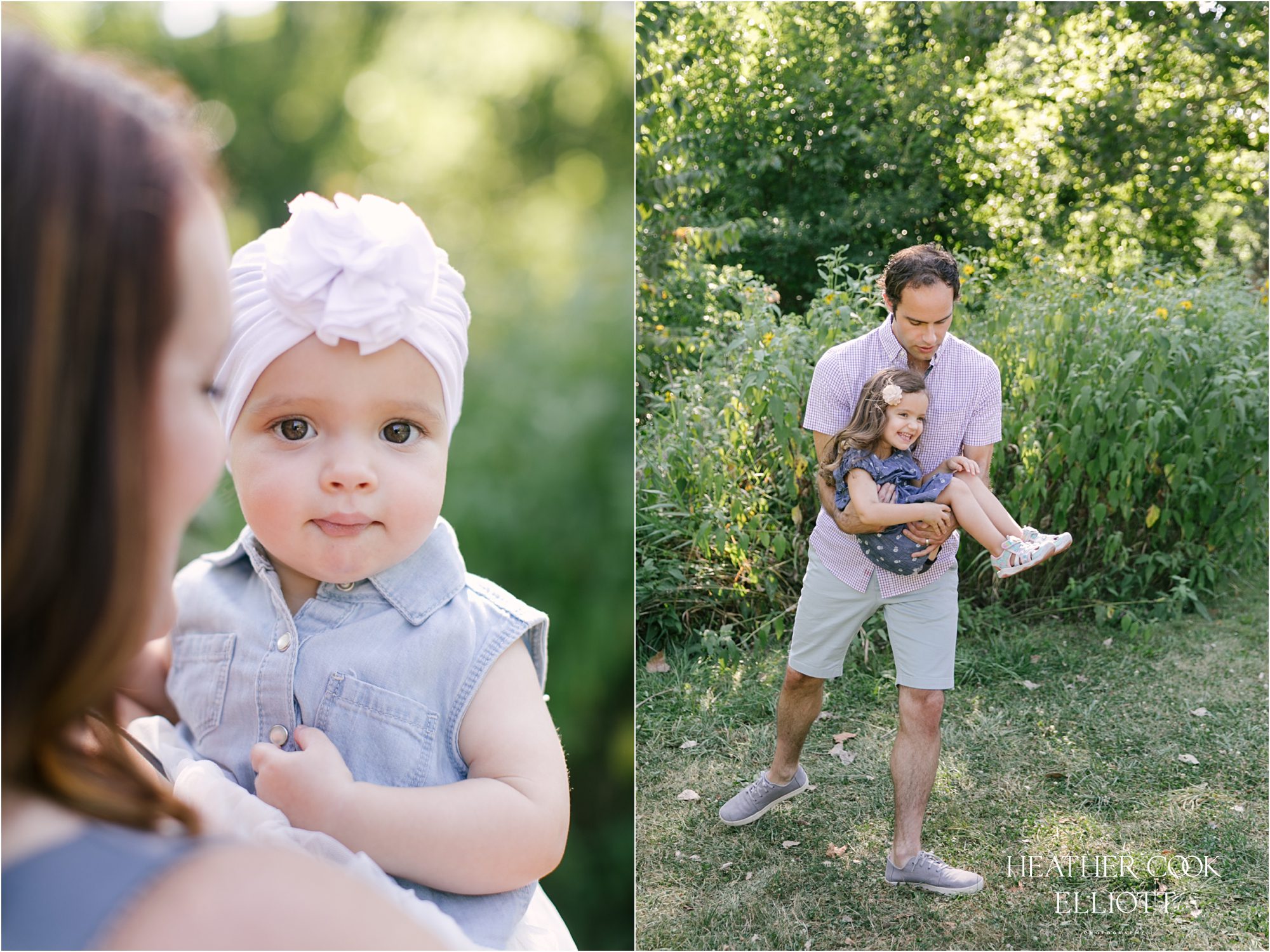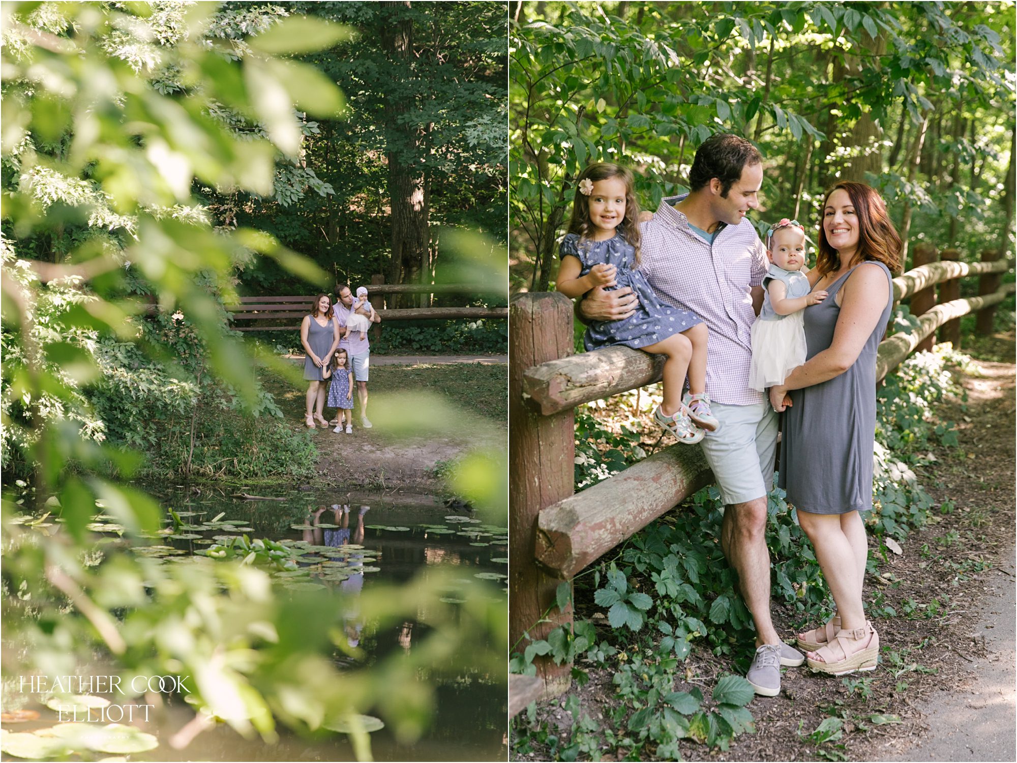Baby Cecelia is so tiny and chubby and connected to her mom & dad it is easy to think of her as a baby, but Baby Cecelia, sister to Josephine, really isn’t a baby anymore. Walking is in her very near future and her distinct ability to make her preferences known shows that really she is sliding into toddler status at this very moment. So on a perfect almost-fall afternoon we marked her first year of life, the nearing end of babydom and the start of toddlerhood, with a walk in the woods. We piled her and her favorite people on a blanket in the woods and we looked for toads in the pond. We threw rocks with her sister and ran around like crazy people while she watched and thought about it and eventually cracked a smile for her daddy. It was perfect, just like Cecelia.
