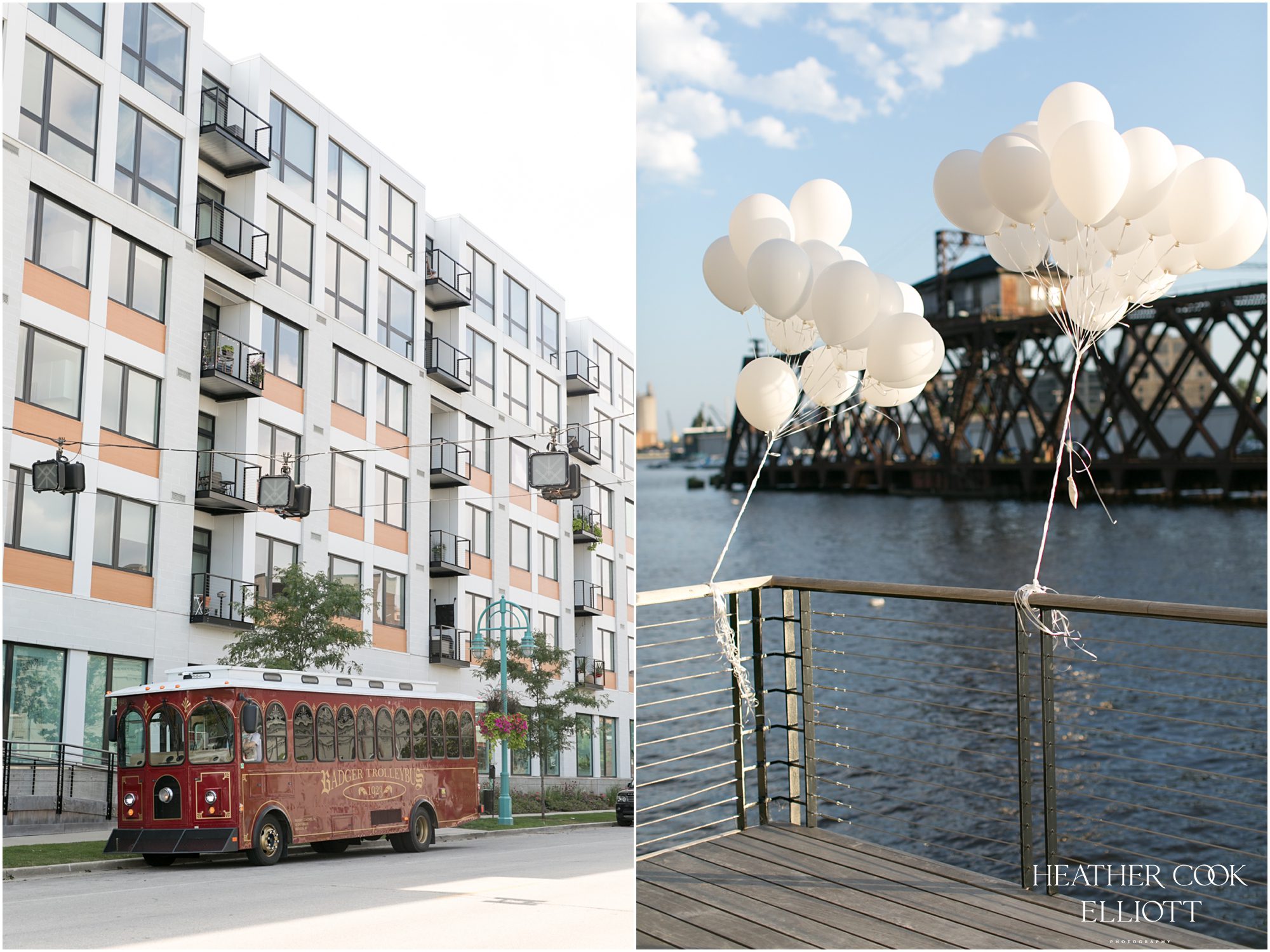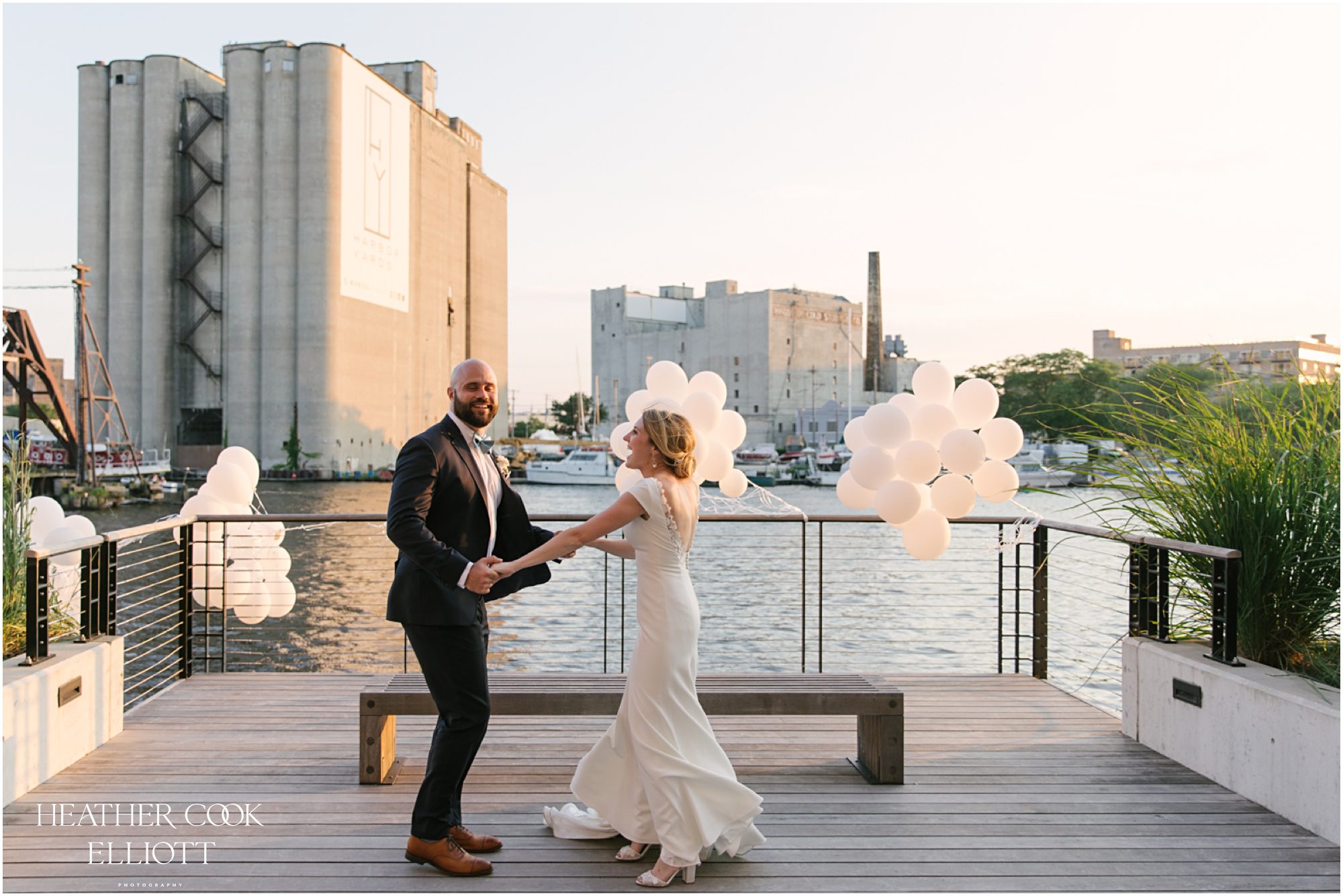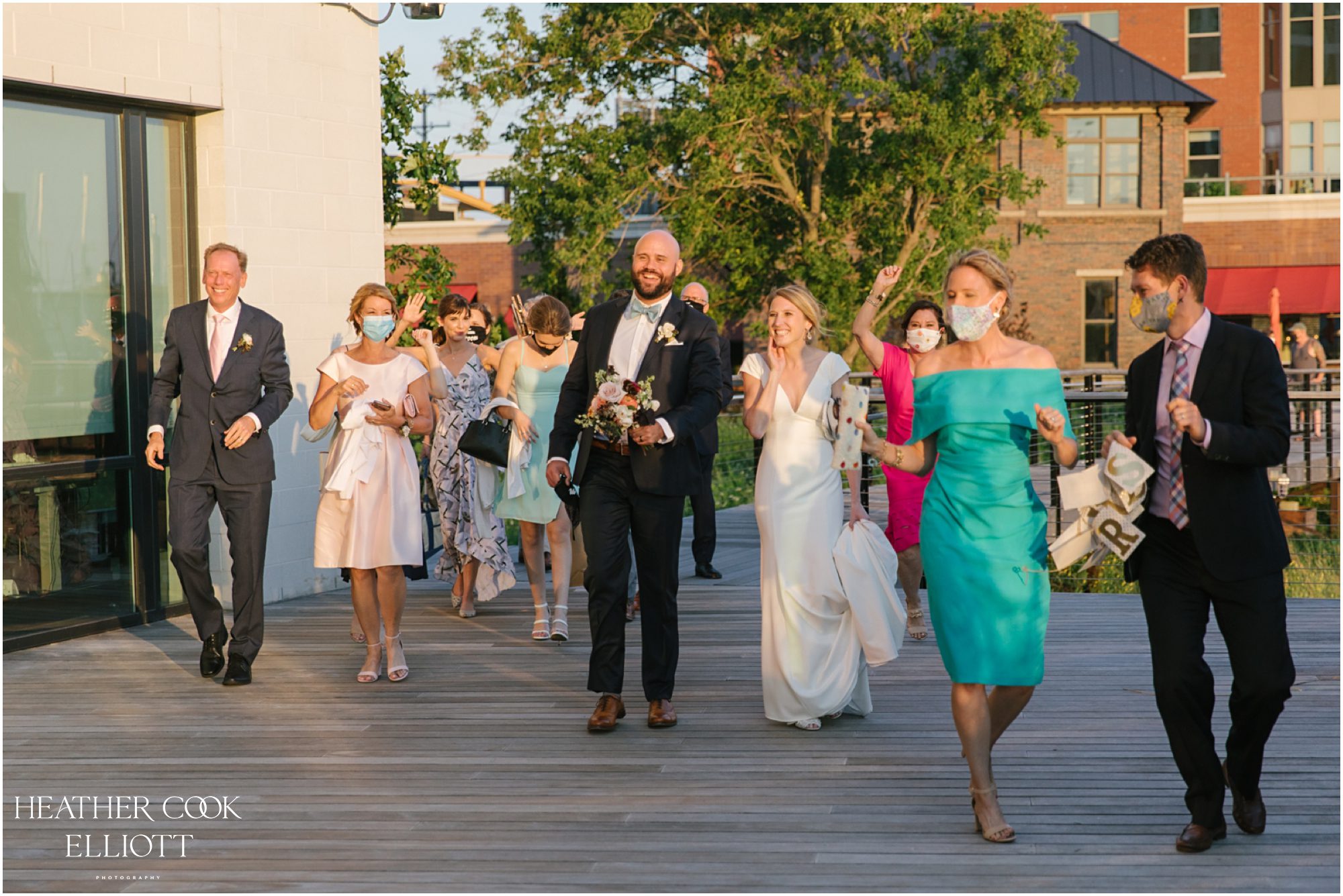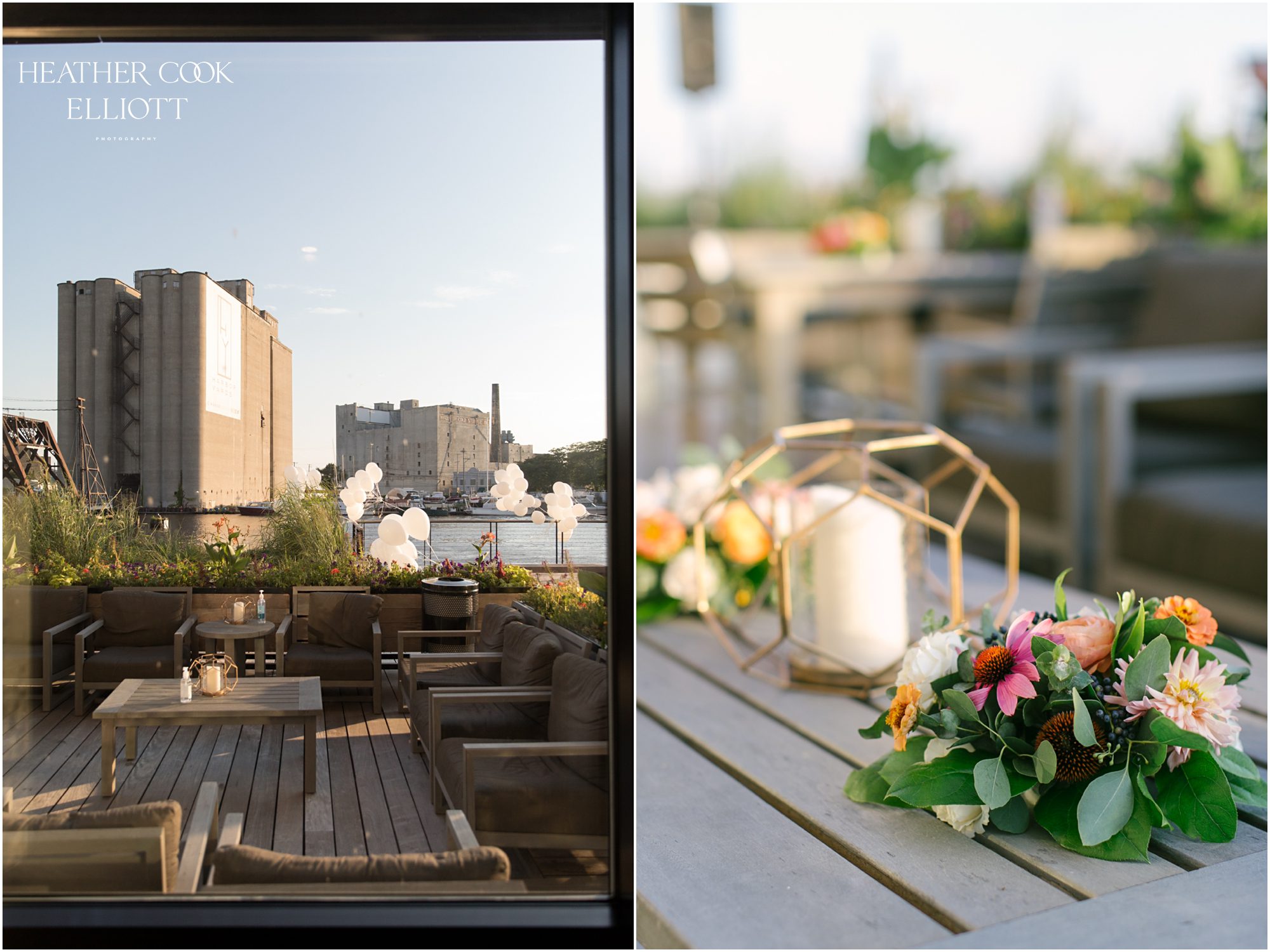 Elizabeth & Jeff have adventurous spirits and if 2020 has taught them anything it is that going with the flow can be incredibly rewarding. They planned a country club wedding in Lake Geneva for their 2020 nuptials, but as we all know this year is, well, the year of change. With their celebration date pushed off to 2021 they have much to look forward to, but being an officially official family wasn’t something they wanted to postpone. So they looked around their beloved neighborhood and gathered their beloved people and went with the flow. Downsized to include only their immediate families, but upsized in joy and windswept beauty, they married each other with Lake Michigan as the ultimate backdrop and danced the night away on the Third Ward’s Riverwalk. After an intimate dinner downtown, a surprise performance by their wedding band marked their arrival back at what they thought would be chance to gather for dessert and champagne. But conga lines under decorated balconies overlooking the river and a most lovely sunset made the night more than memorable; it made the night the perfect start to Forever.