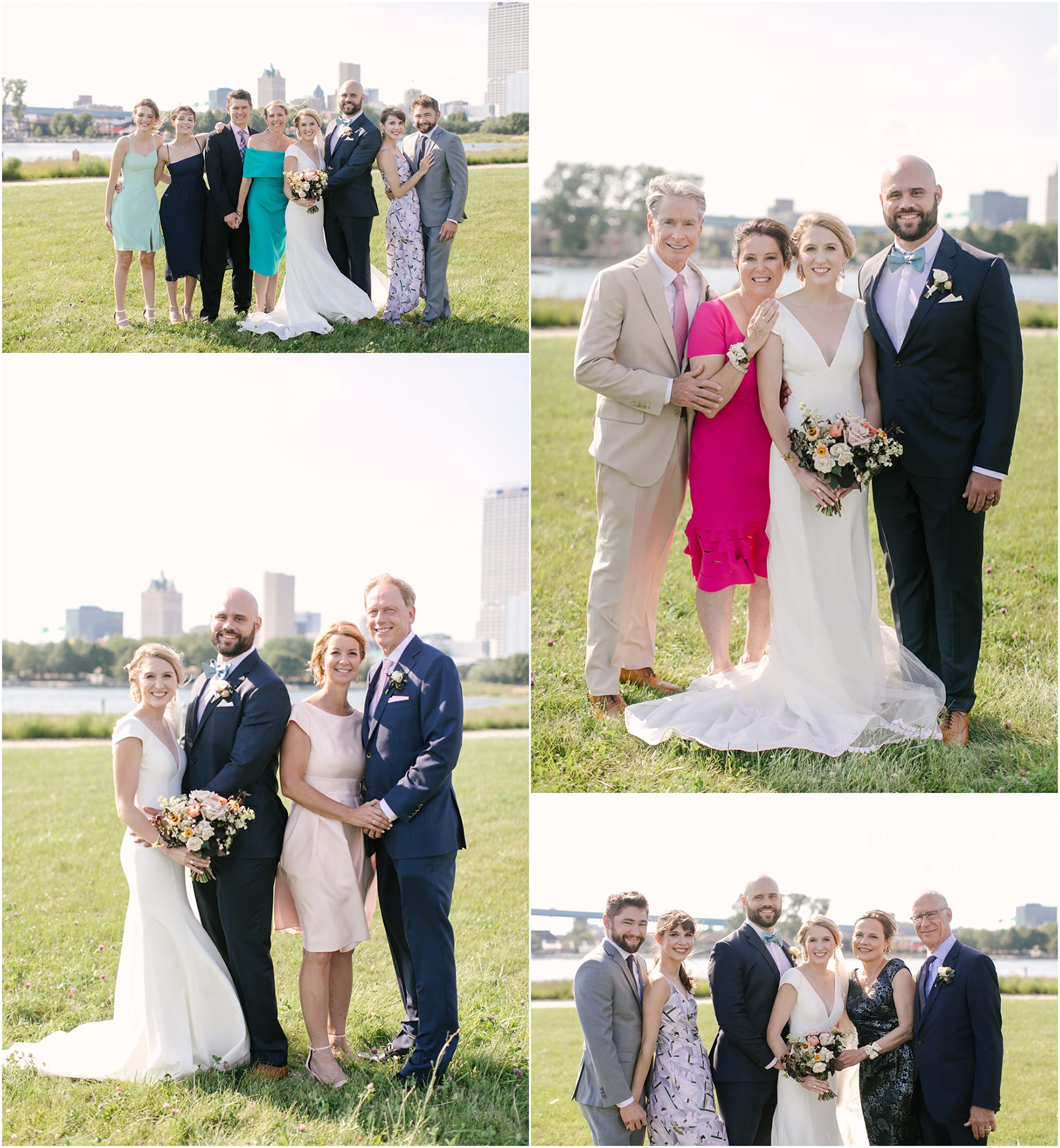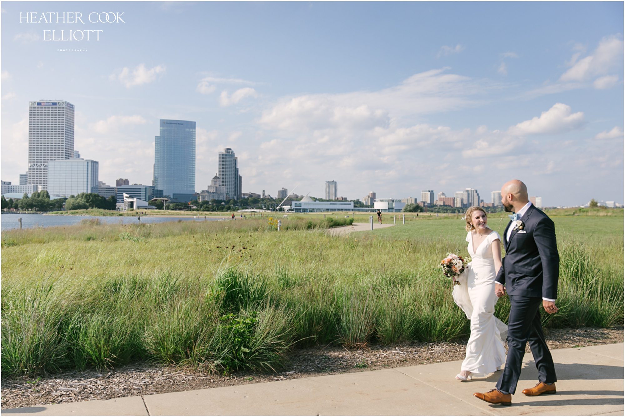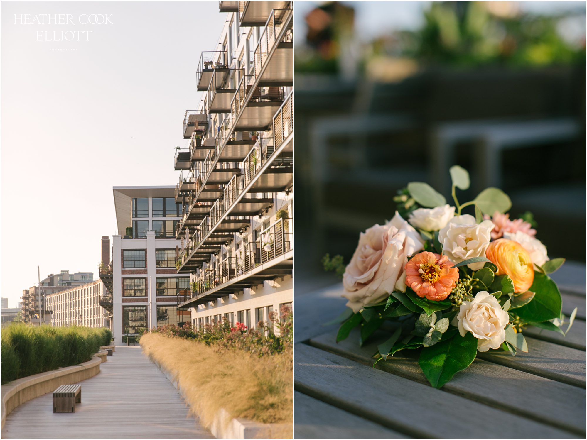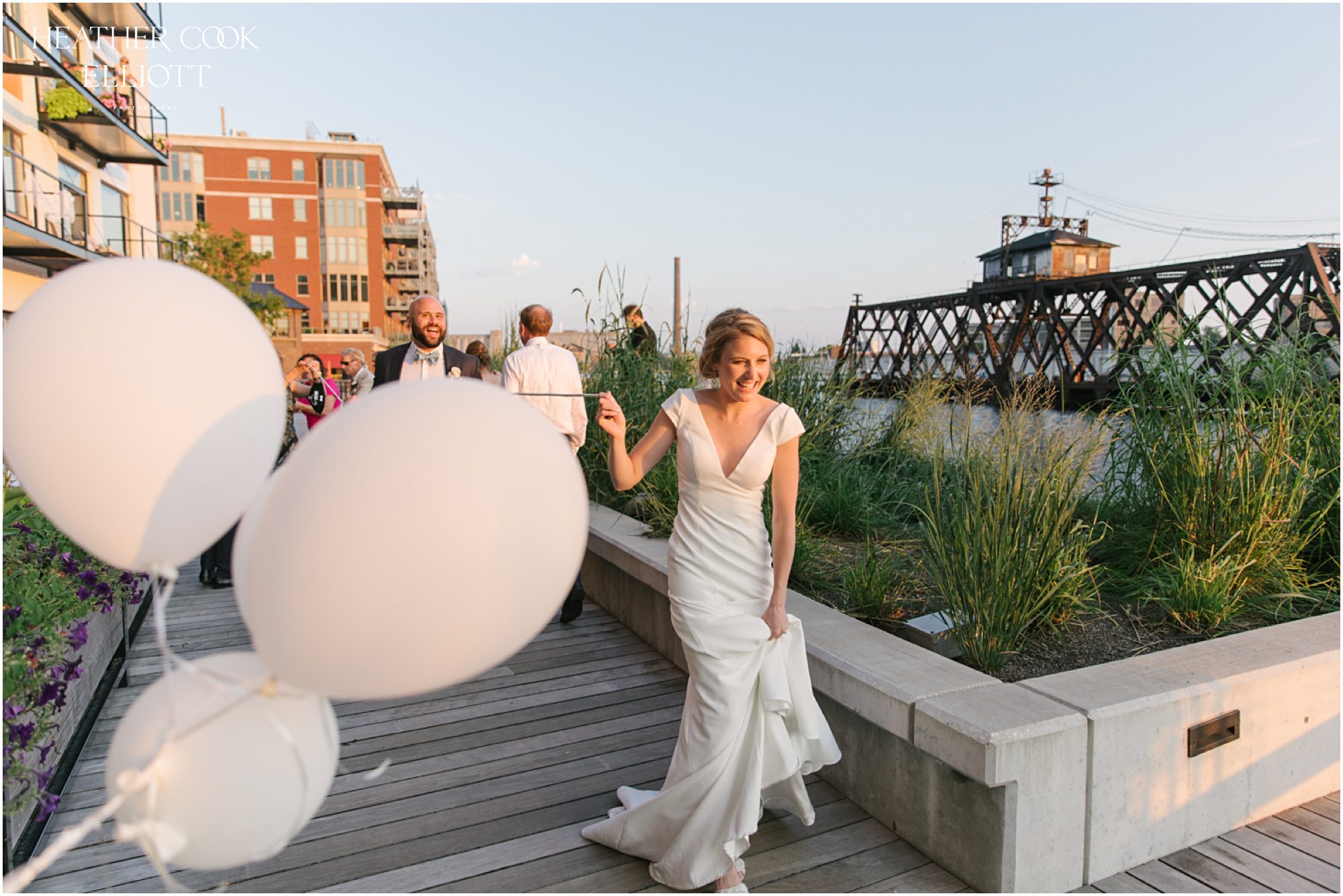 Elizabeth & Jeff have adventurous spirits and if 2020 has taught them anything it is that going with the flow can be incredibly rewarding. They planned a country club wedding in Lake Geneva for their 2020 nuptials, but as we all know this year is, well, the year of change. With their celebration date pushed off to 2021 they have much to look forward to, but being an officially official family wasn’t something they wanted to postpone. So they looked around their beloved neighborhood and gathered their beloved people and went with the flow. Downsized to include only their immediate families, but upsized in joy and windswept beauty, they married each other with Lake Michigan as the ultimate backdrop and danced the night away on the Third Ward’s Riverwalk. After an intimate dinner downtown, a surprise performance by their wedding band marked their arrival back at what they thought would be chance to gather for dessert and champagne. But conga lines under decorated balconies overlooking the river and a most lovely sunset made the night more than memorable; it made the night the perfect start to Forever.