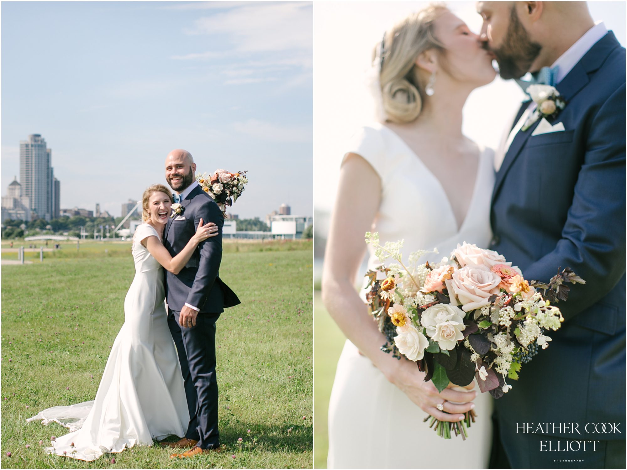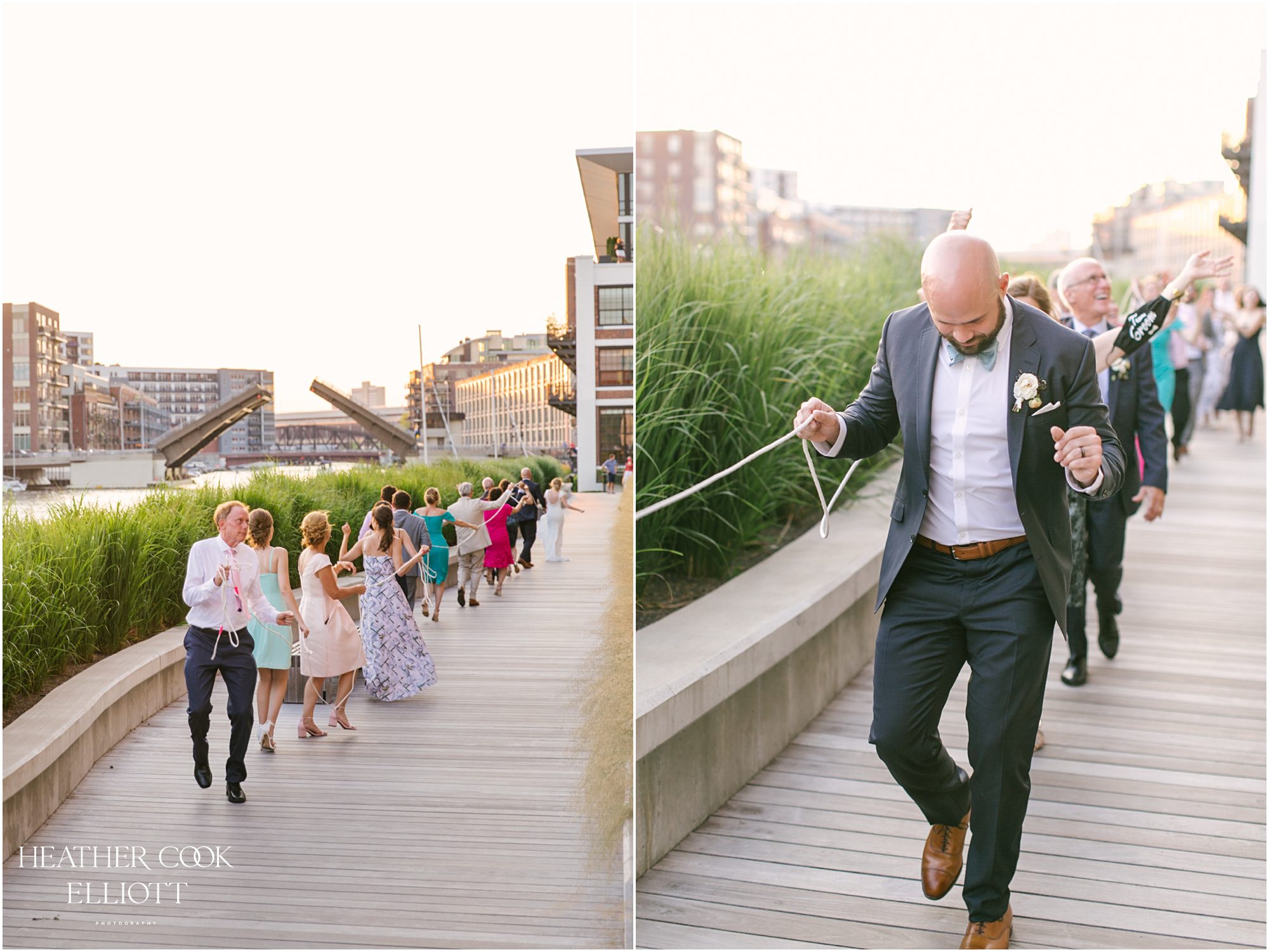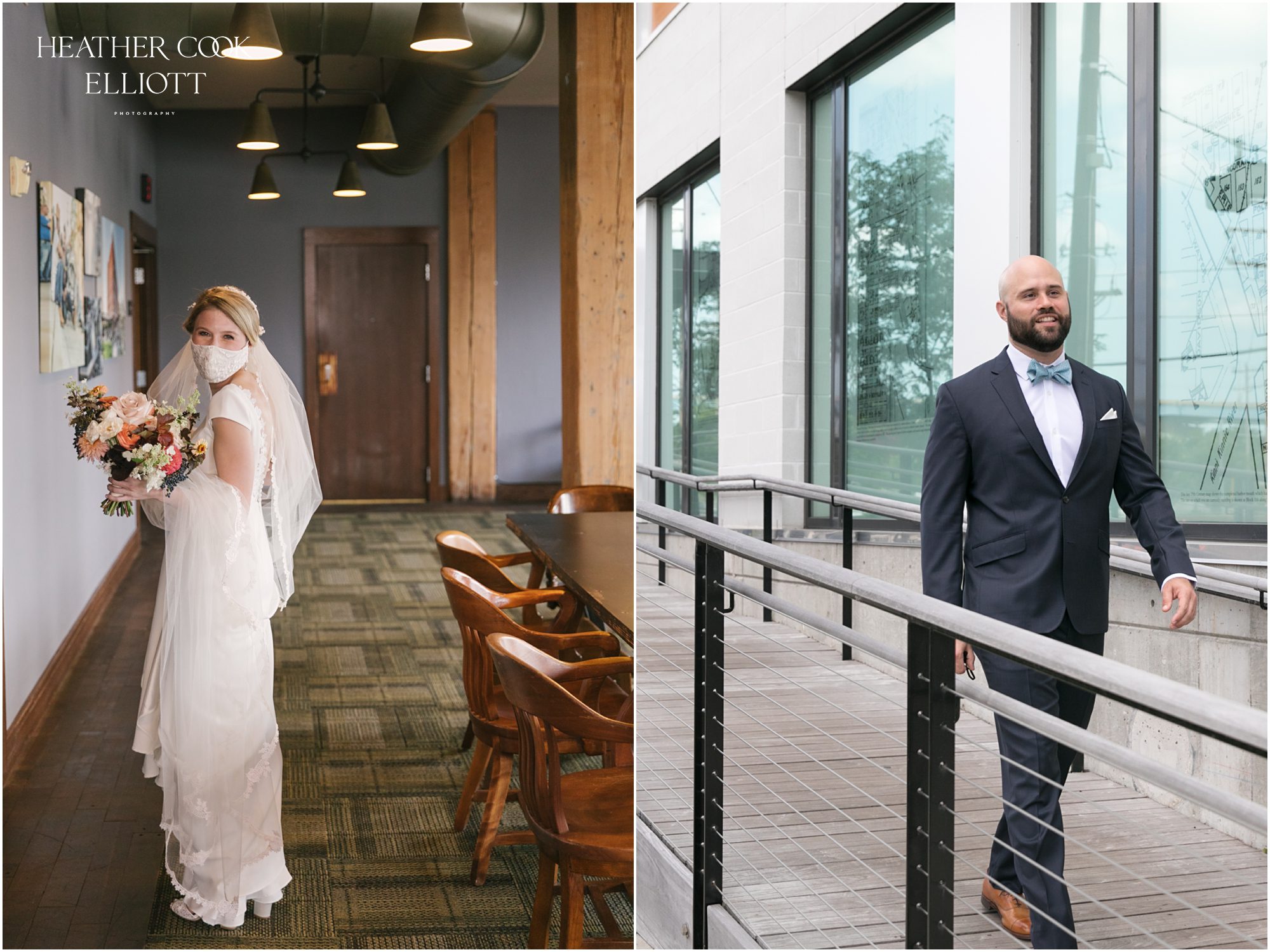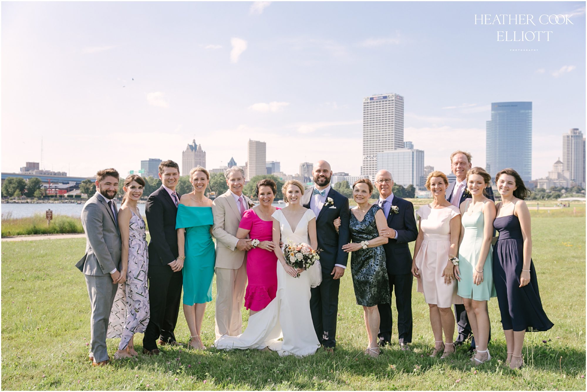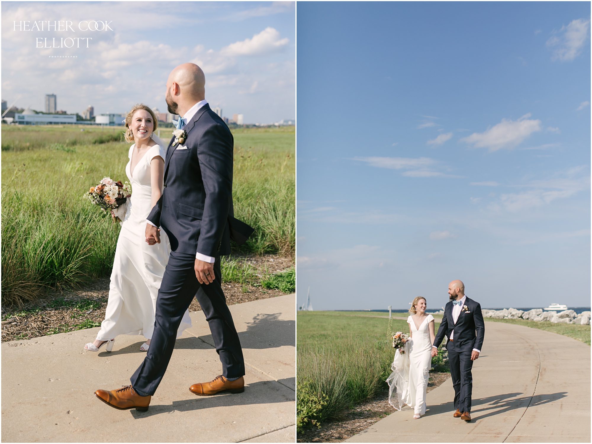 Elizabeth & Jeff have adventurous spirits and if 2020 has taught them anything it is that going with the flow can be incredibly rewarding. They planned a country club wedding in Lake Geneva for their 2020 nuptials, but as we all know this year is, well, the year of change. With their celebration date pushed off to 2021 they have much to look forward to, but being an officially official family wasn’t something they wanted to postpone. So they looked around their beloved neighborhood and gathered their beloved people and went with the flow. Downsized to include only their immediate families, but upsized in joy and windswept beauty, they married each other with Lake Michigan as the ultimate backdrop and danced the night away on the Third Ward’s Riverwalk. After an intimate dinner downtown, a surprise performance by their wedding band marked their arrival back at what they thought would be chance to gather for dessert and champagne. But conga lines under decorated balconies overlooking the river and a most lovely sunset made the night more than memorable; it made the night the perfect start to Forever.