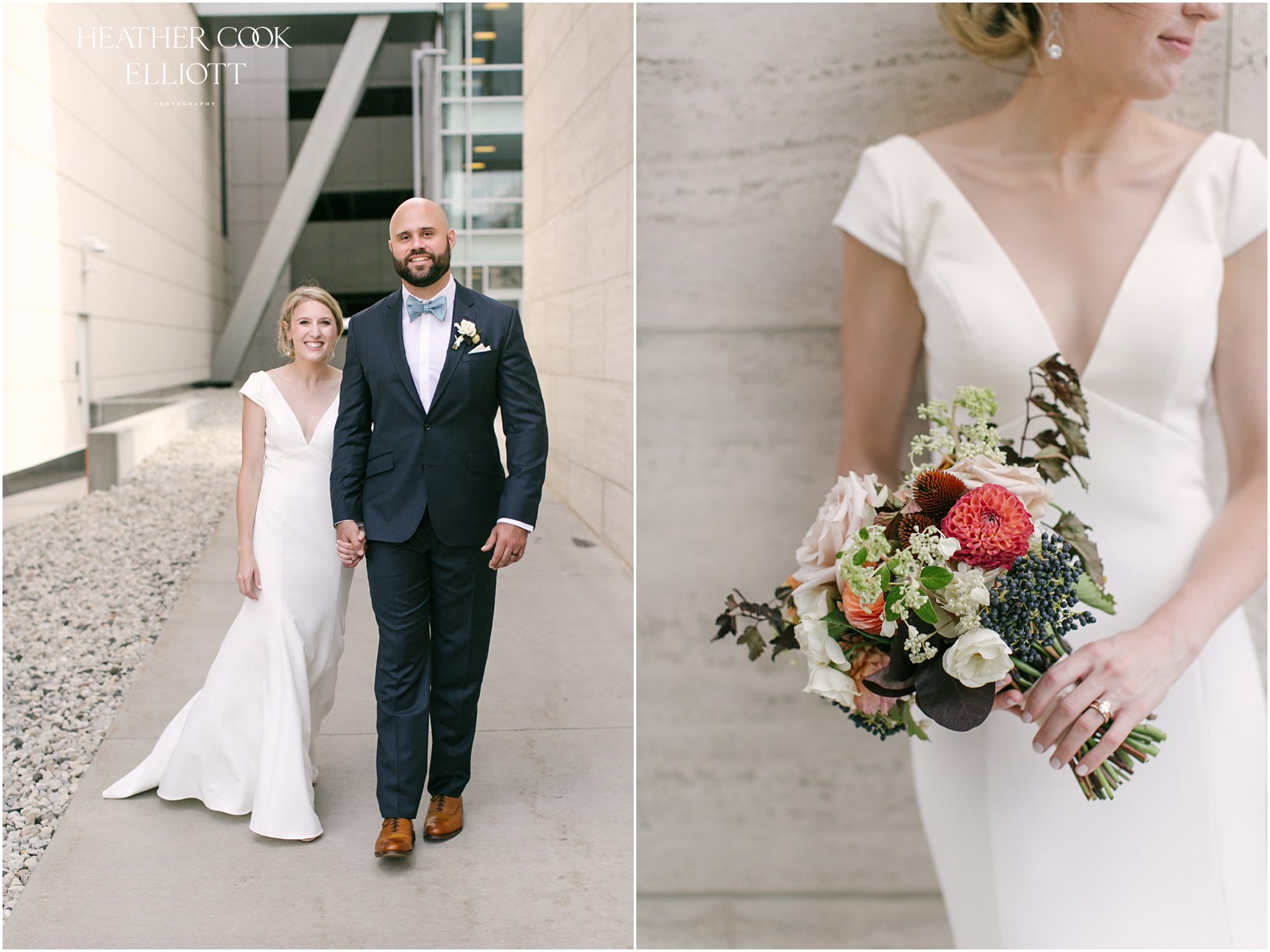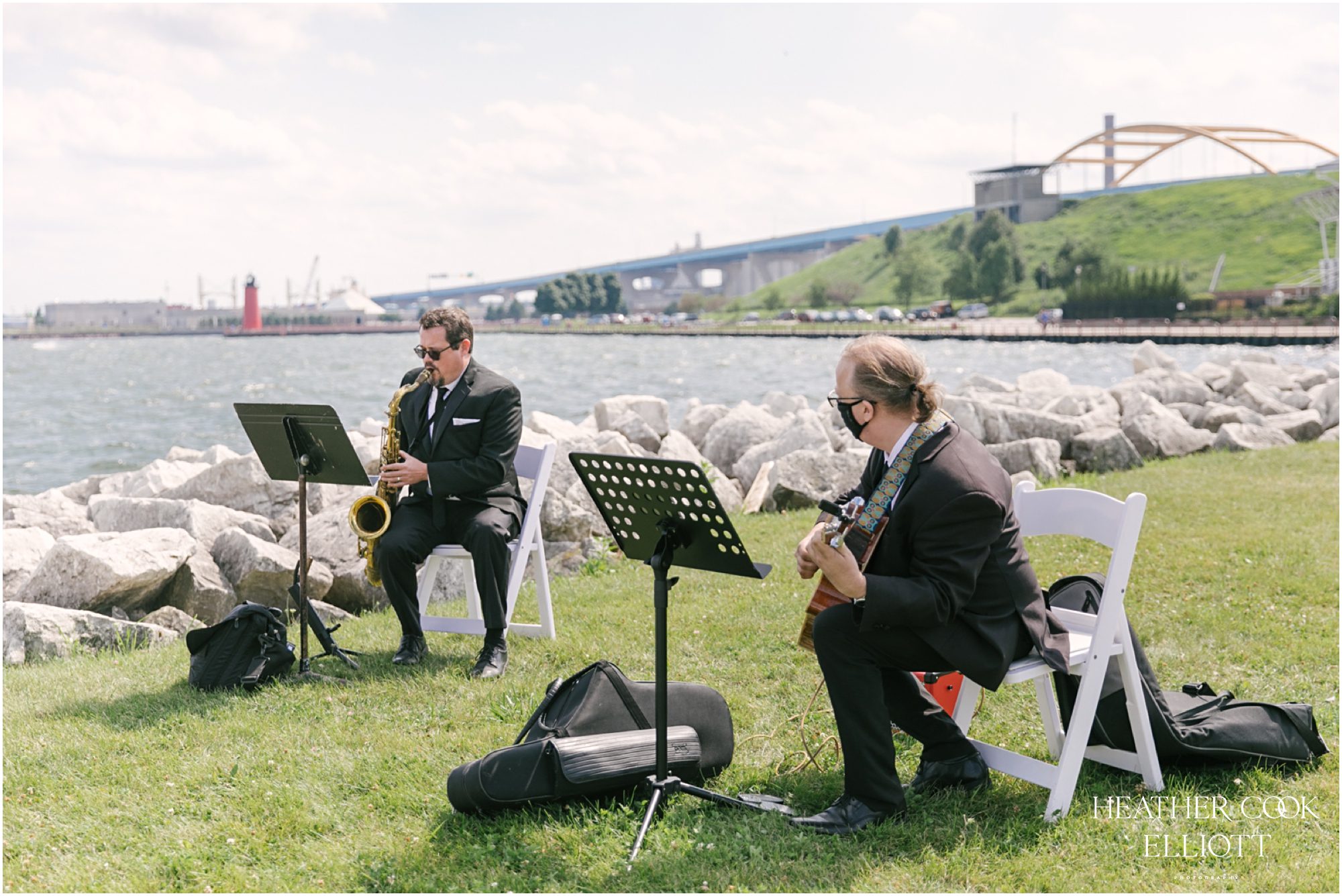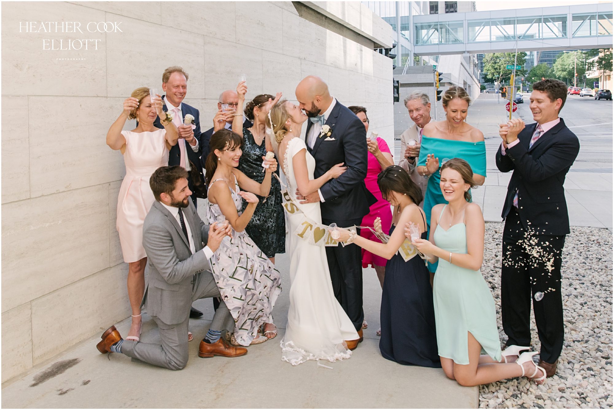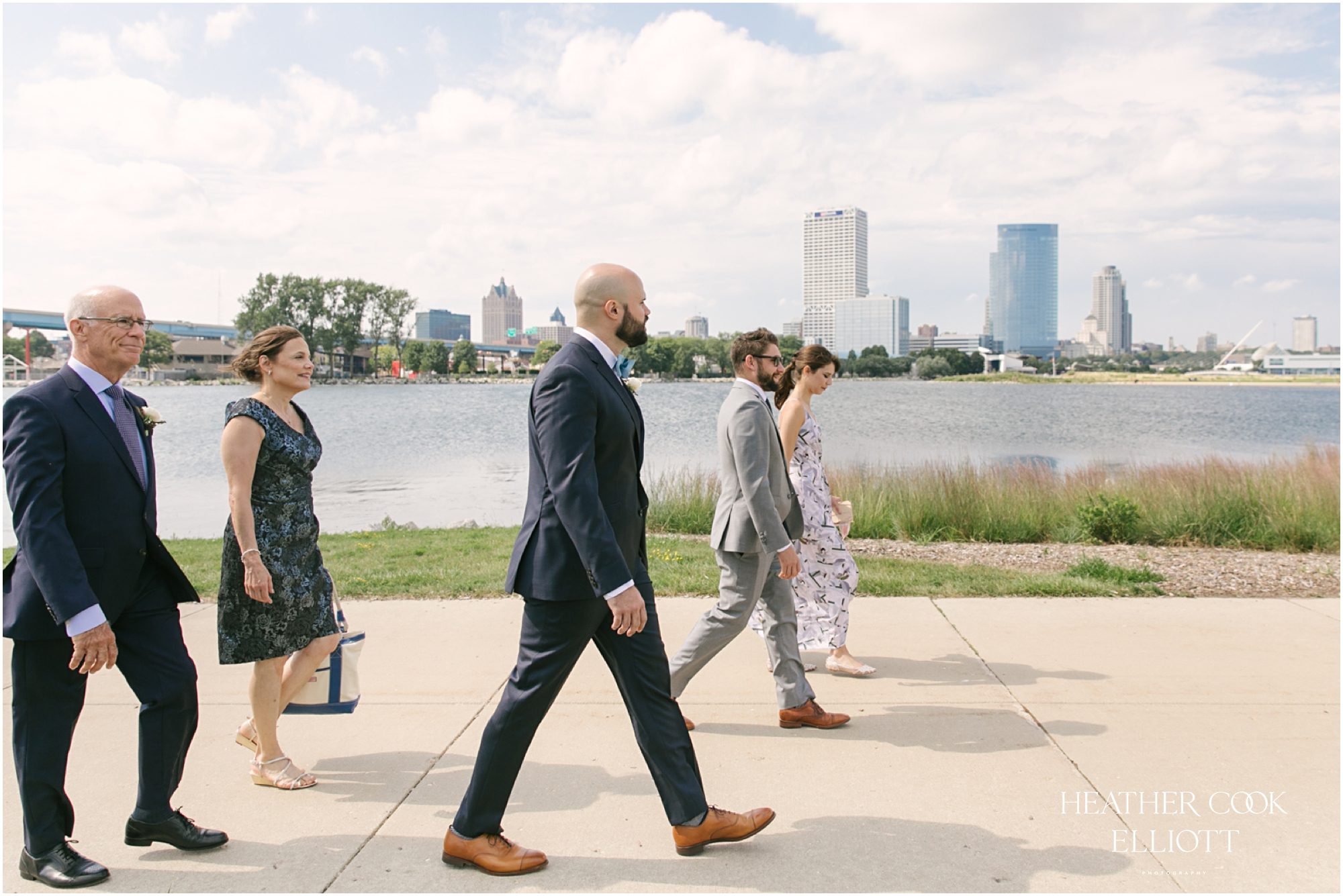 Elizabeth & Jeff have adventurous spirits and if 2020 has taught them anything it is that going with the flow can be incredibly rewarding. They planned a country club wedding in Lake Geneva for their 2020 nuptials, but as we all know this year is, well, the year of change. With their celebration date pushed off to 2021 they have much to look forward to, but being an officially official family wasn’t something they wanted to postpone. So they looked around their beloved neighborhood and gathered their beloved people and went with the flow. Downsized to include only their immediate families, but upsized in joy and windswept beauty, they married each other with Lake Michigan as the ultimate backdrop and danced the night away on the Third Ward’s Riverwalk. After an intimate dinner downtown, a surprise performance by their wedding band marked their arrival back at what they thought would be chance to gather for dessert and champagne. But conga lines under decorated balconies overlooking the river and a most lovely sunset made the night more than memorable; it made the night the perfect start to Forever.