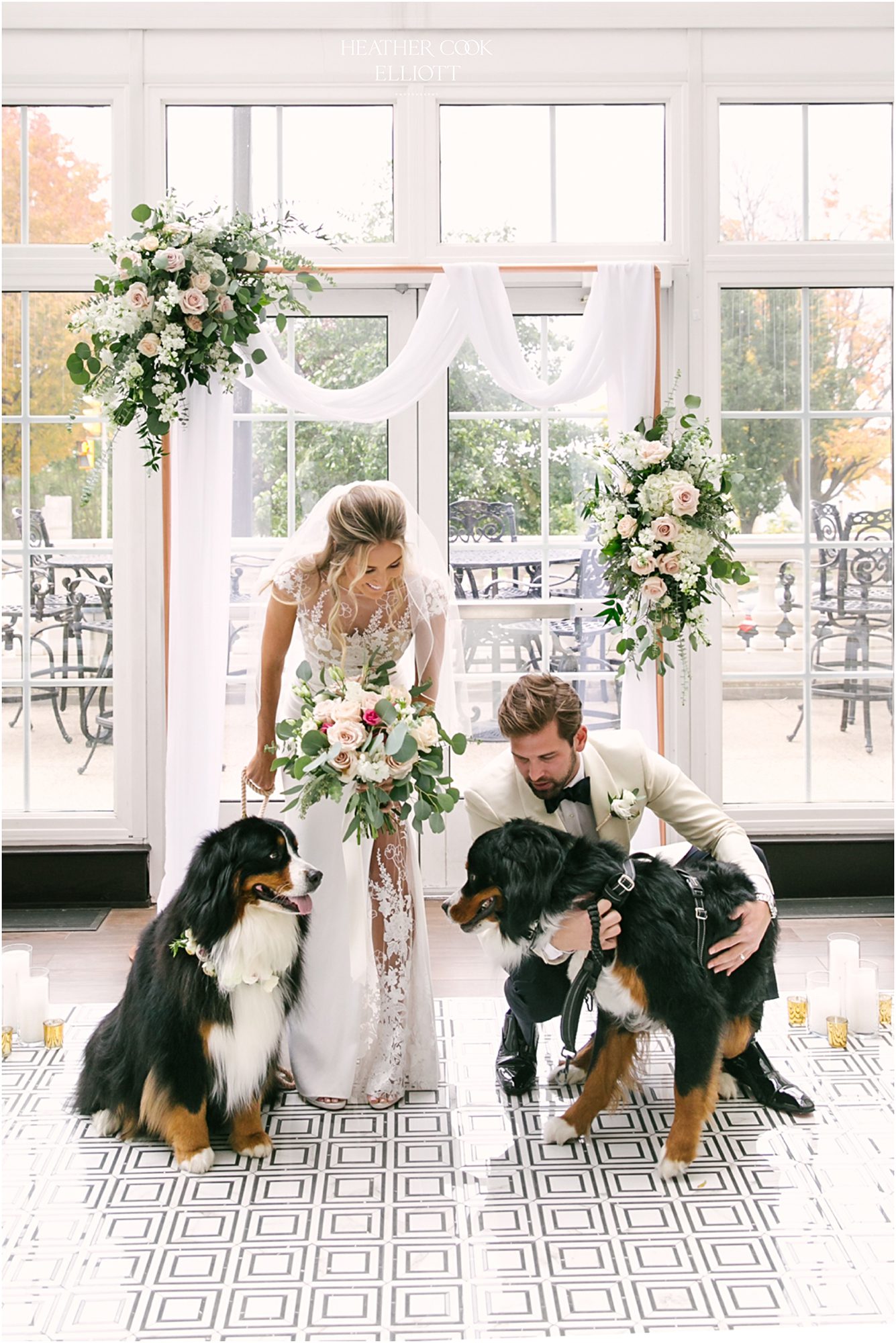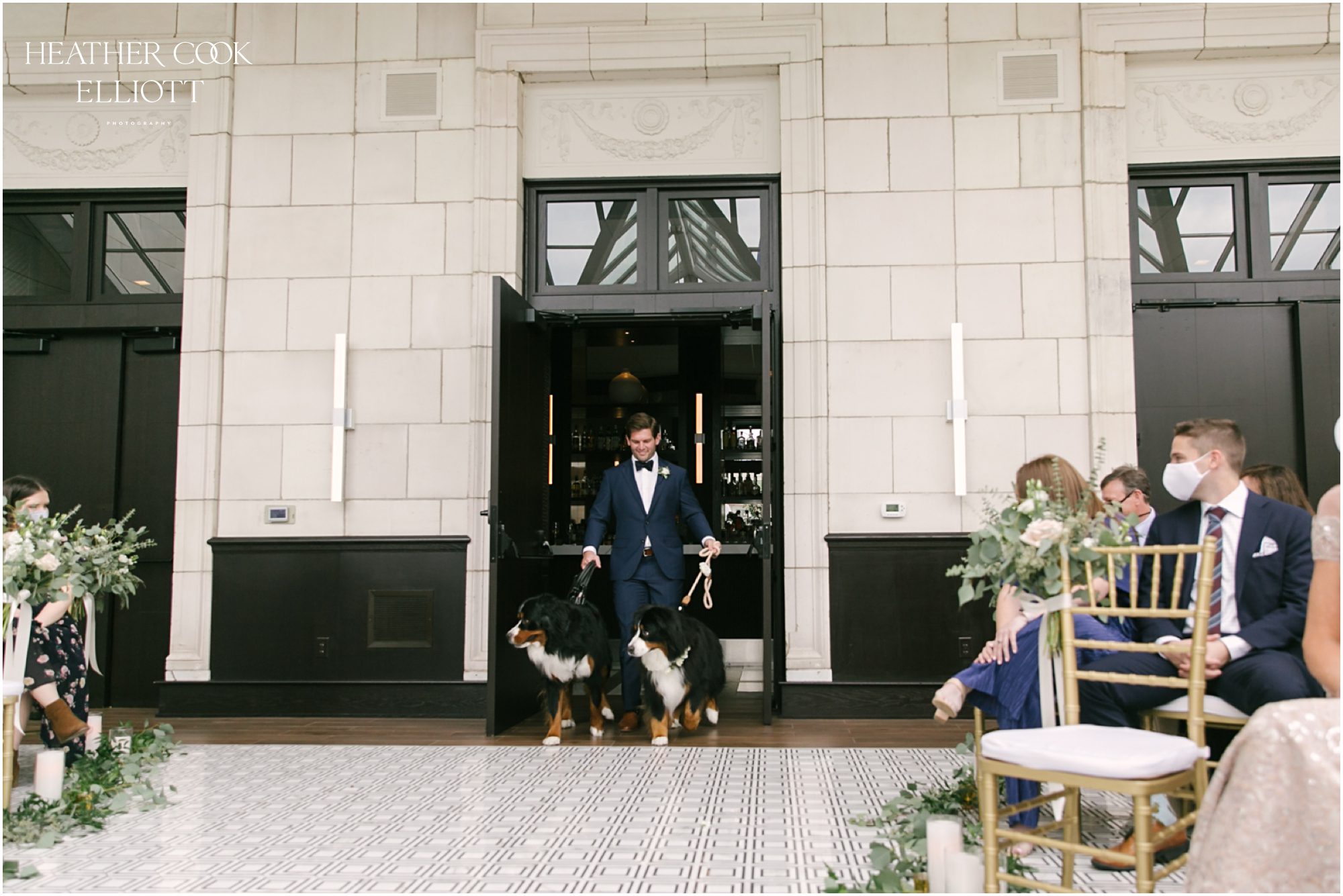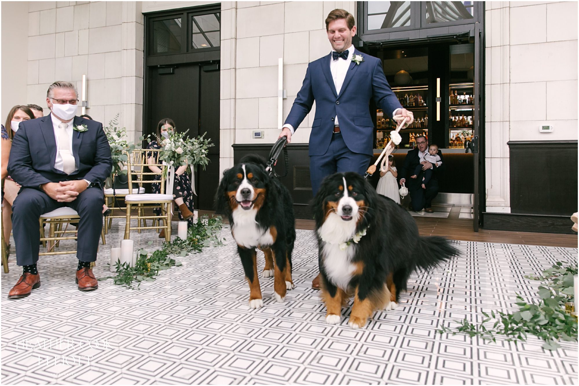 Erin & Alex’s Milwaukee wedding day was both different than they imagined and totally perfect. They had planned to marry in Hawaii in what I am sure would have been a stunningly gorgeous beachside affair. But hey, you’ve heard this story before so I’ll just write: 2020 happened. But holy wow, bring out all the adjectives and exclamation points because it turns out all they really needed was a city wedding with their best friends, favorite Bernese mountain dogs, glam style and perfect fall weather. And oh yes, that suit and that dress and their gorgeous, adored, totally-in-love-selves. With their families by their side and their pups at their feet, Erin & Alex said I do at Bacchus’s reimagined and utterly romantic atrium and dined there too, but only after rooftop cocktails and a sunset to be savored. They saw their city with fresh eyes and full hearts and I’m pretty sure they wouldn’t have had it any other way.