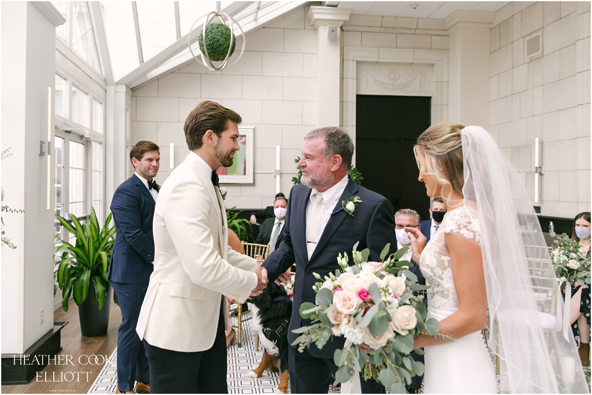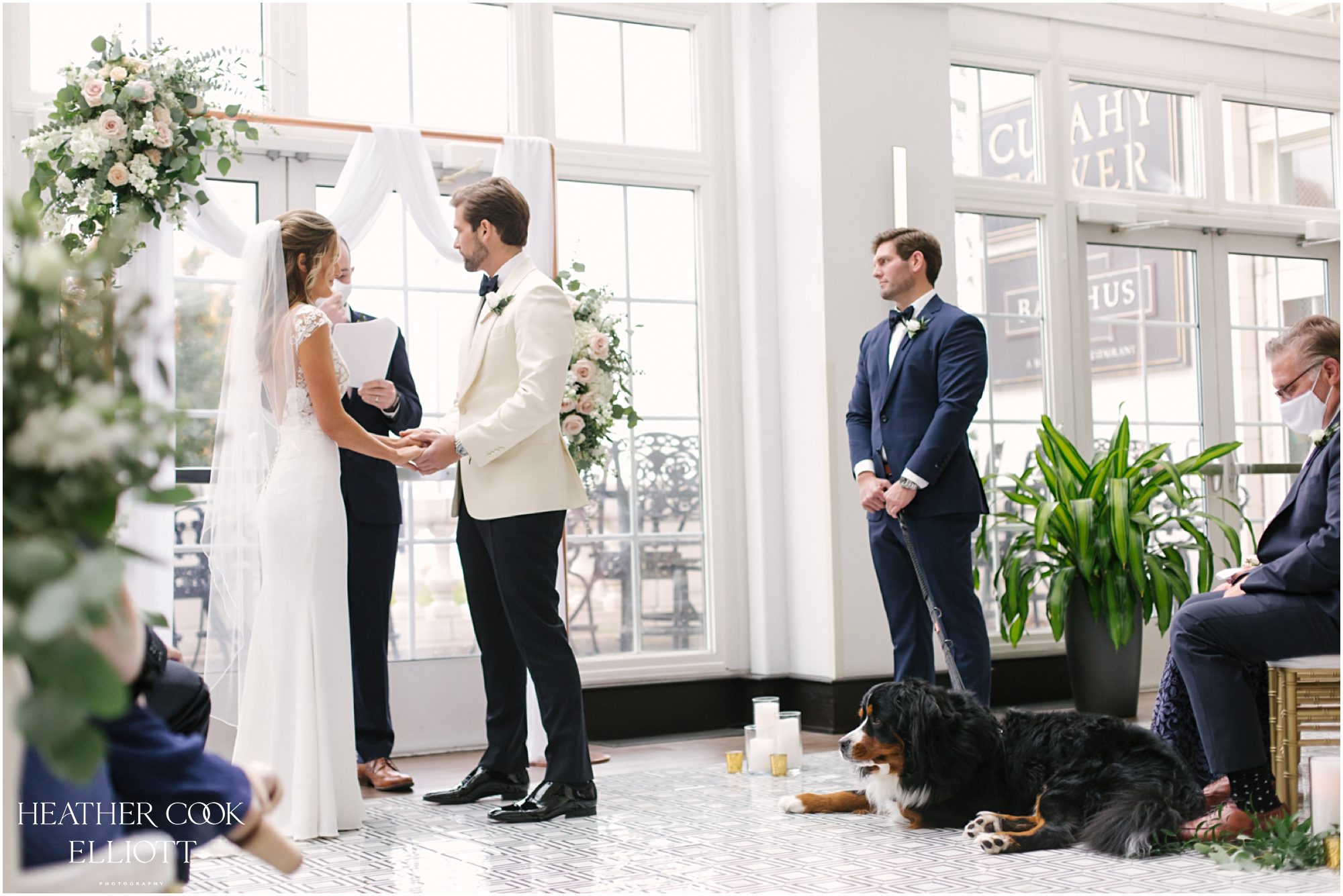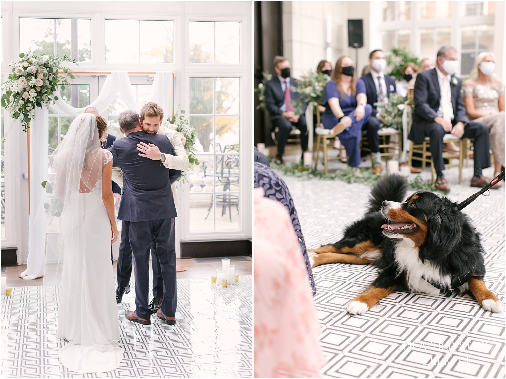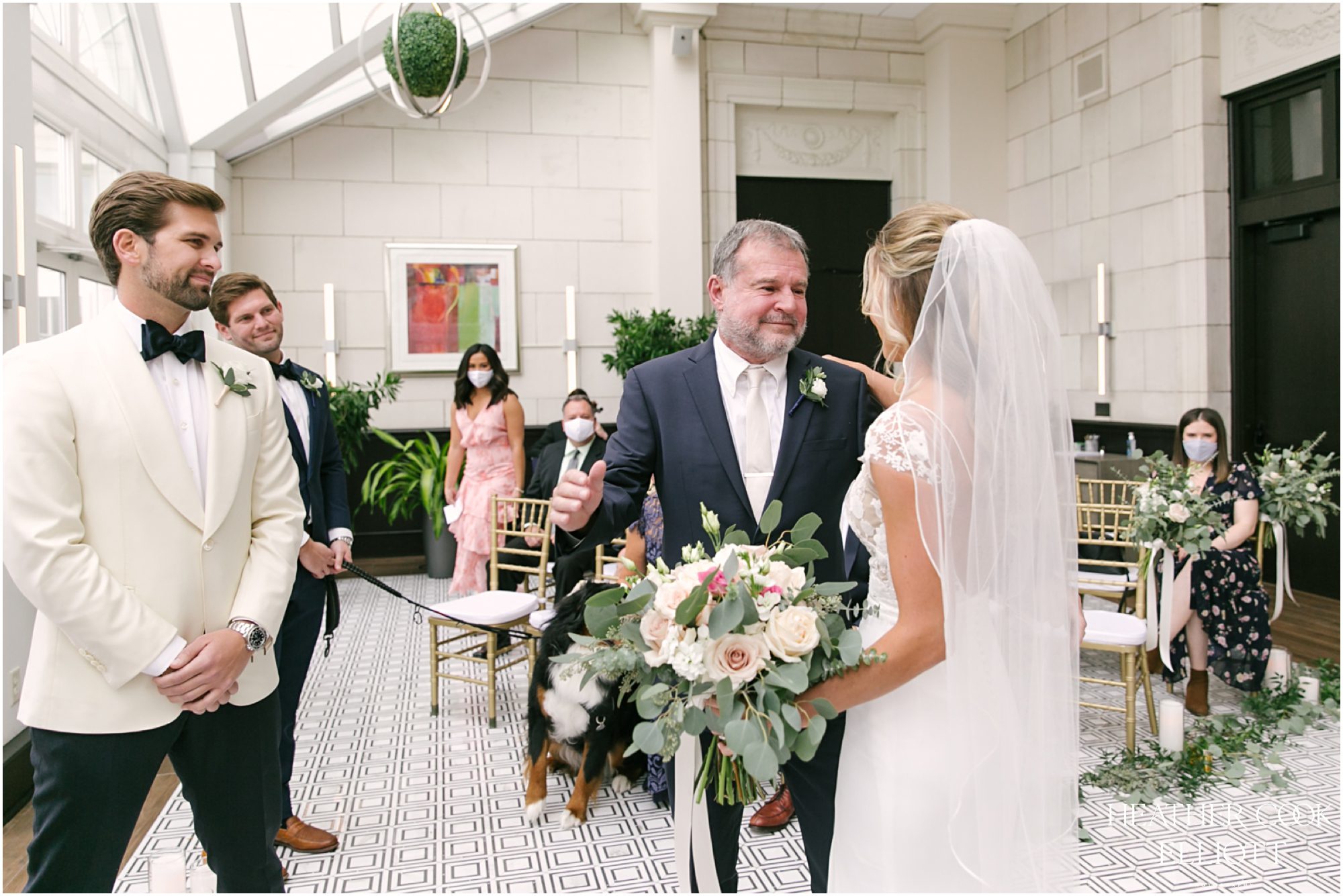 Erin & Alex’s Milwaukee wedding day was both different than they imagined and totally perfect. They had planned to marry in Hawaii in what I am sure would have been a stunningly gorgeous beachside affair. But hey, you’ve heard this story before so I’ll just write: 2020 happened. But holy wow, bring out all the adjectives and exclamation points because it turns out all they really needed was a city wedding with their best friends, favorite Bernese mountain dogs, glam style and perfect fall weather. And oh yes, that suit and that dress and their gorgeous, adored, totally-in-love-selves. With their families by their side and their pups at their feet, Erin & Alex said I do at Bacchus’s reimagined and utterly romantic atrium and dined there too, but only after rooftop cocktails and a sunset to be savored. They saw their city with fresh eyes and full hearts and I’m pretty sure they wouldn’t have had it any other way.