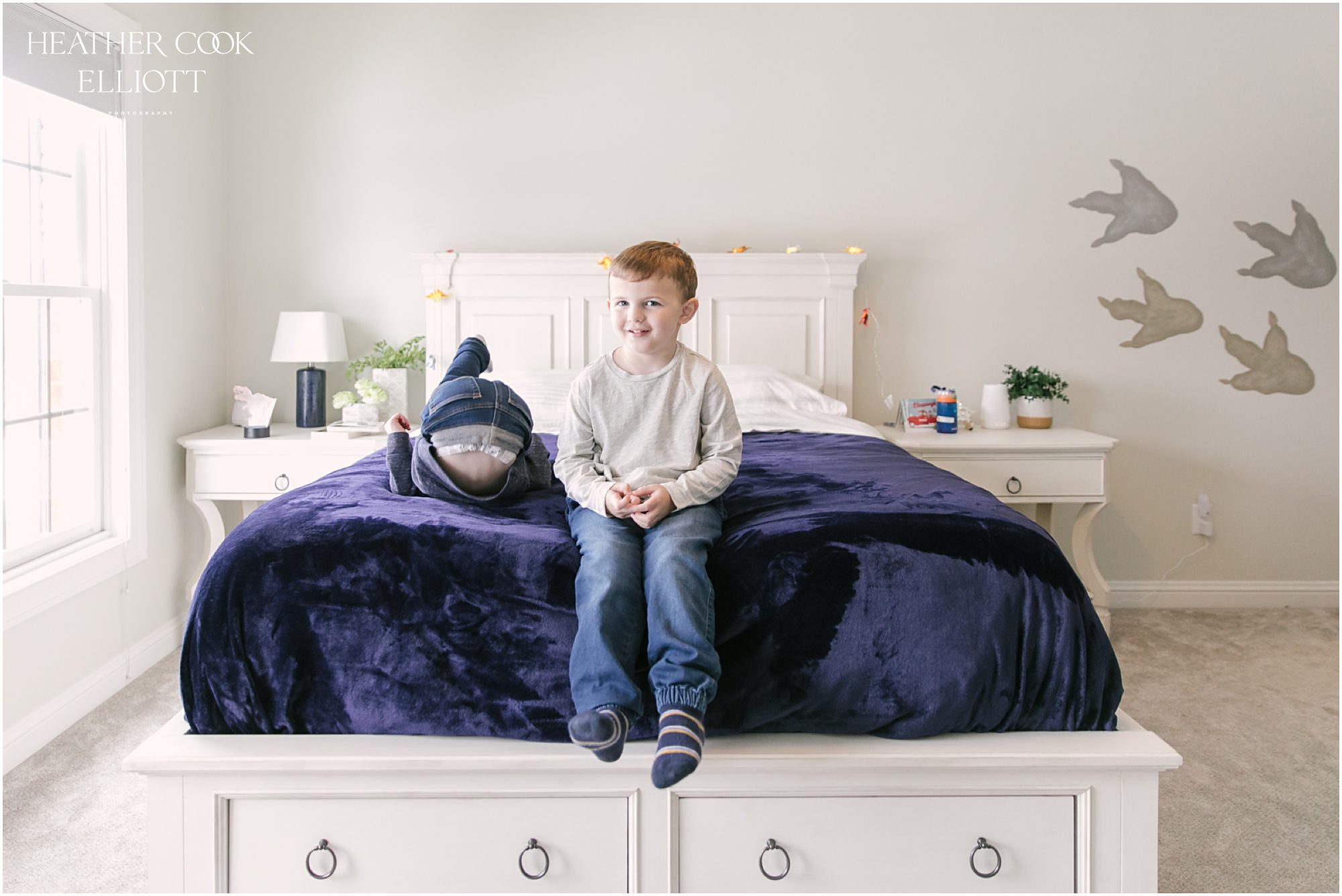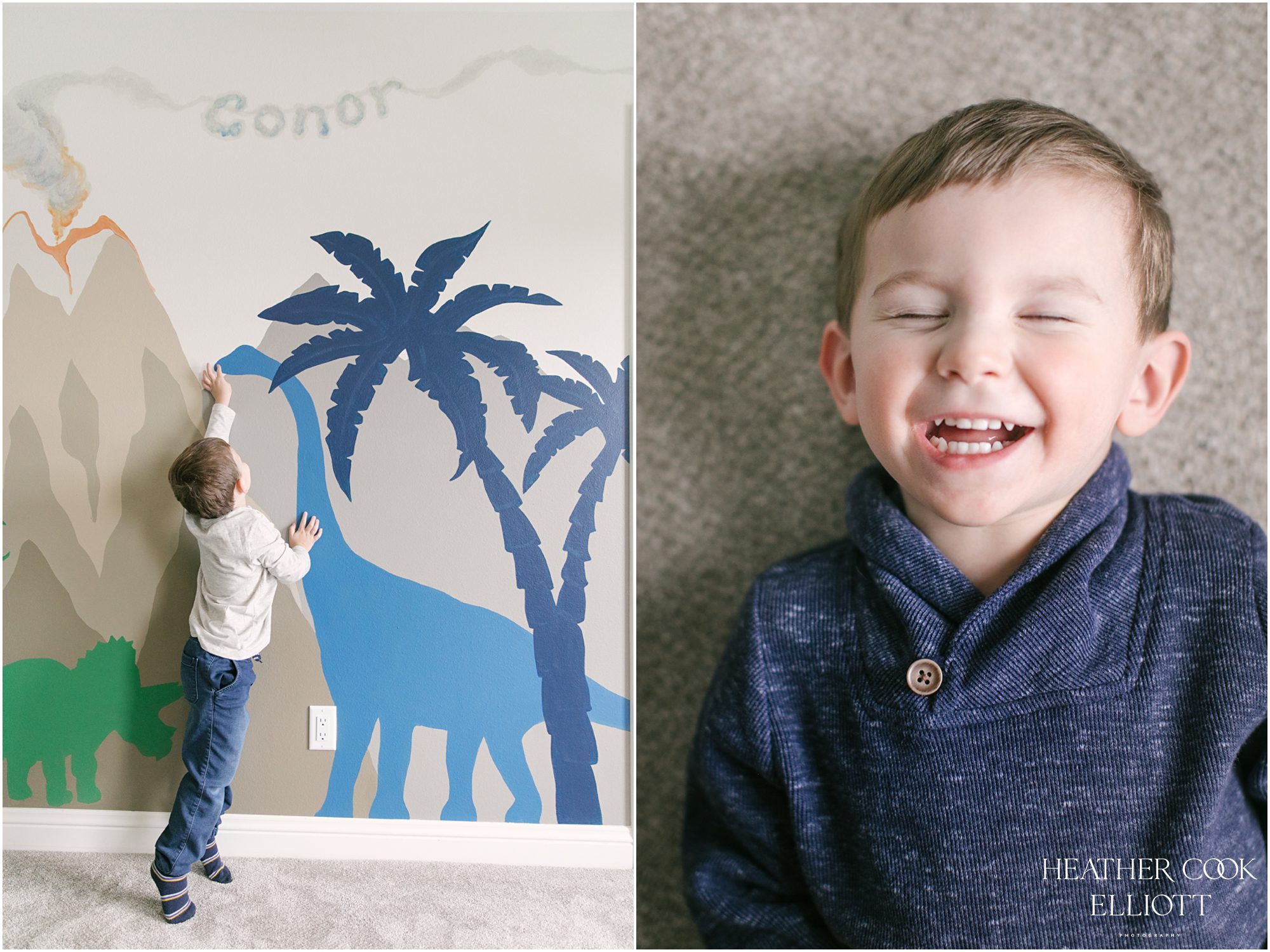 Conor & Jack are two darling little boys whose life is about to change. They live with mom & dad & their rambunctious, utterly charming pup Louie in a gorgeous home filled with toys and love. But in a few months another little babe will be joining their family and as a mom of three I loved being able to capture this sweet & pivotal time in their lives where it’s just the two of them. While we were together Conor was into playtime and Jack was into everything except having photos made. I look at these and I can feel the chair swiveling, the horse bouncing, the fish swimming – but it is this sweet chaos of little boys who need help with the paints, but who also know the 5 syllable scientific name of the plastic dinosaur I’m holding that makes these images some of my favorites to date. So cheers to playtime and dino murals. Cheers to trucks and trains. Cheers to little boys and big brothers.