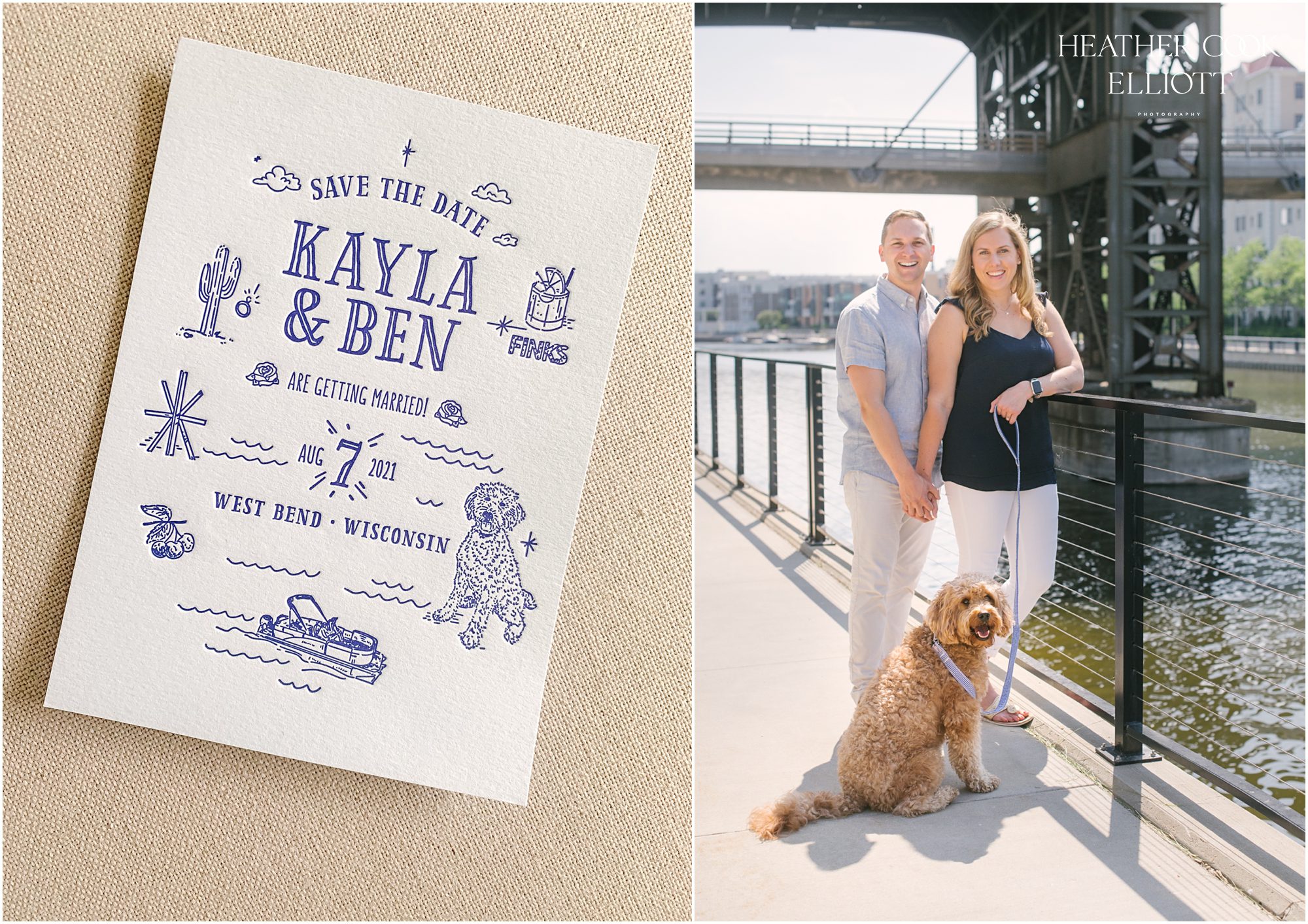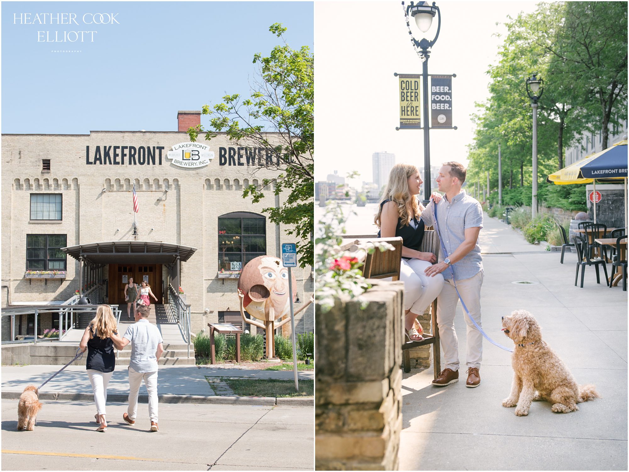 On the most gorgeous summer day imaginable Kayla & Ben met up with us for a walkabout and they brought the thing we were most hoping to meet: their pup! You see, after getting their amazing Bayview Printing Co letter-pressed Save The Date in the mail this winter we knew this was one cool couple and they wouldn’t be complete without their mini golden doodle tagging along. Pair that with a stop by their first date spot – Finks on the East Side – and a meander by their favorite Brewery (Lakefront) and you pretty much have THE recipe for a perfect engagement session. We can’t wait to celebrate by the lake with you in August Kayla & Ben; if this is how you do engagement session we know the wedding is going to be epic!